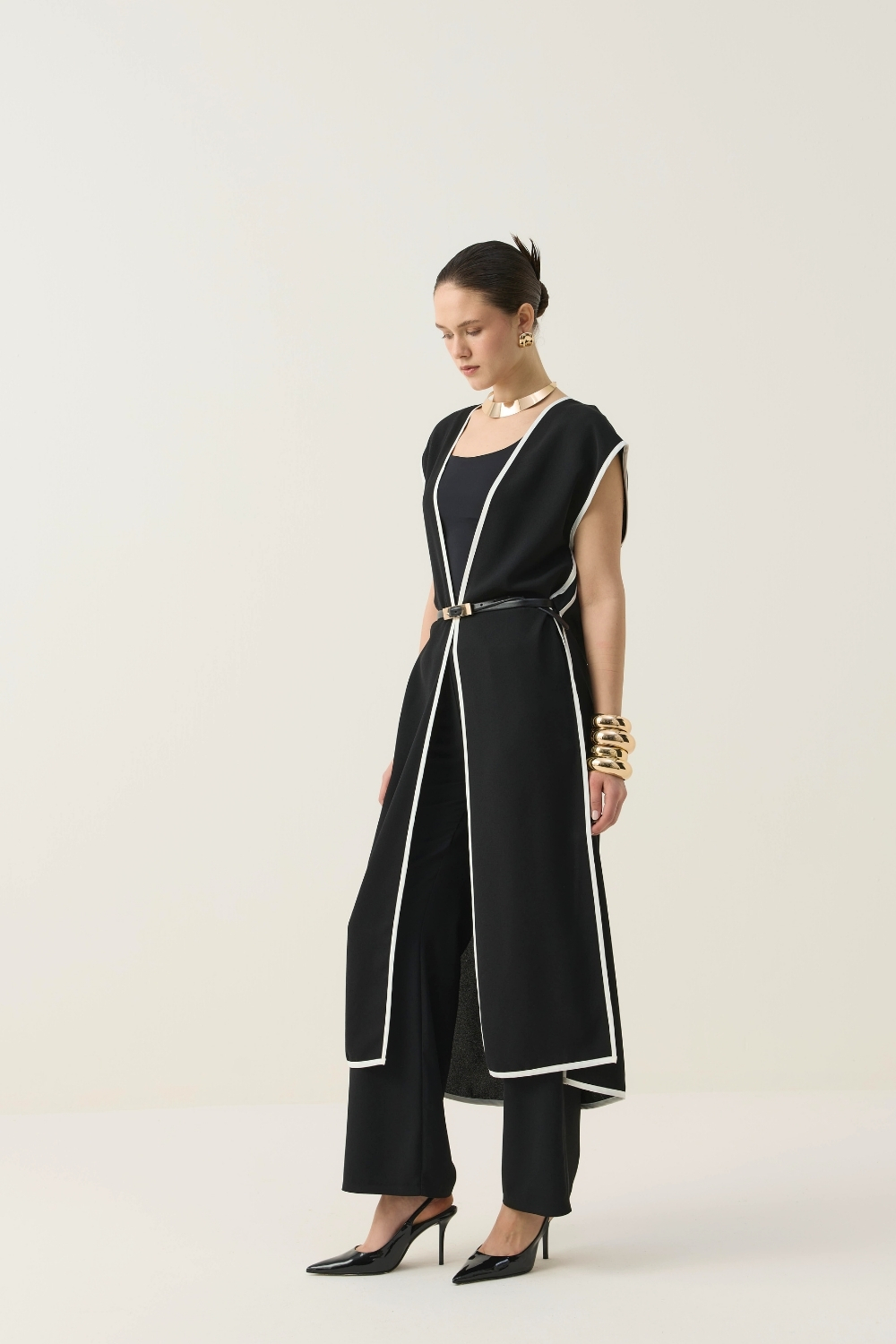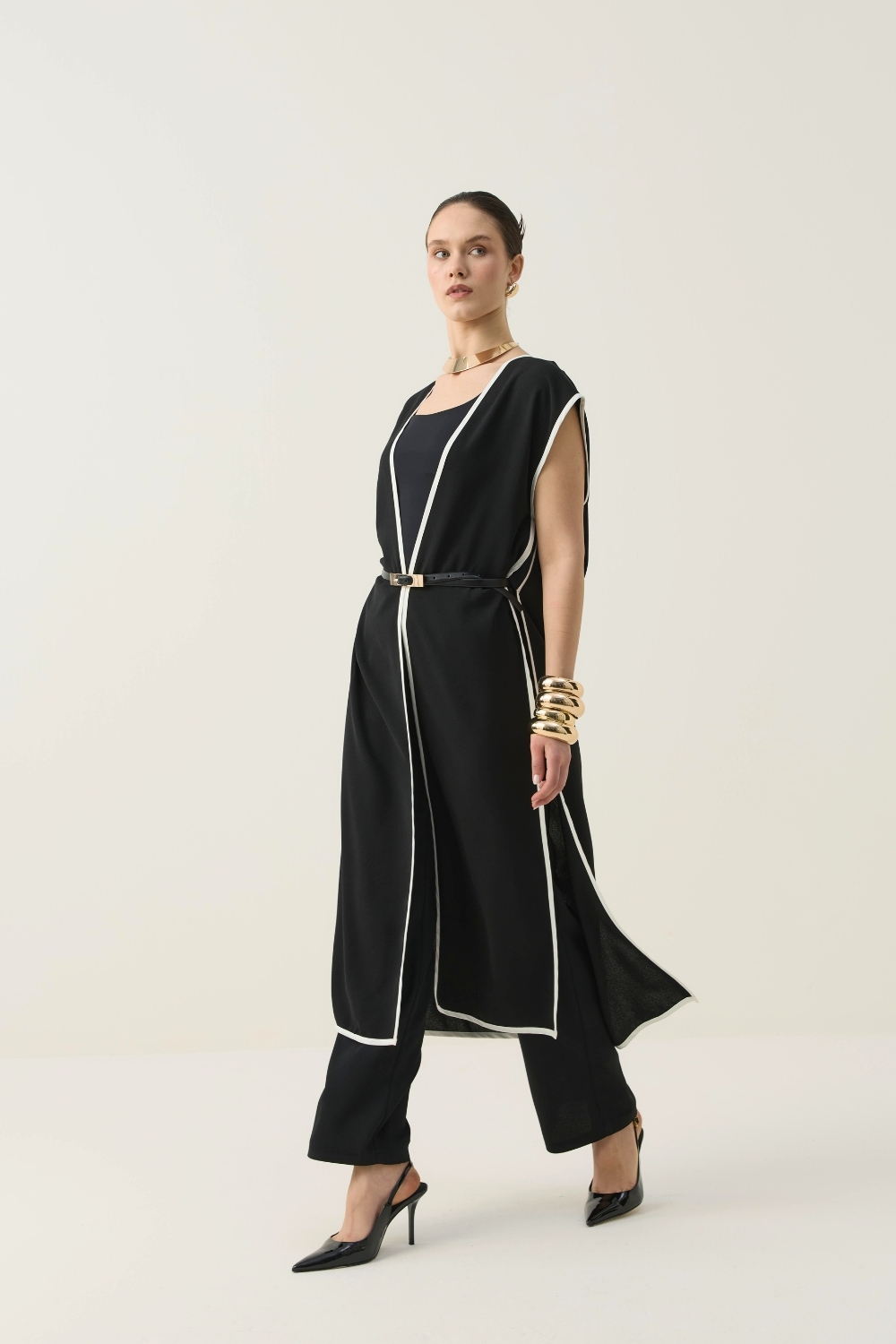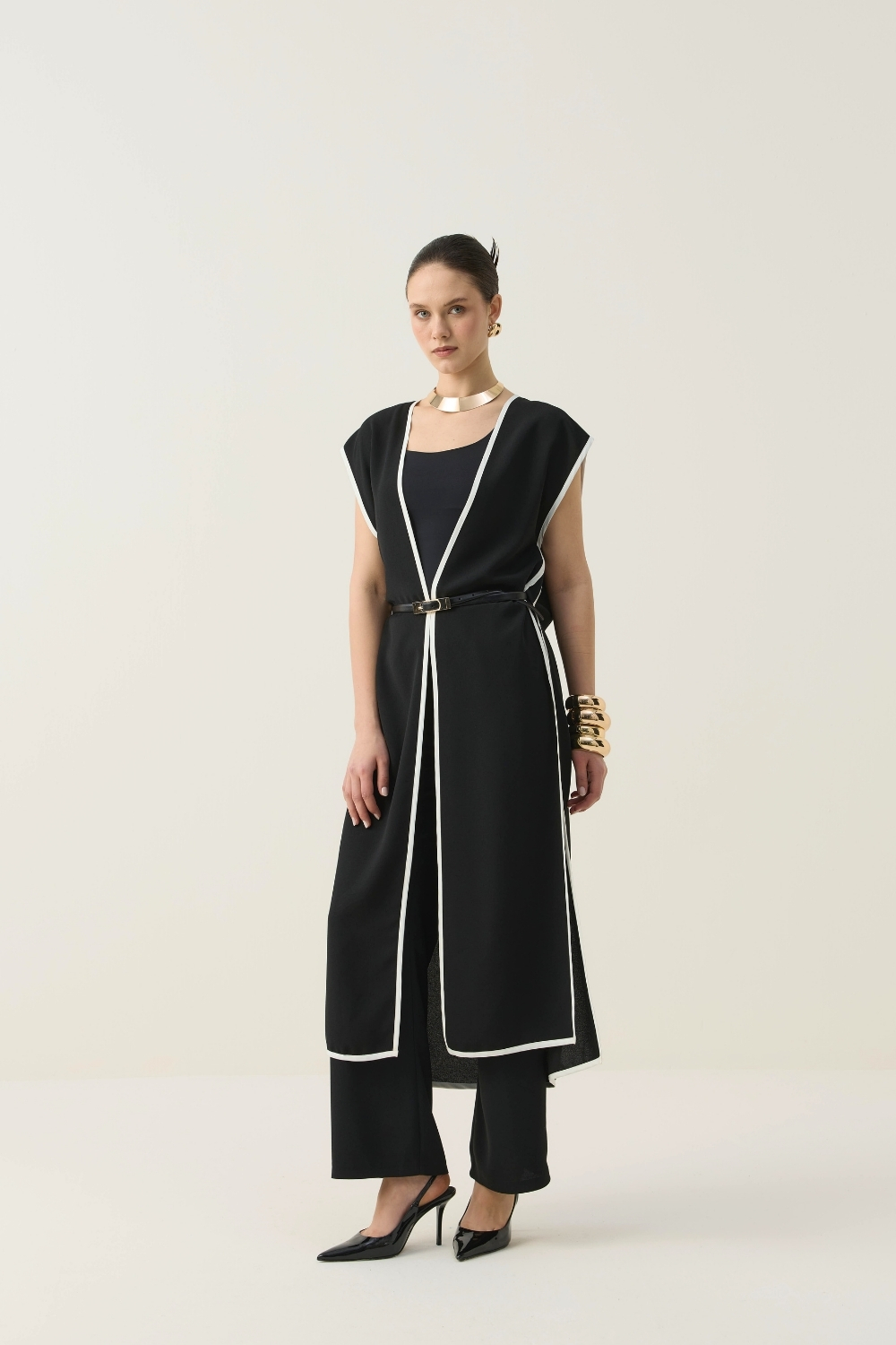 BİYE DETAYLI ÜÇLÜ TAKIM SİYAH
