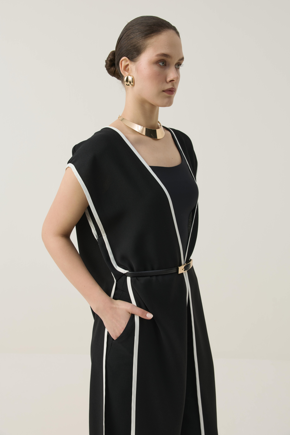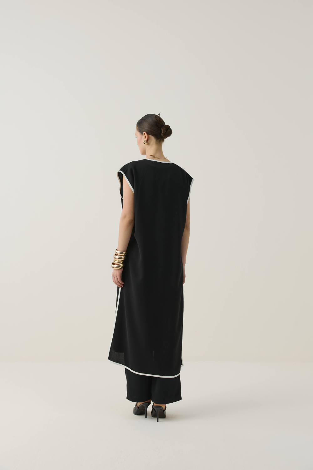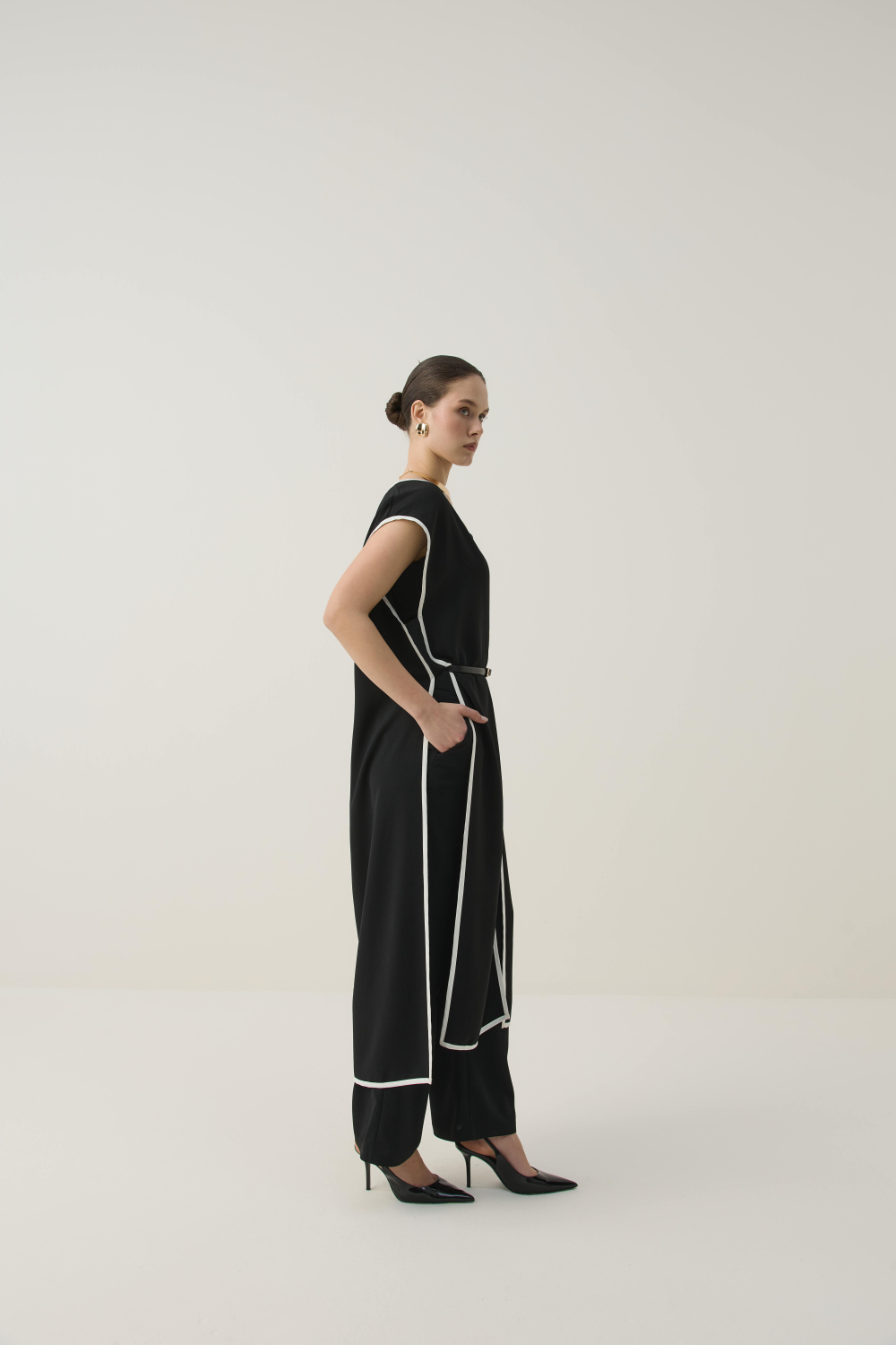 BİYE DETAYLI ÜÇLÜ TAKIM SİYAH