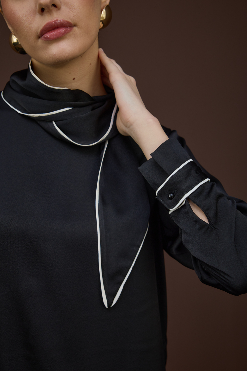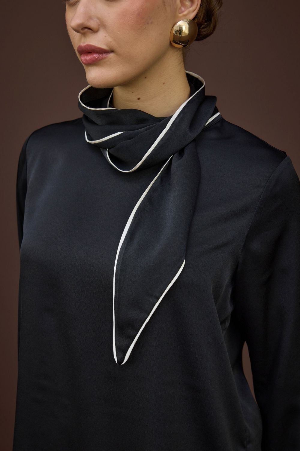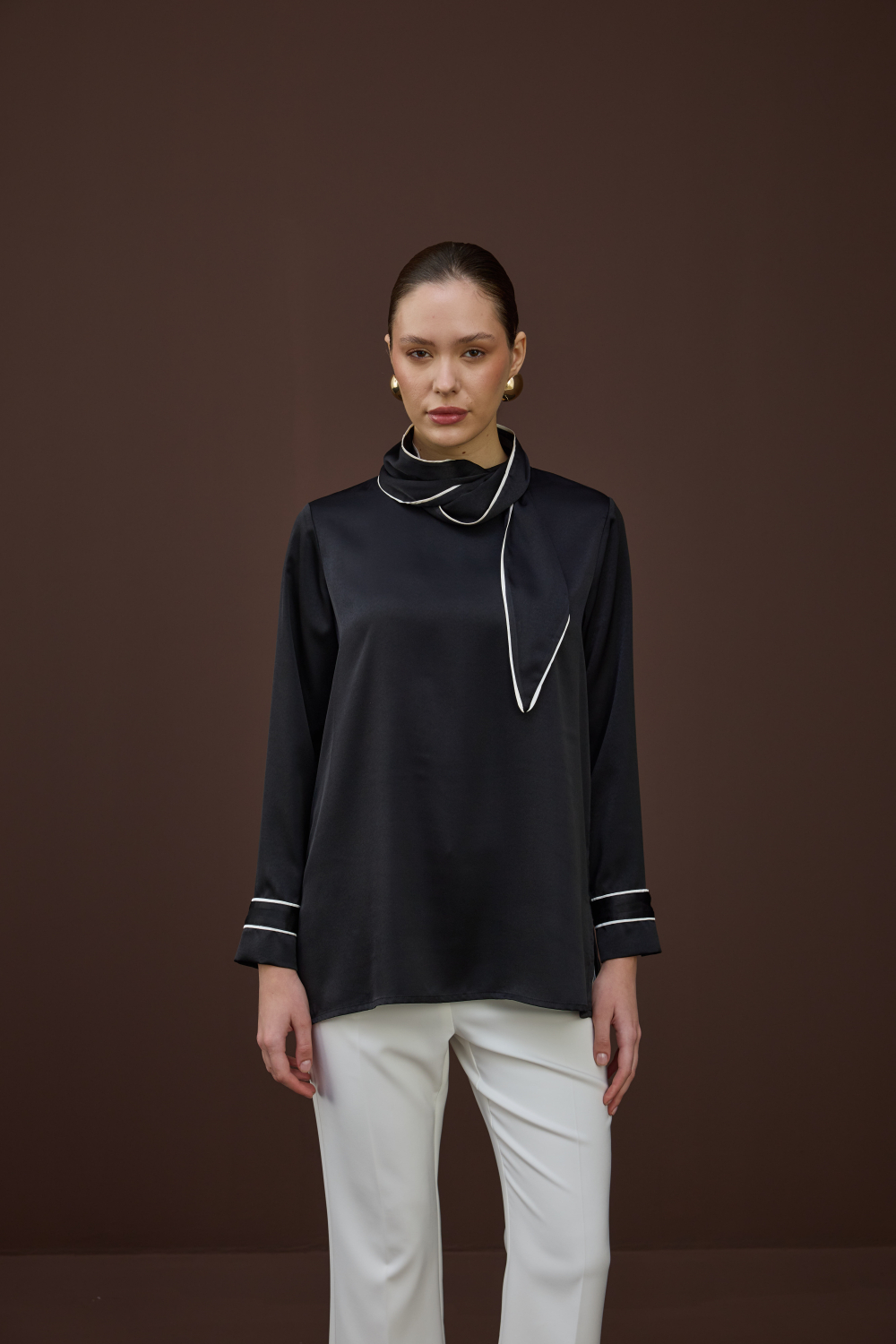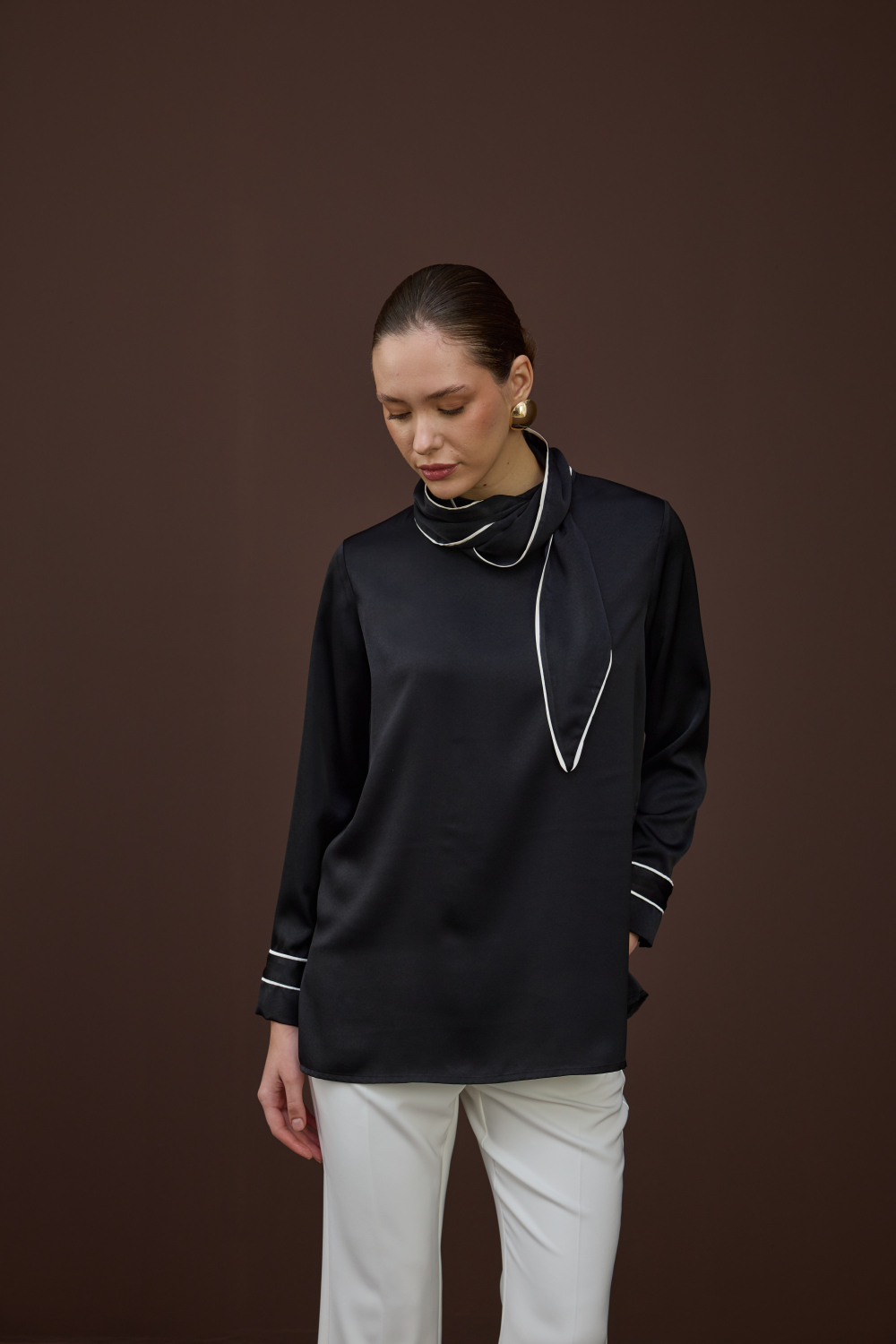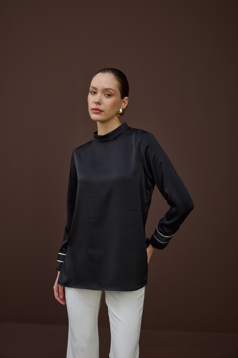 BİYELİ SATEN BLUZ SİYAH