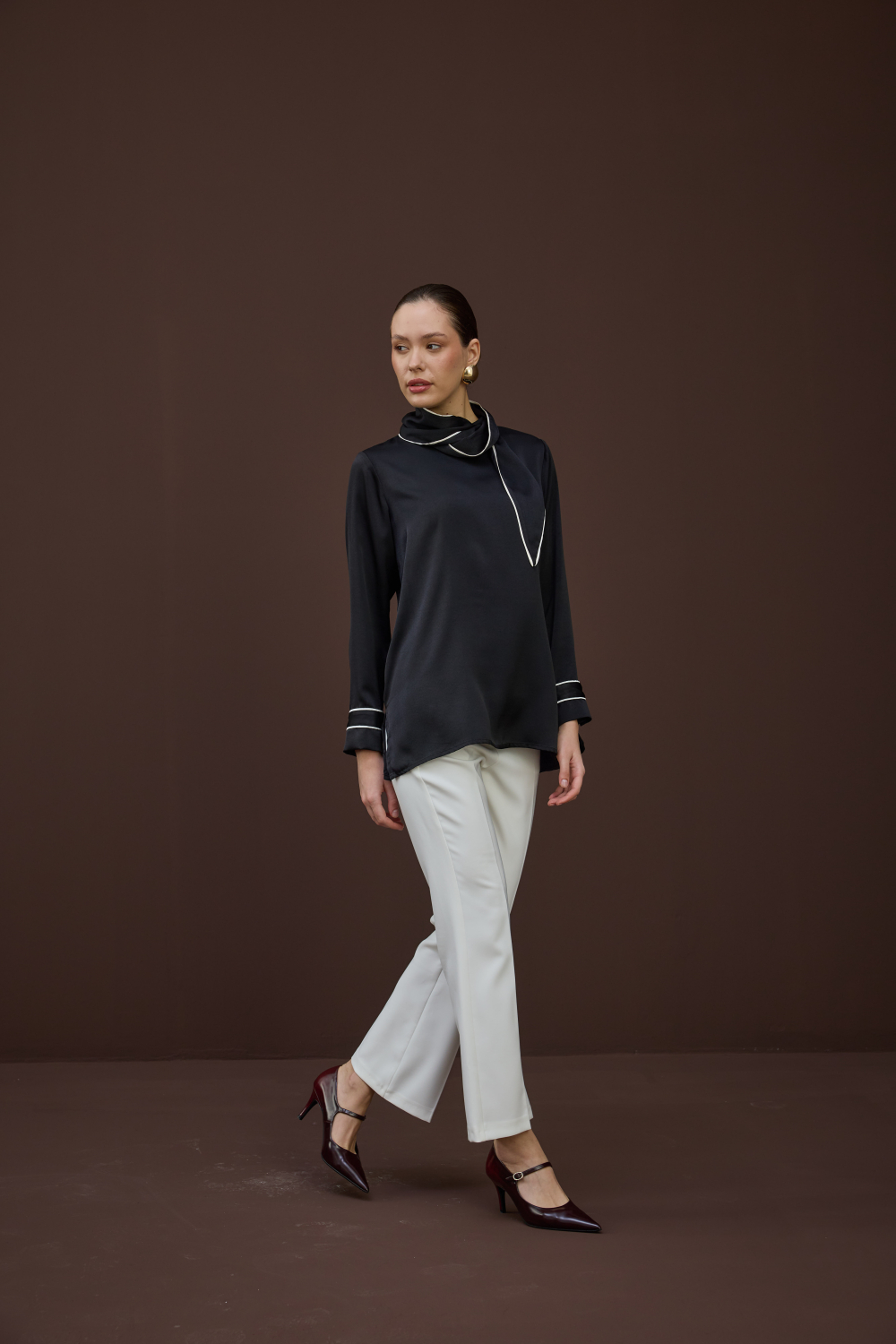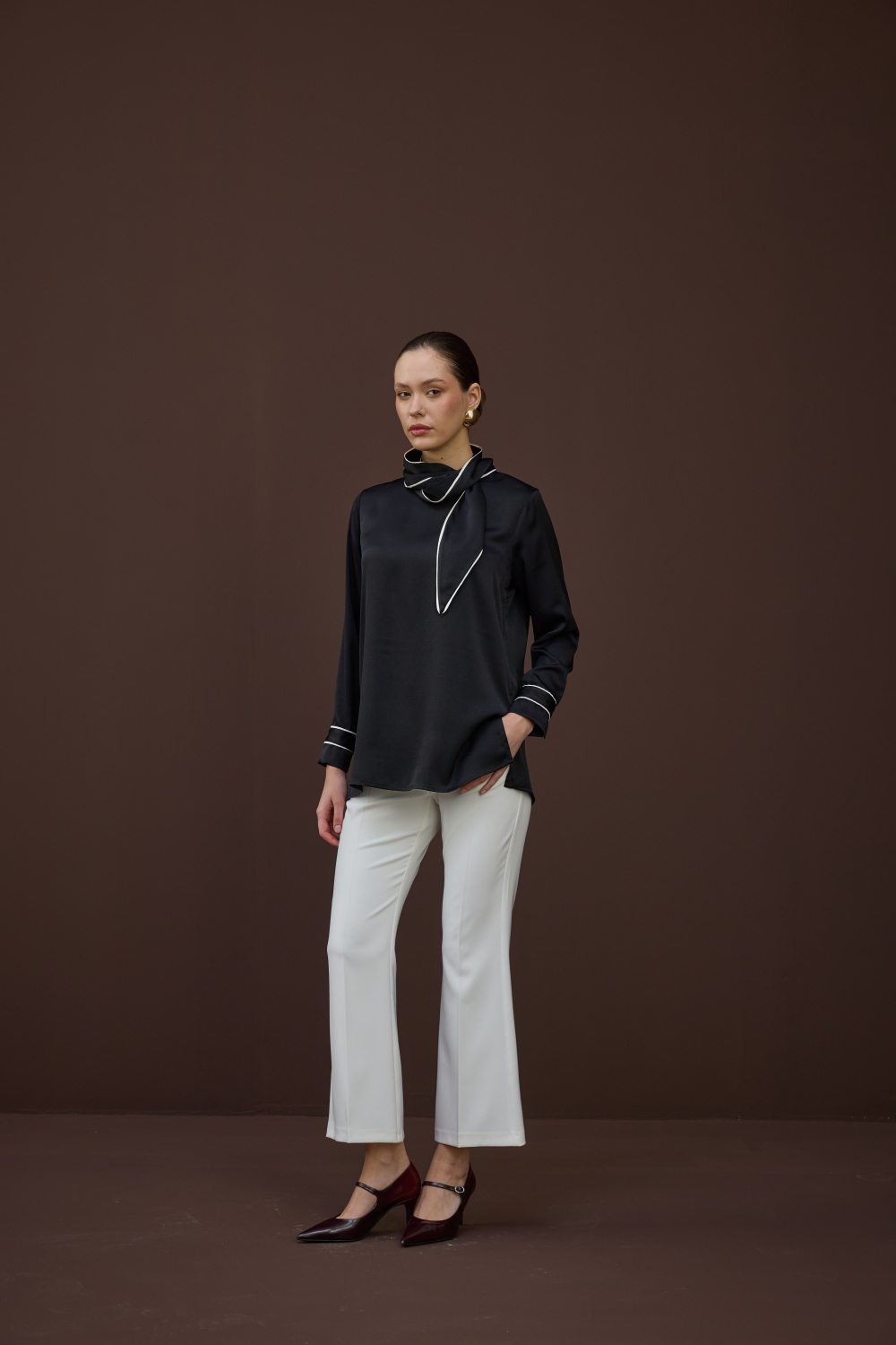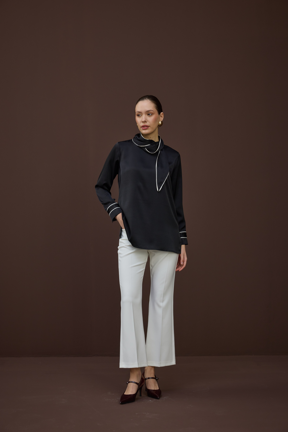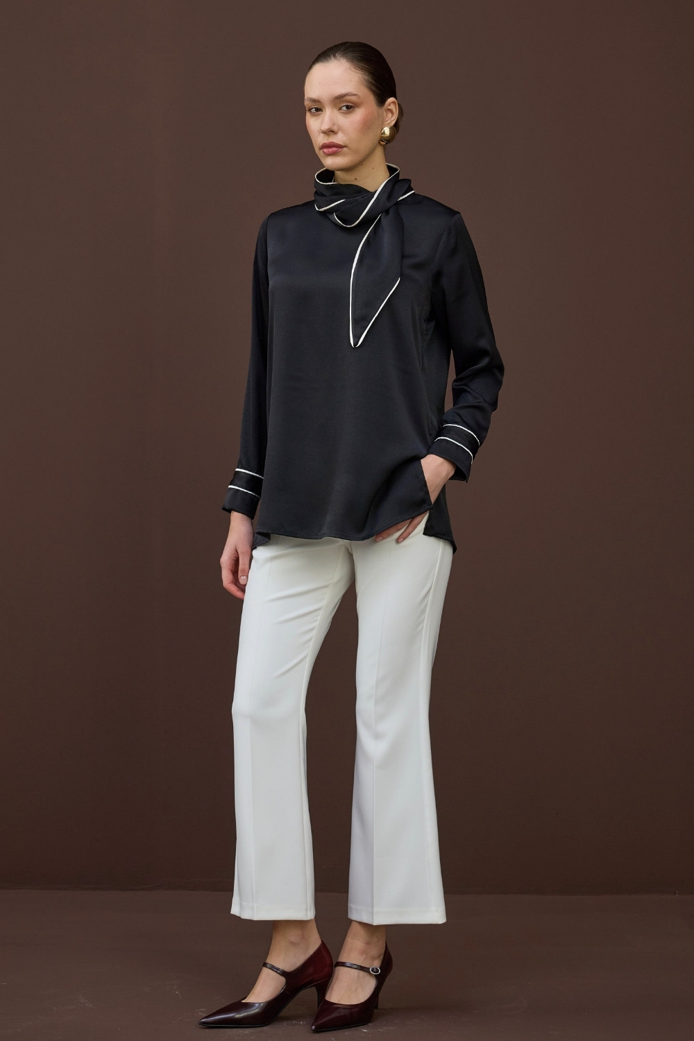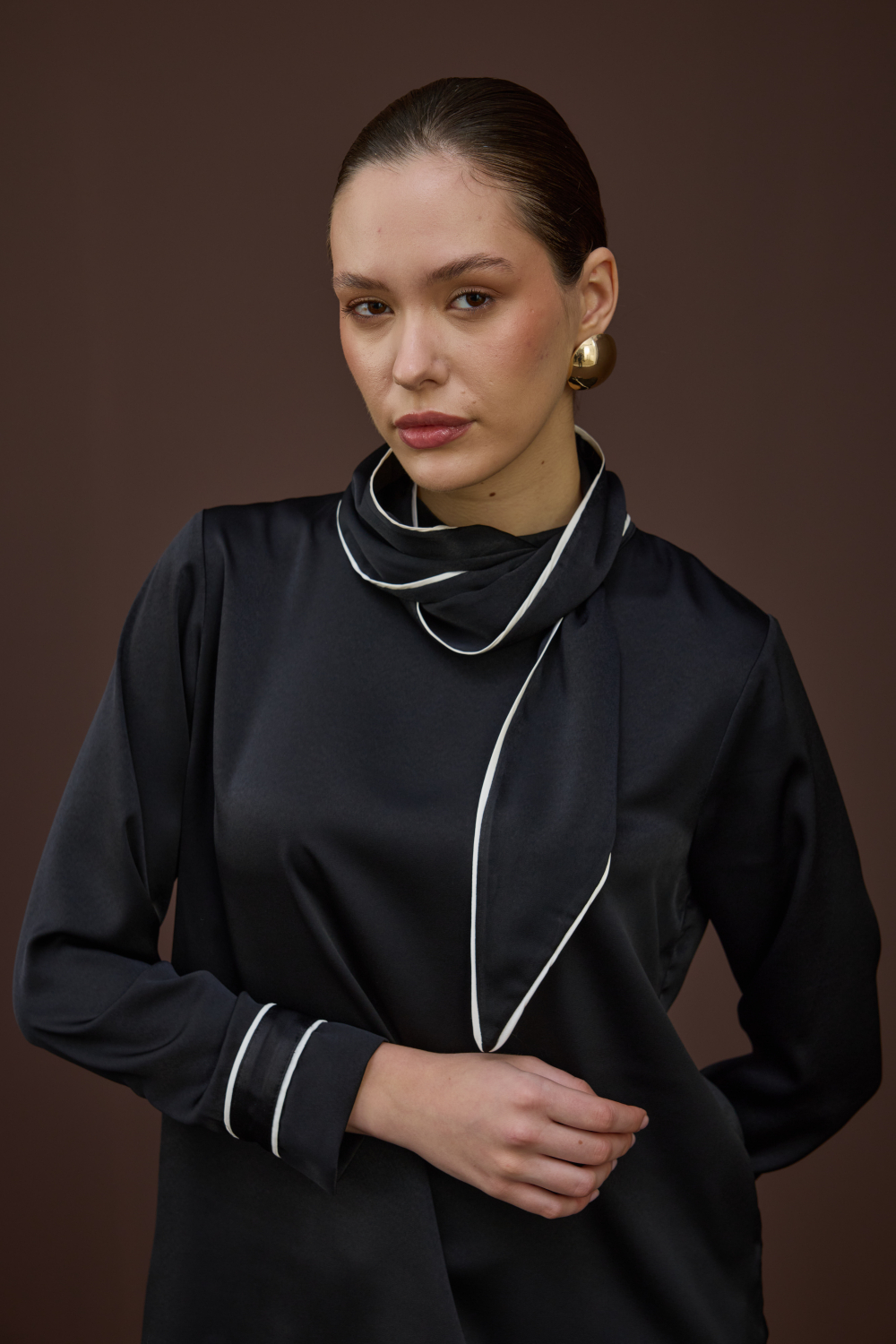 BİYELİ SATEN BLUZ SİYAH
