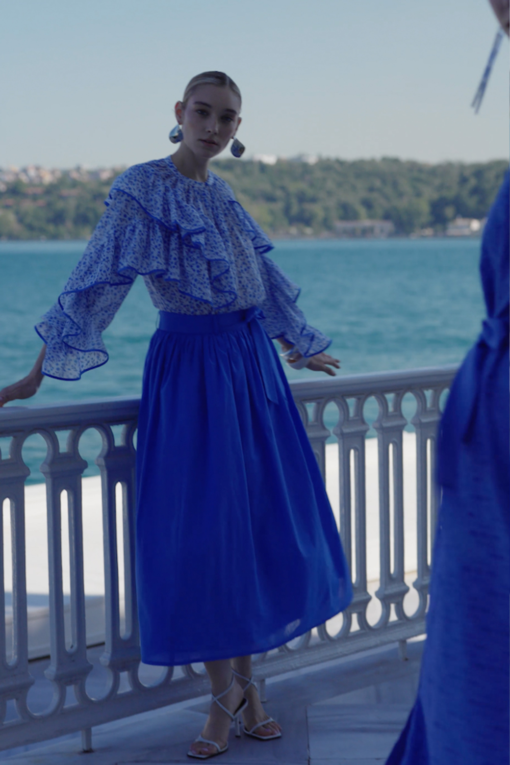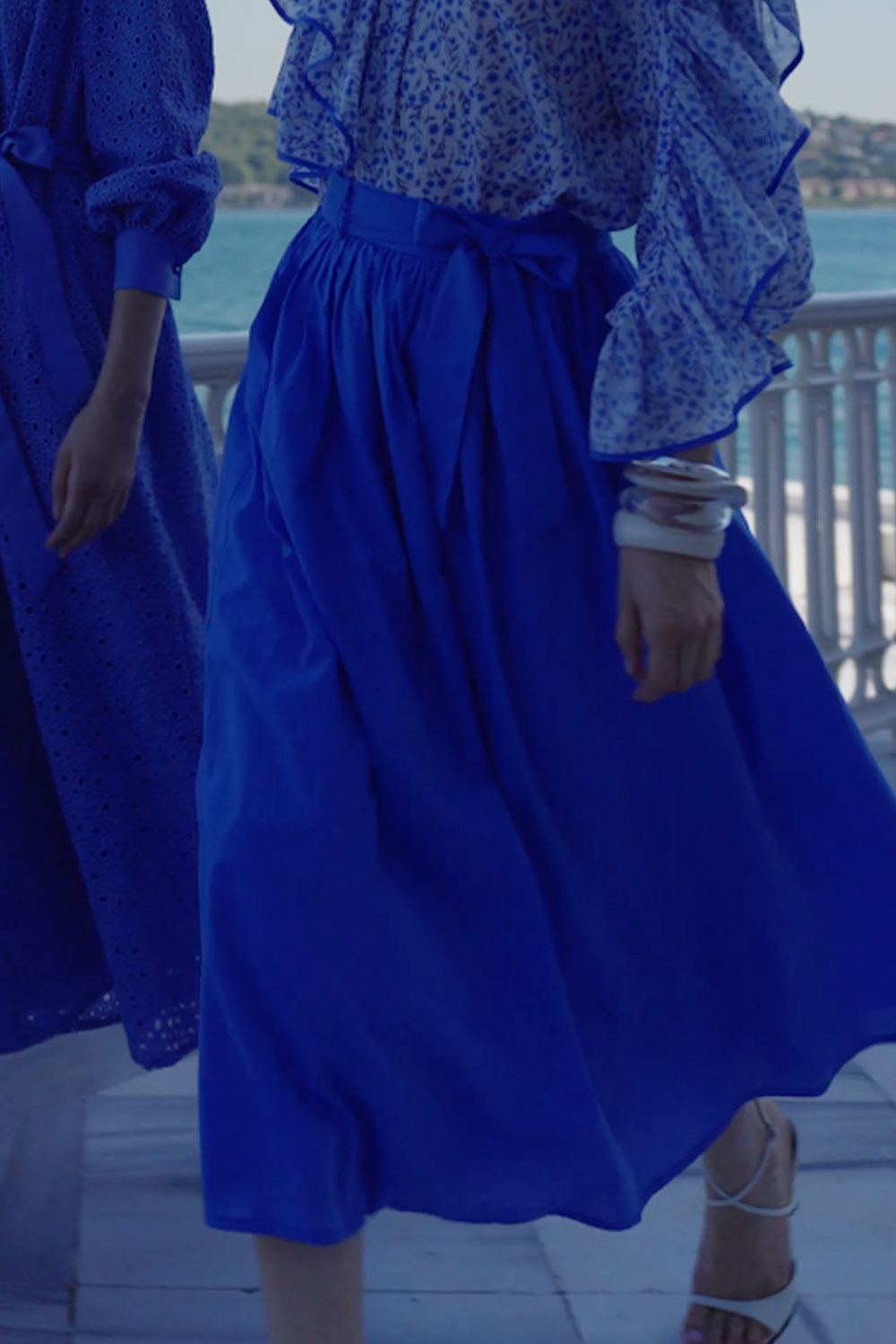 BÜZGÜLÜ POPLİN ETEK MAVİ