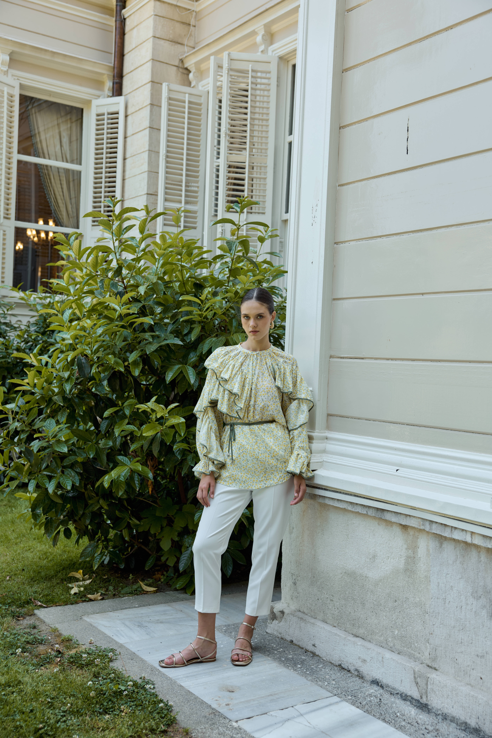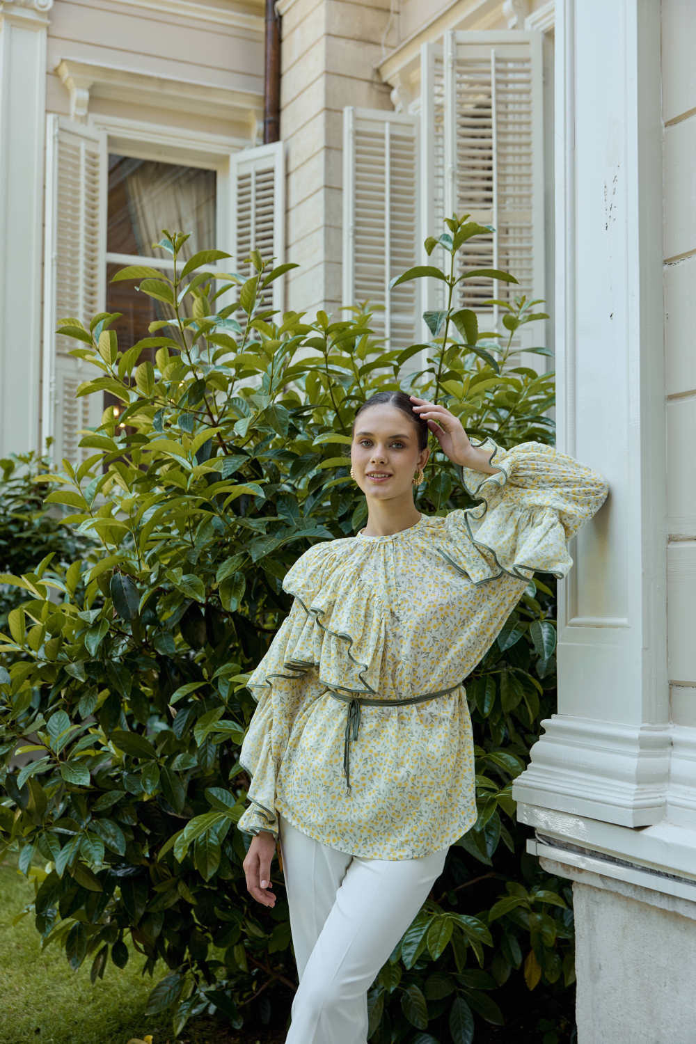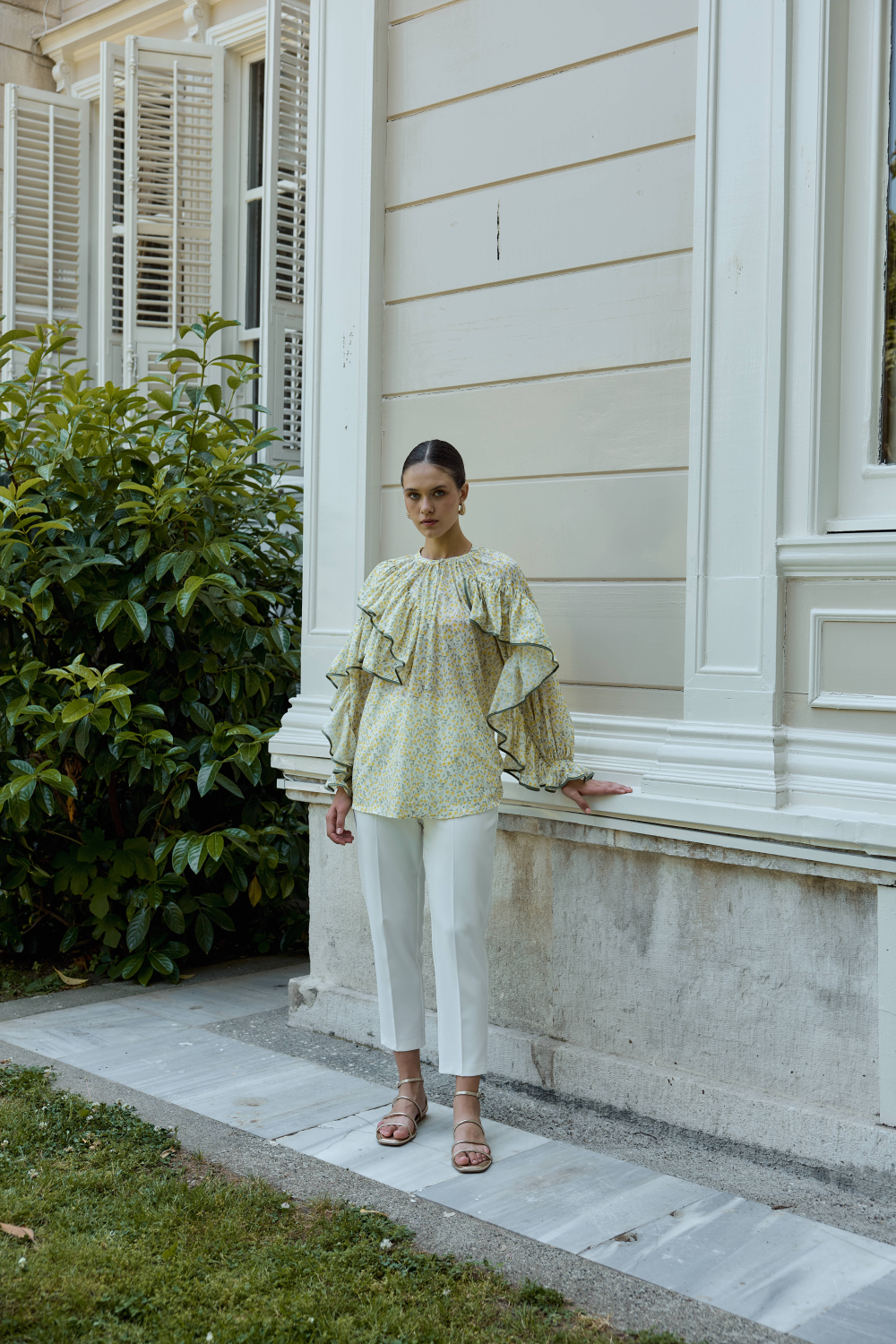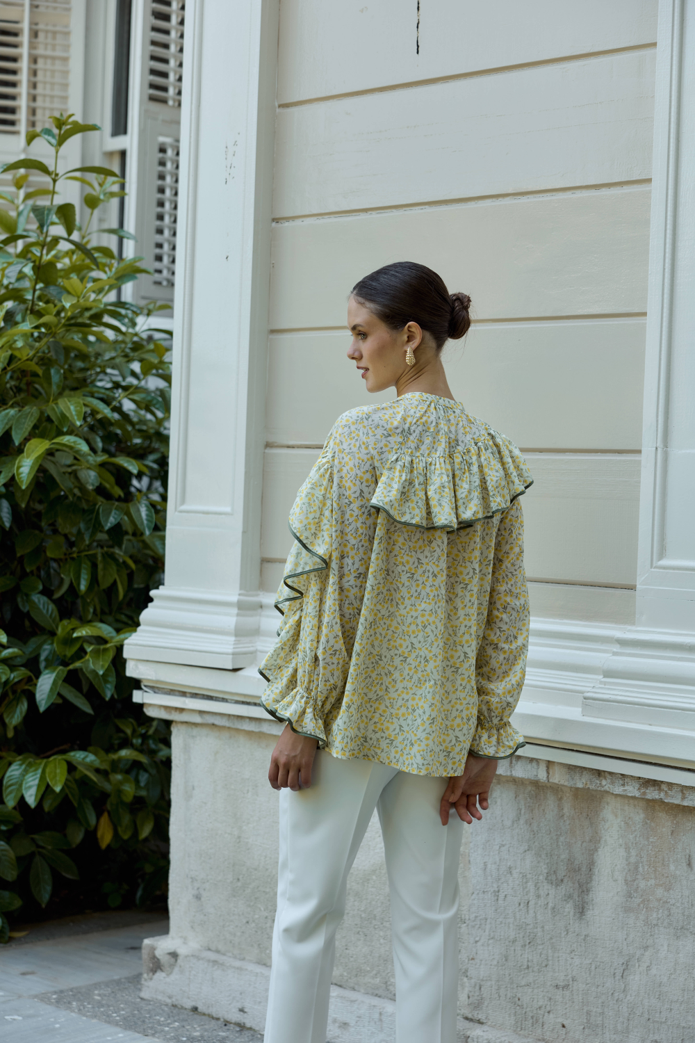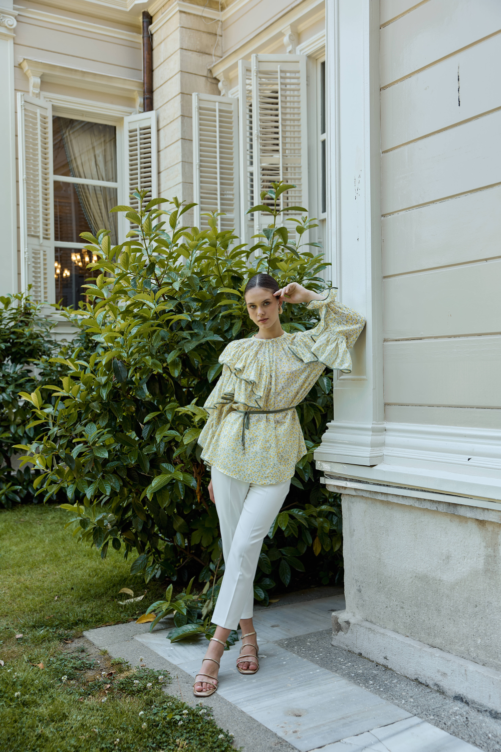 ÖZEL TASARIM ÇİÇEK DESENLİ PAMUK BLUZ