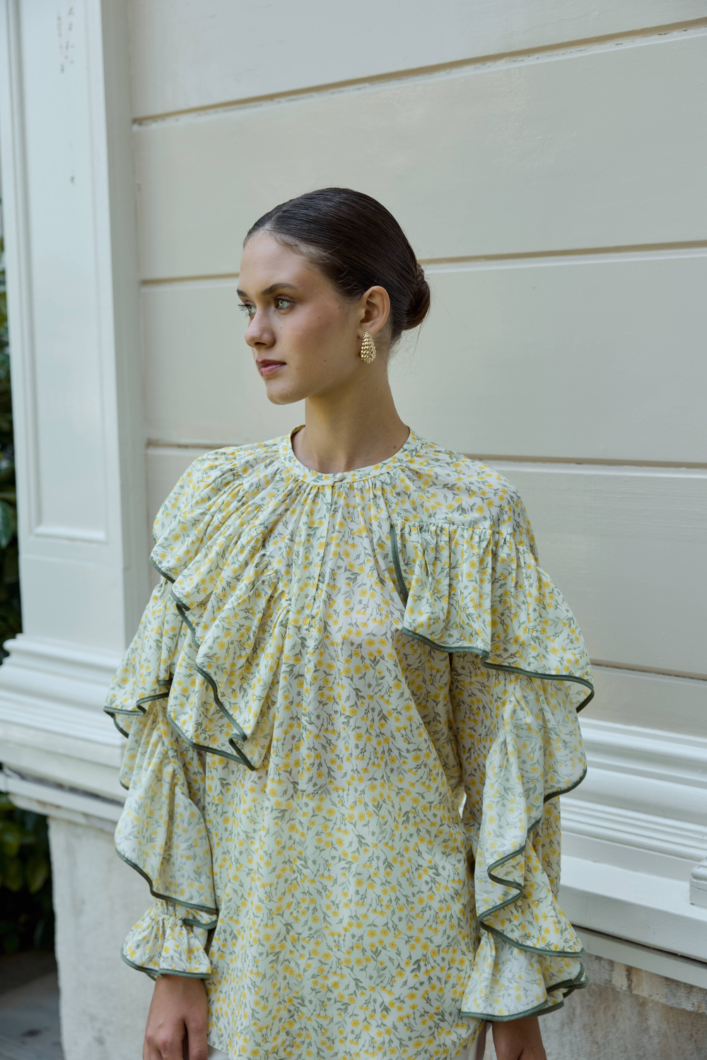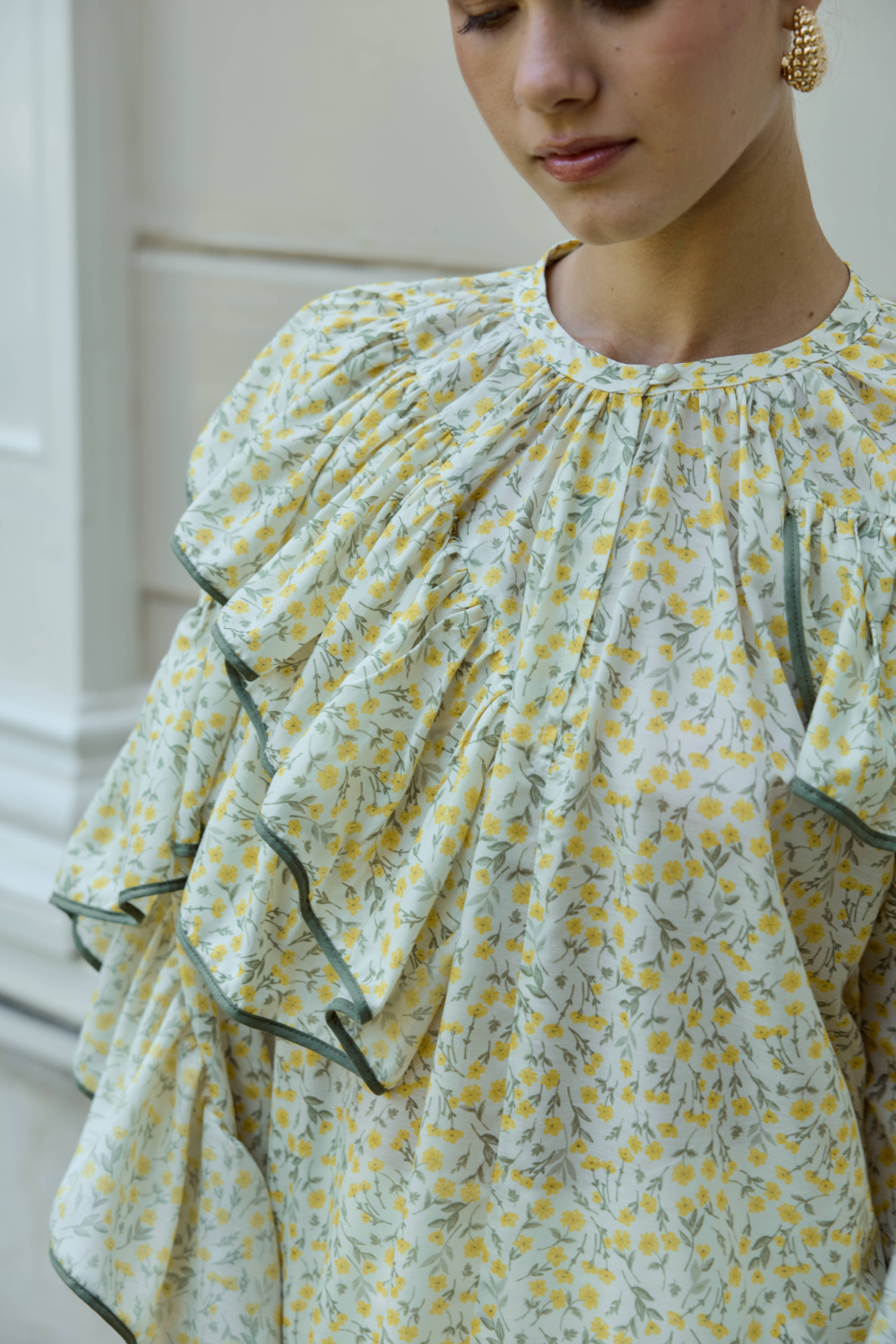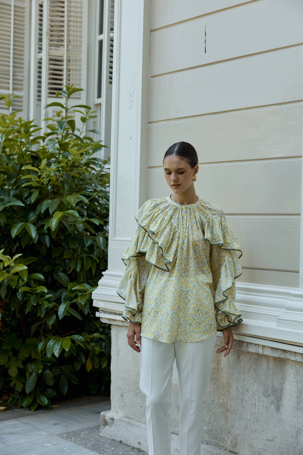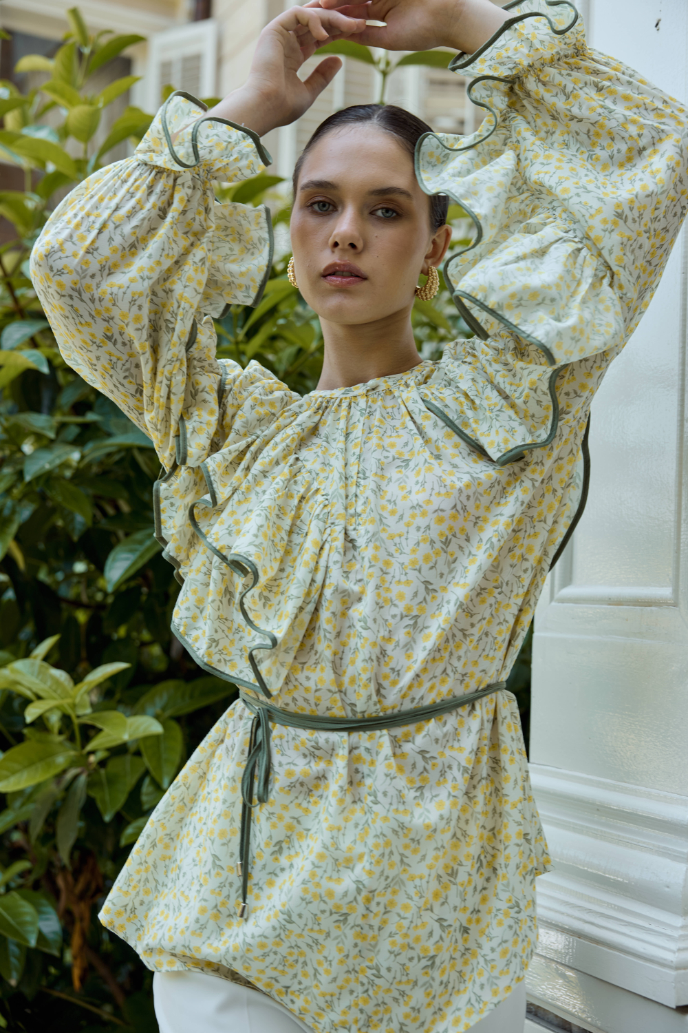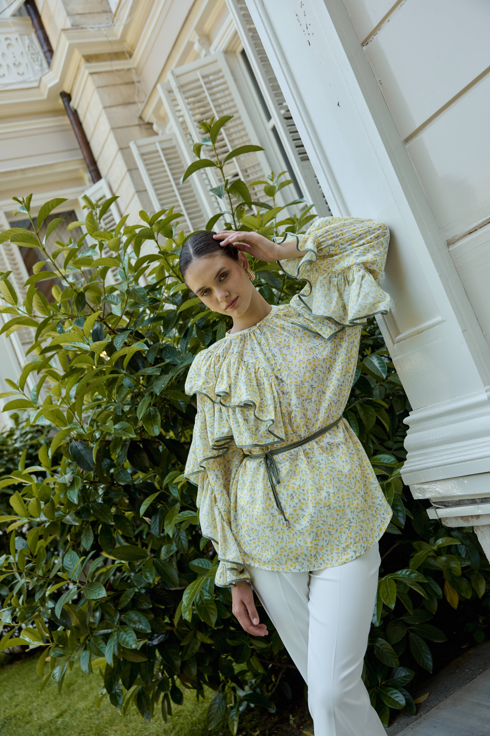 ÖZEL TASARIM ÇİÇEK DESENLİ PAMUK BLUZ