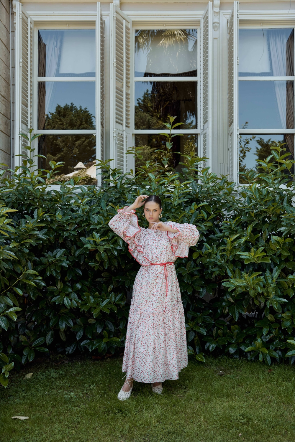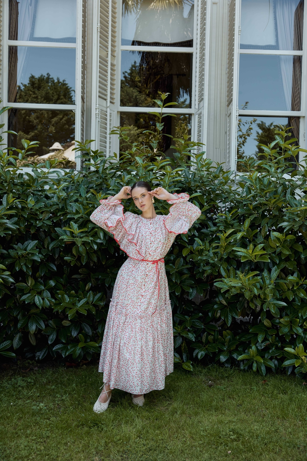 ÖZEL TASARIM ÇİÇEK DESENLİ PAMUK ELBİSE