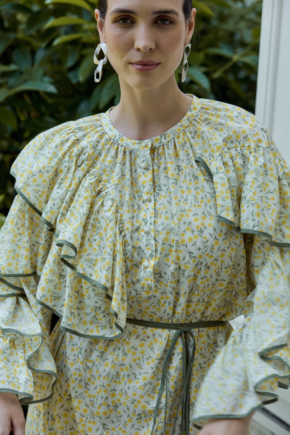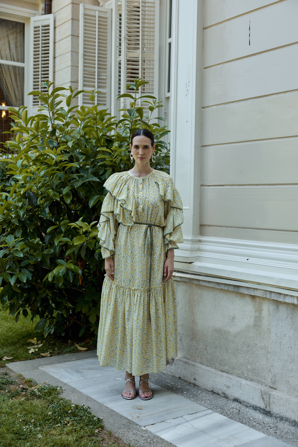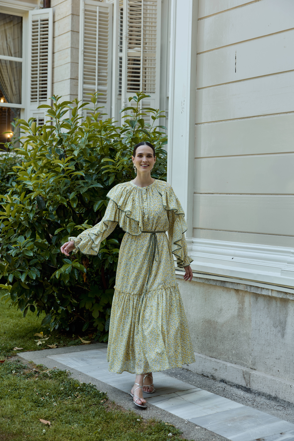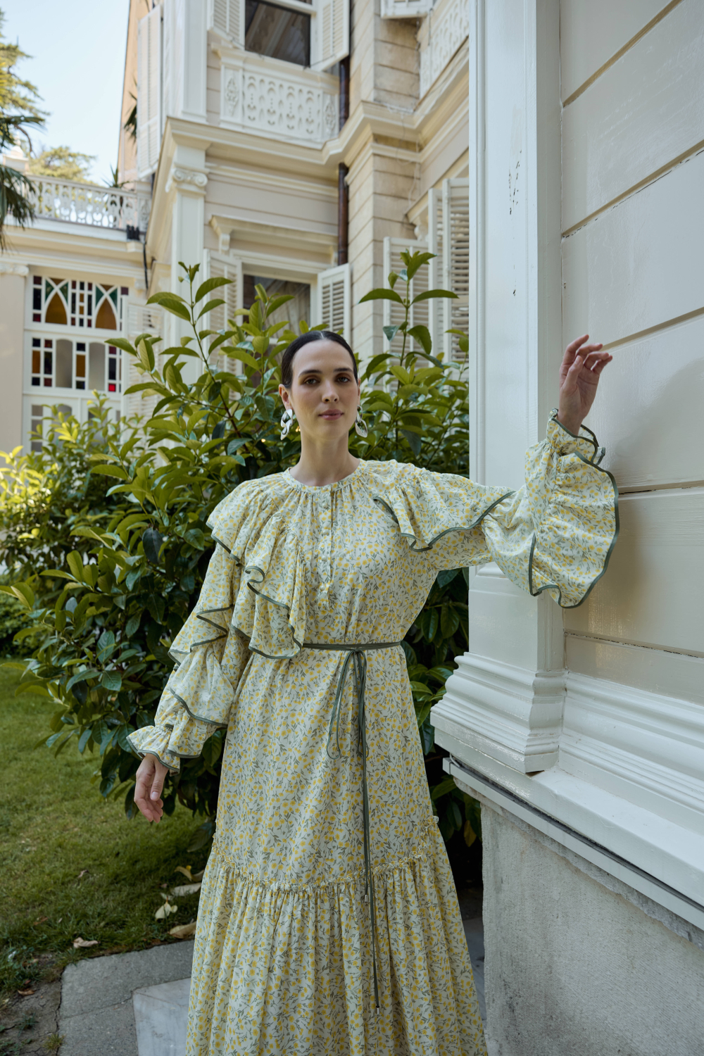 ÖZEL TASARIM ÇİÇEK DESENLİ PAMUK ELBİSE
