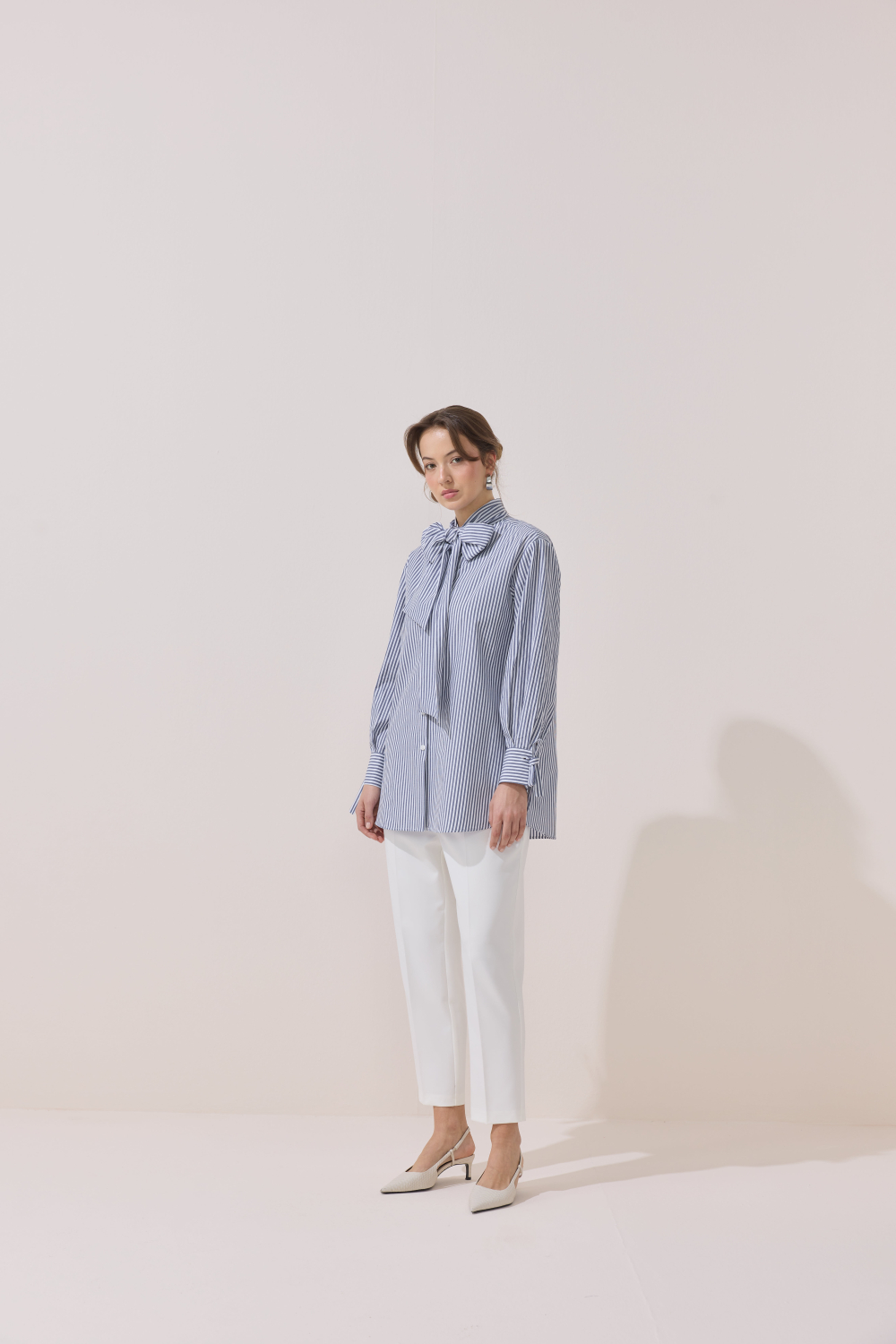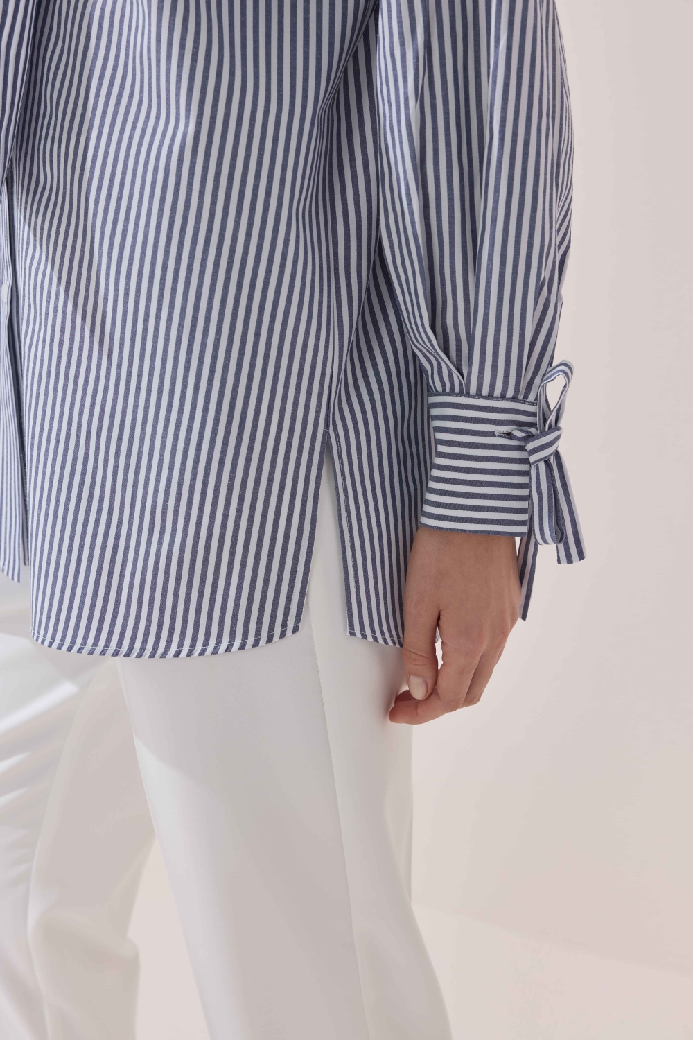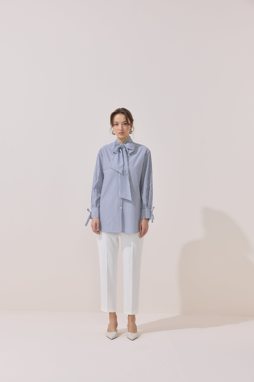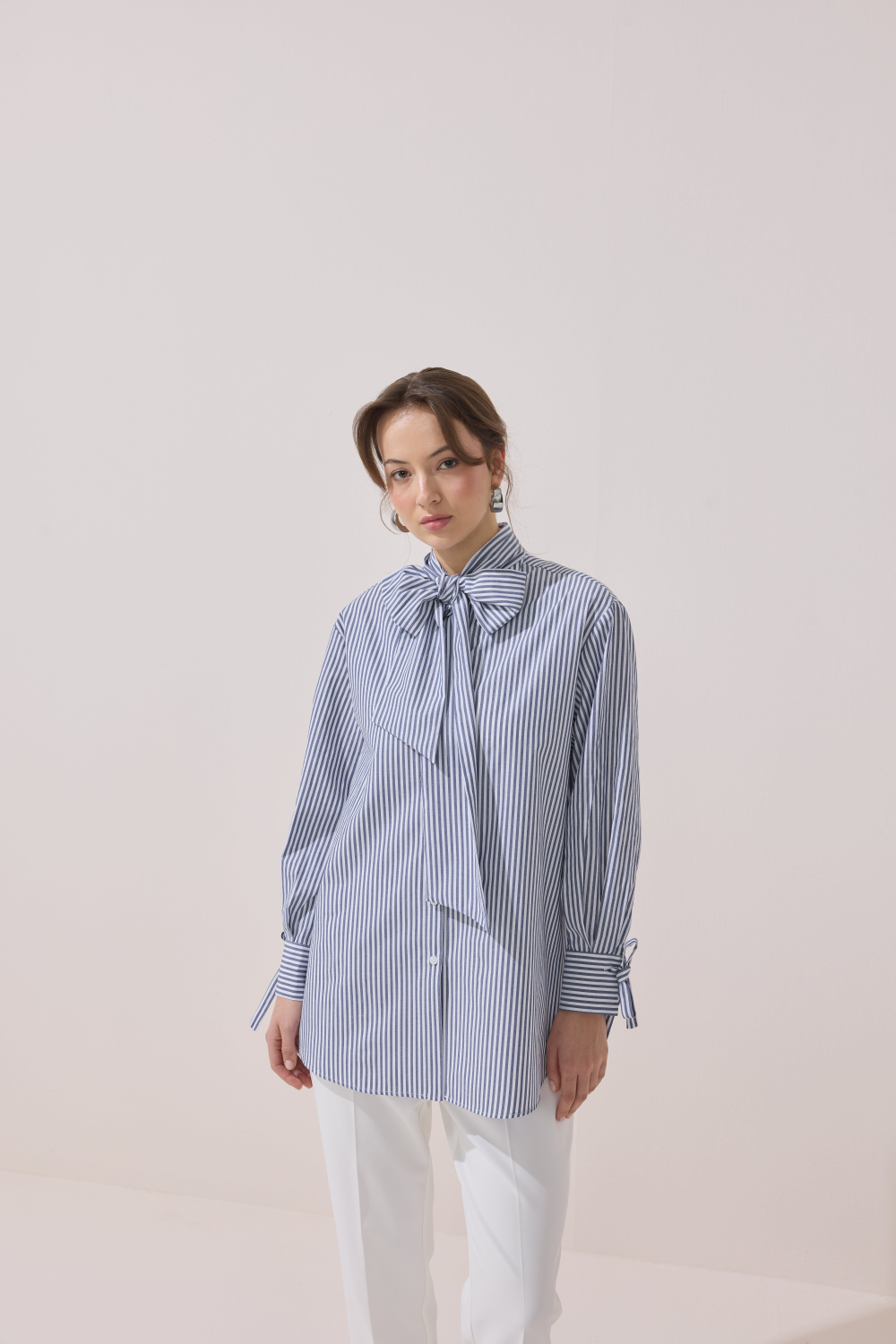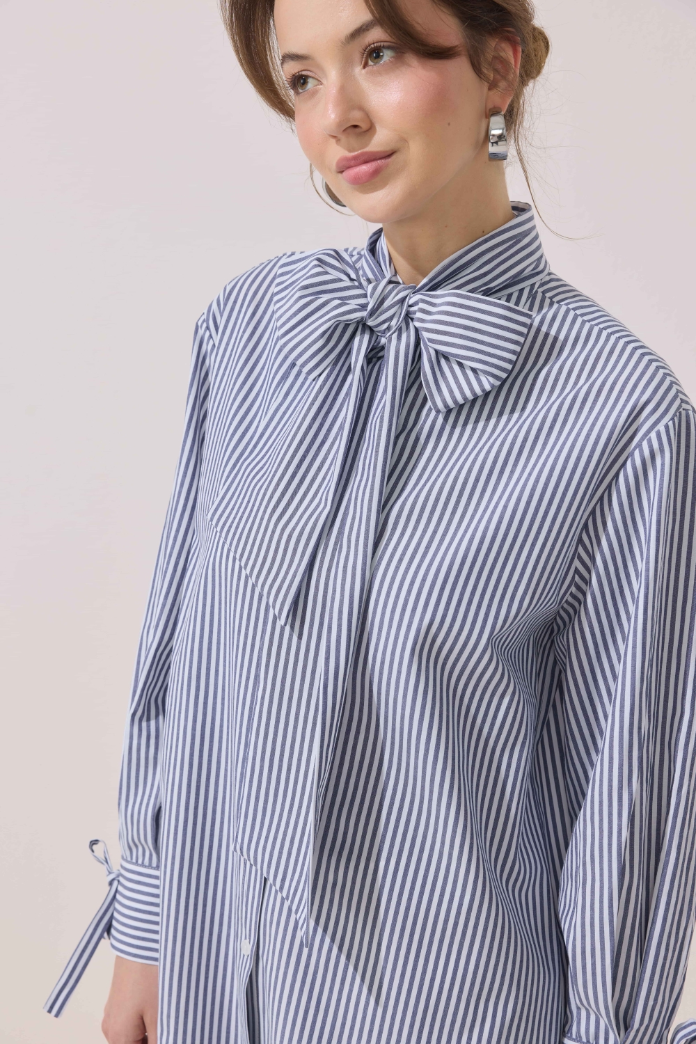 ÇİZGİLİ FULARLI GÖMLEK MAVİ
