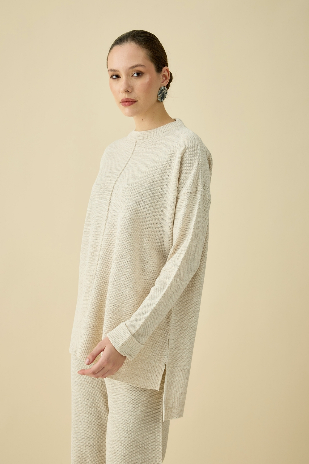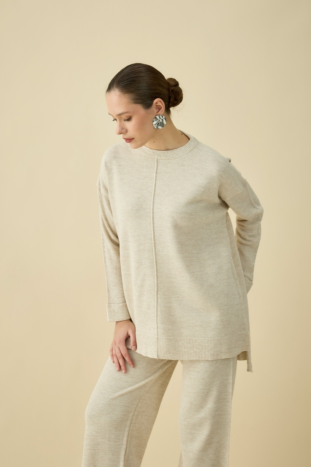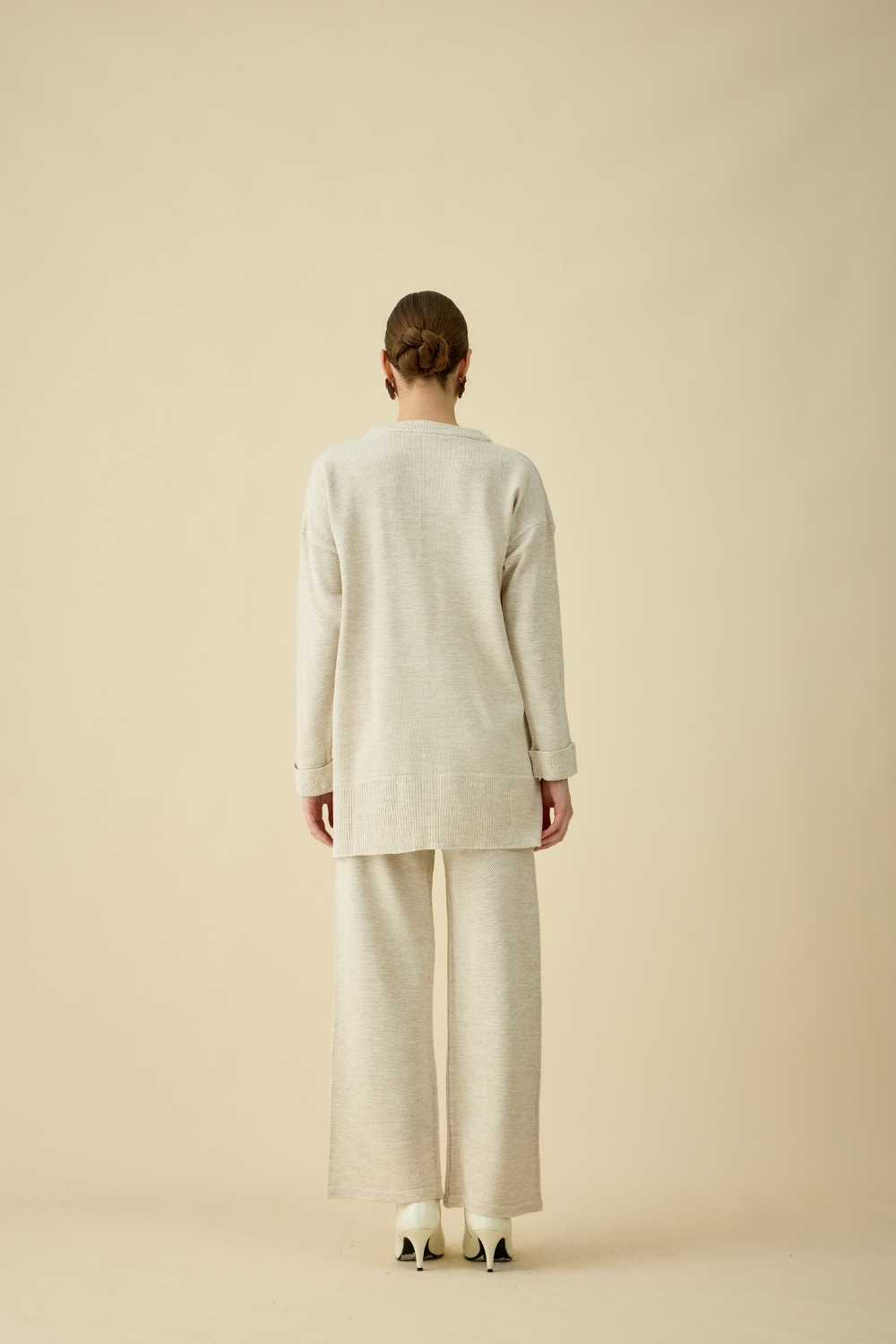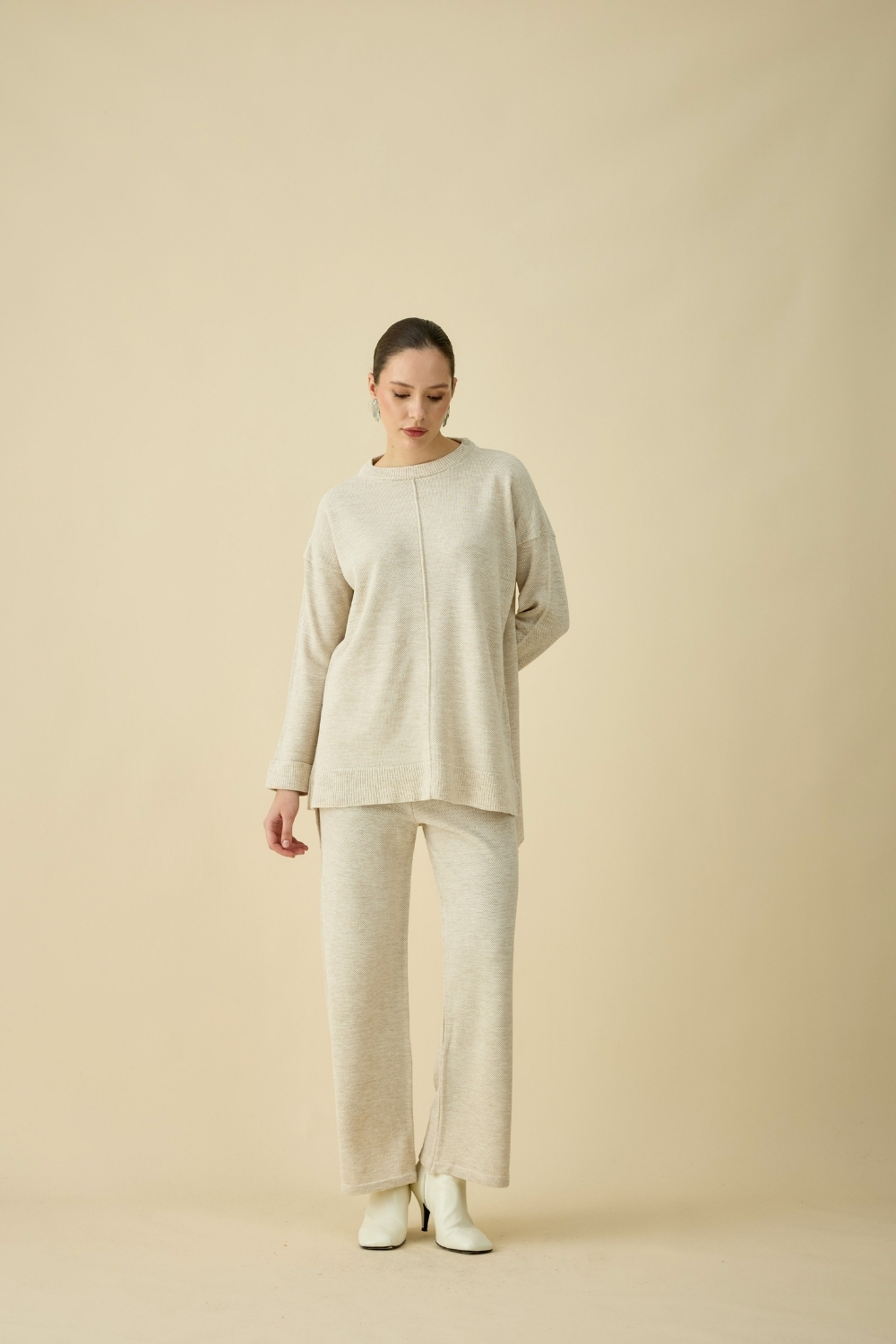 ÇİZGİLİ TRİKO TAKIM BEJ