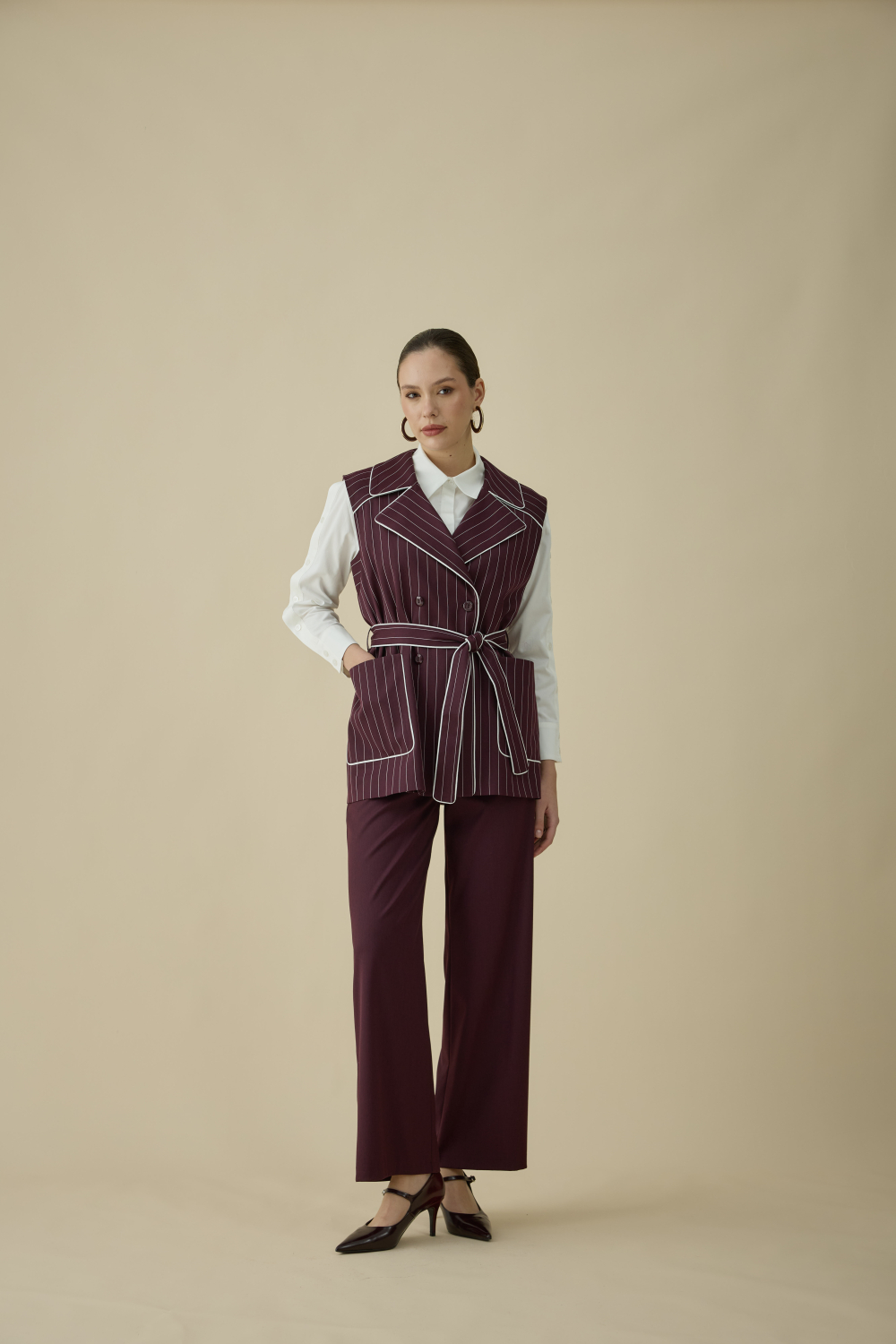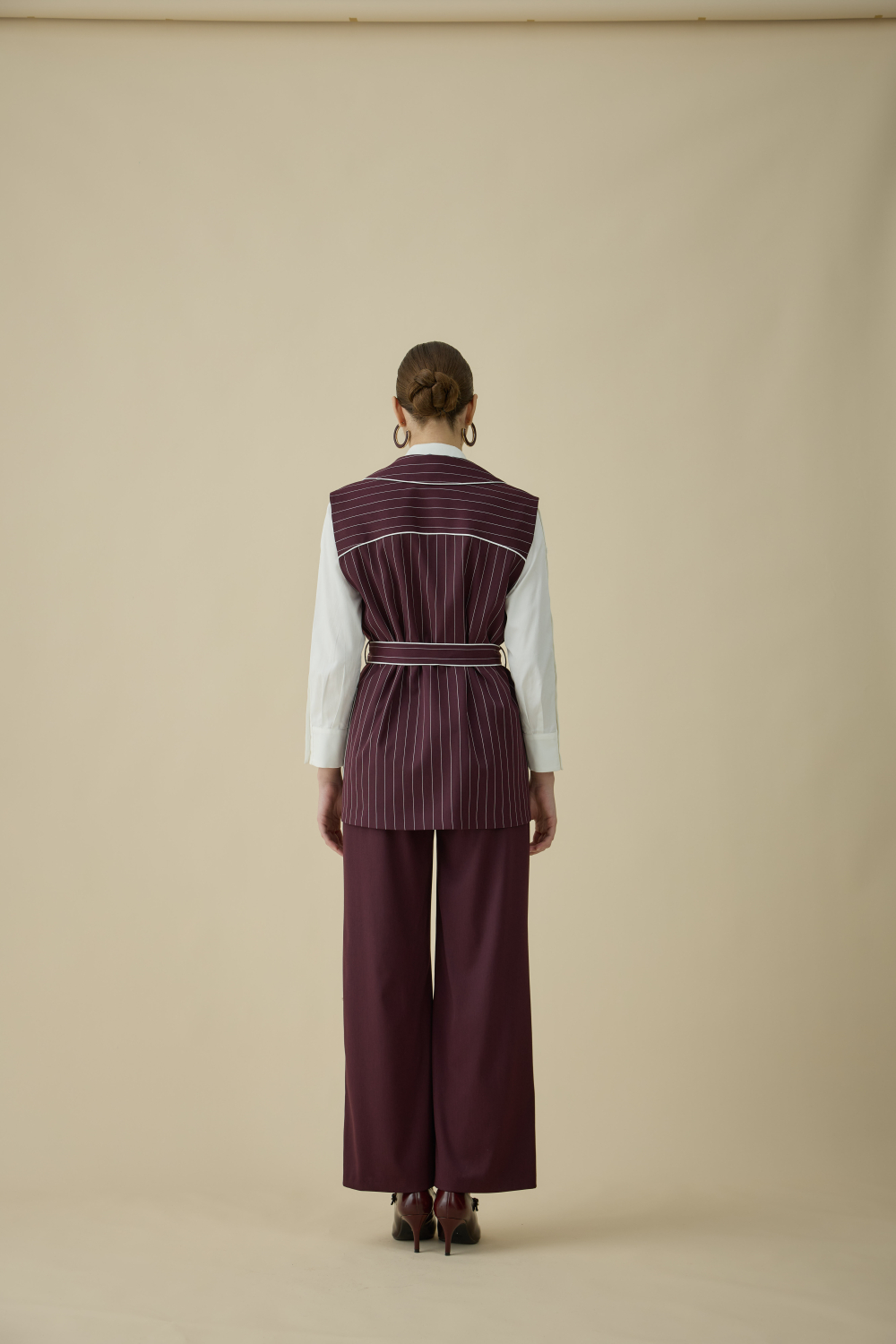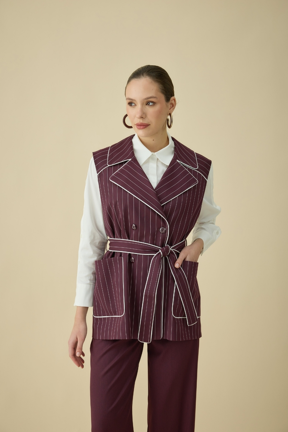 KEMER DETAYLI ÇİZGİLİ YELEK TAKIM