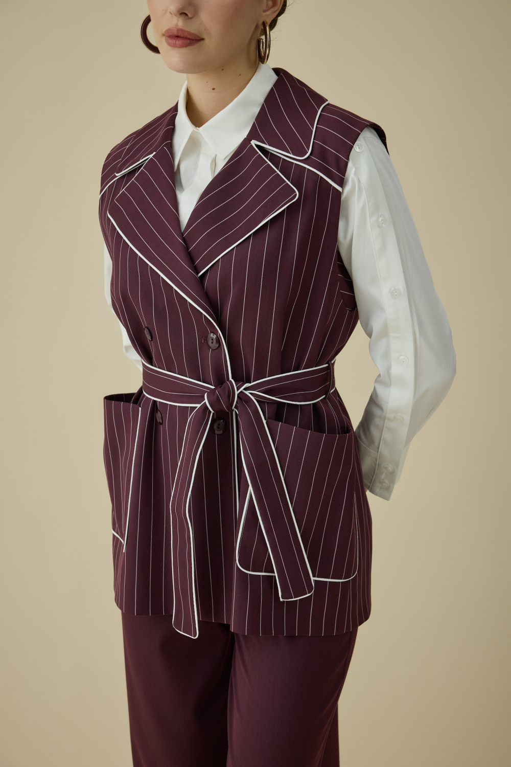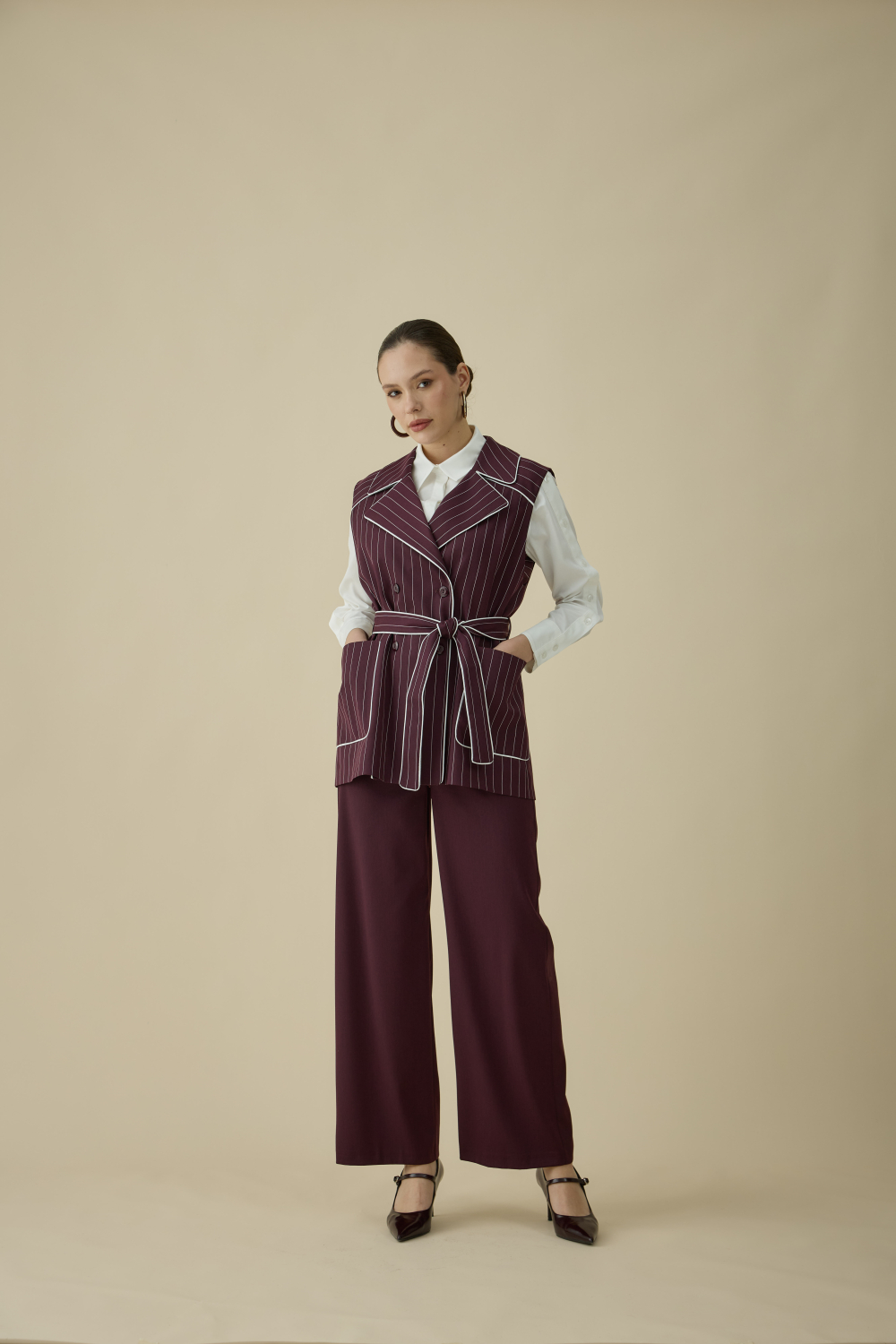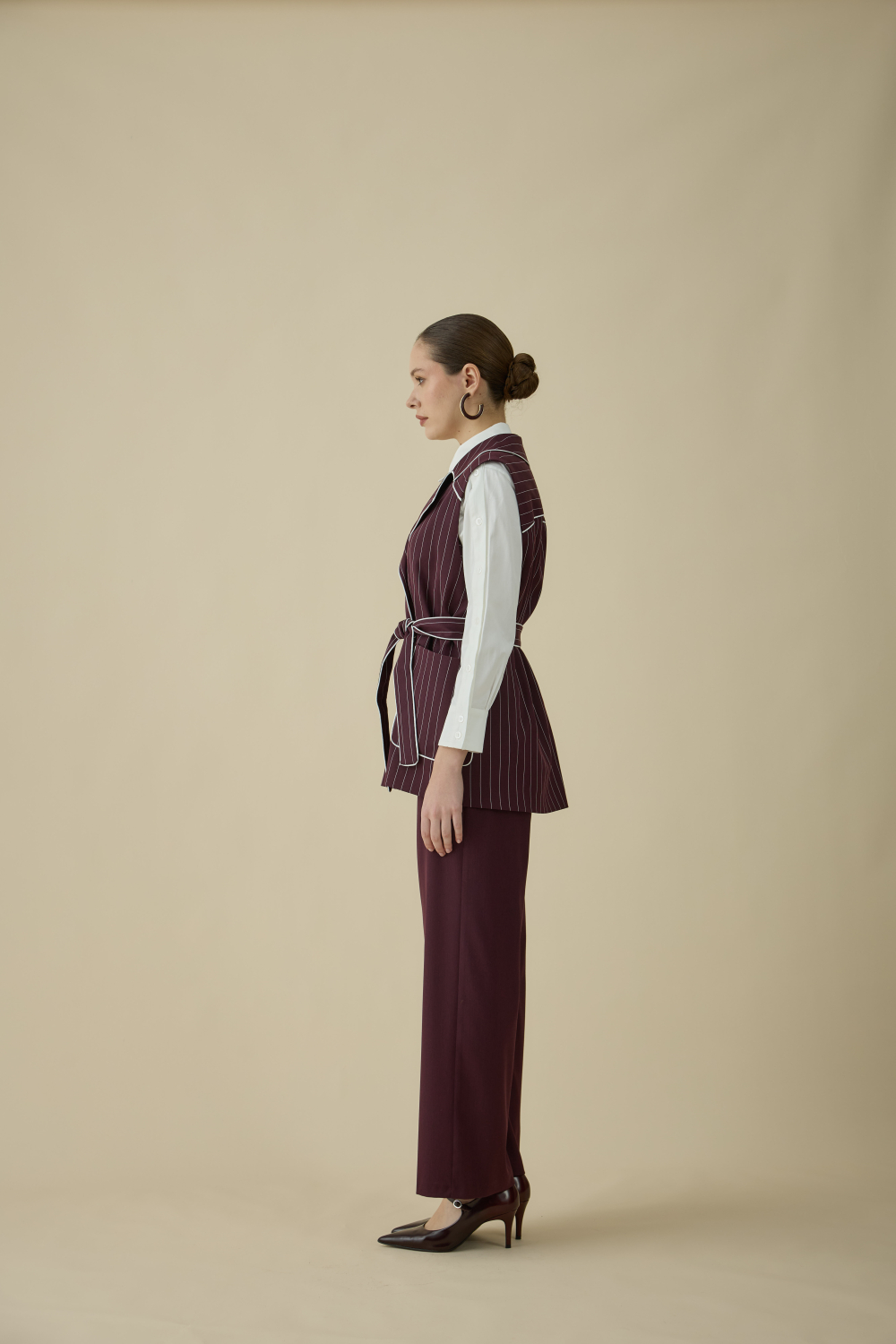 KEMER DETAYLI ÇİZGİLİ YELEK TAKIM