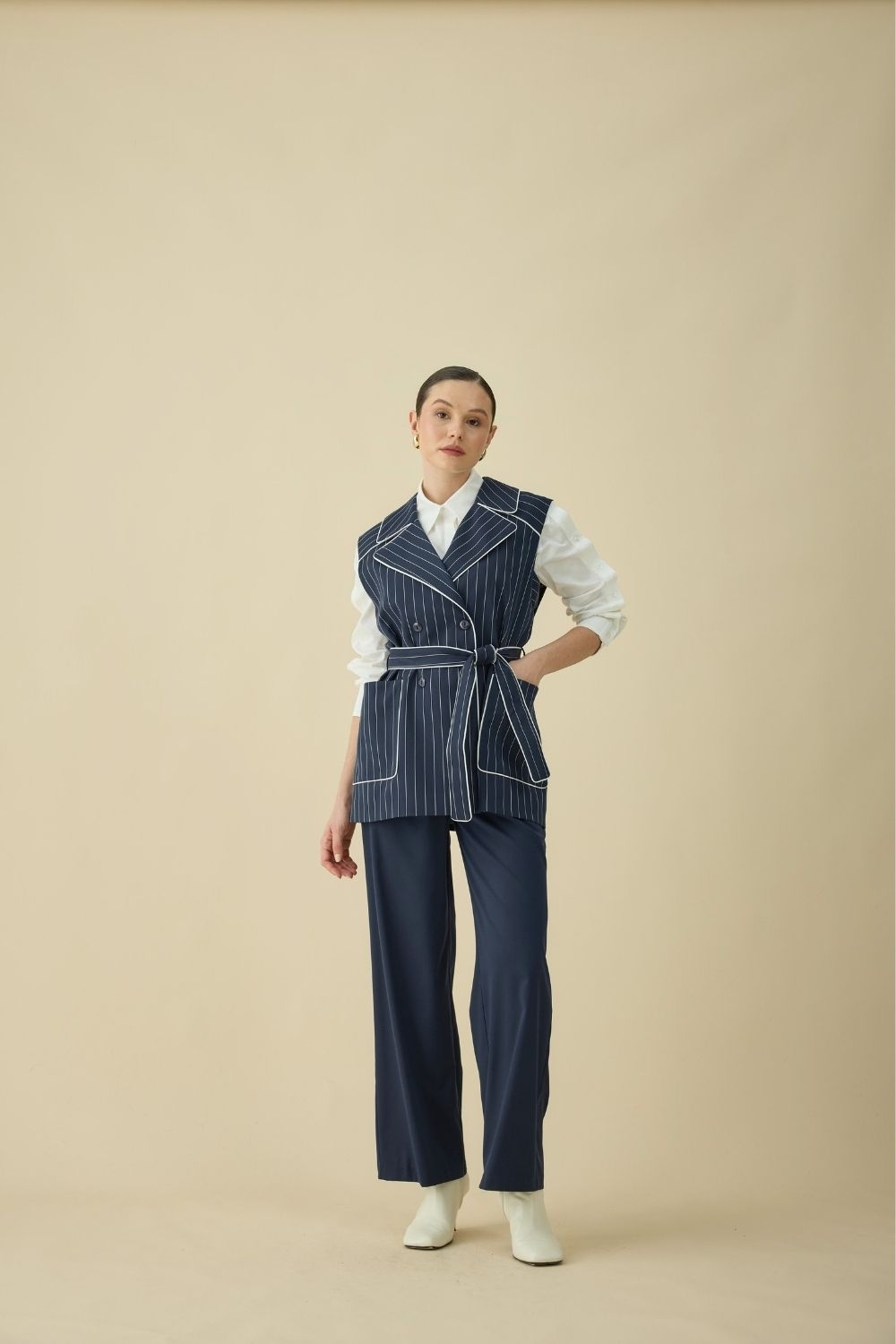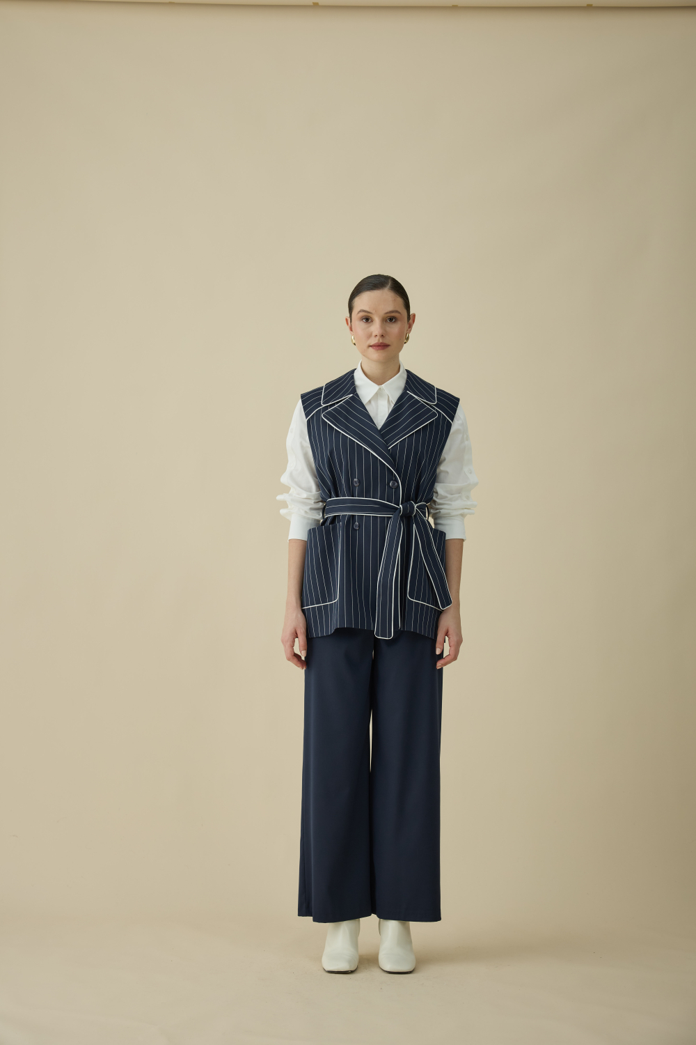ÇİZGİLİ YELEK TAKIM LACİVERT