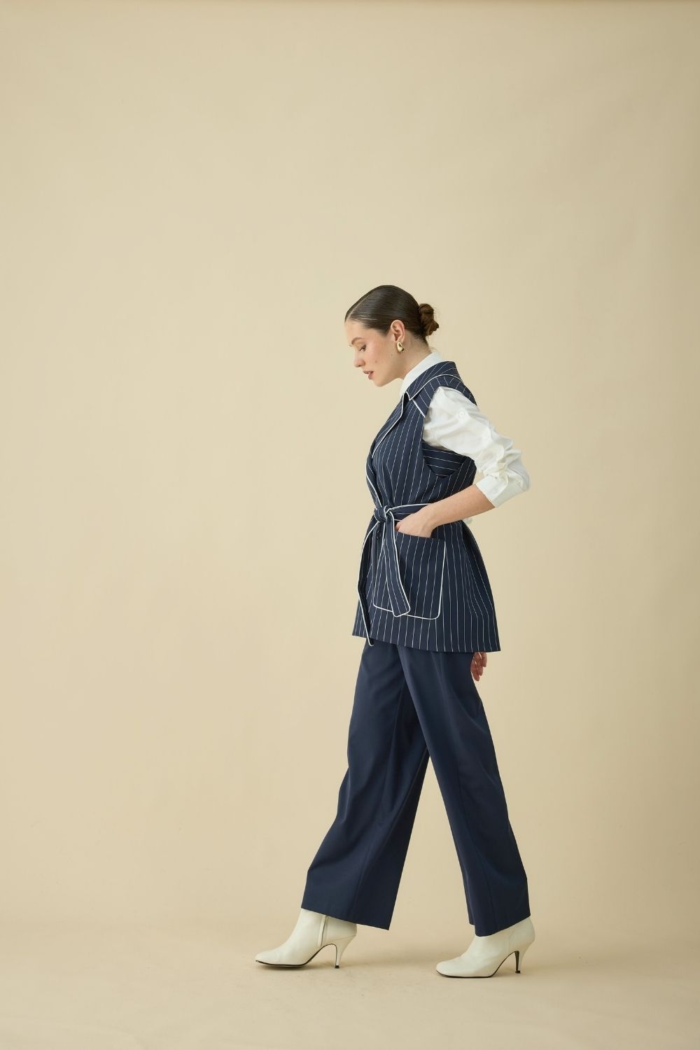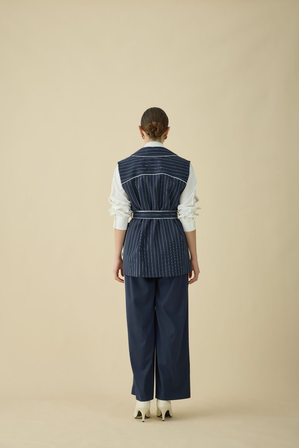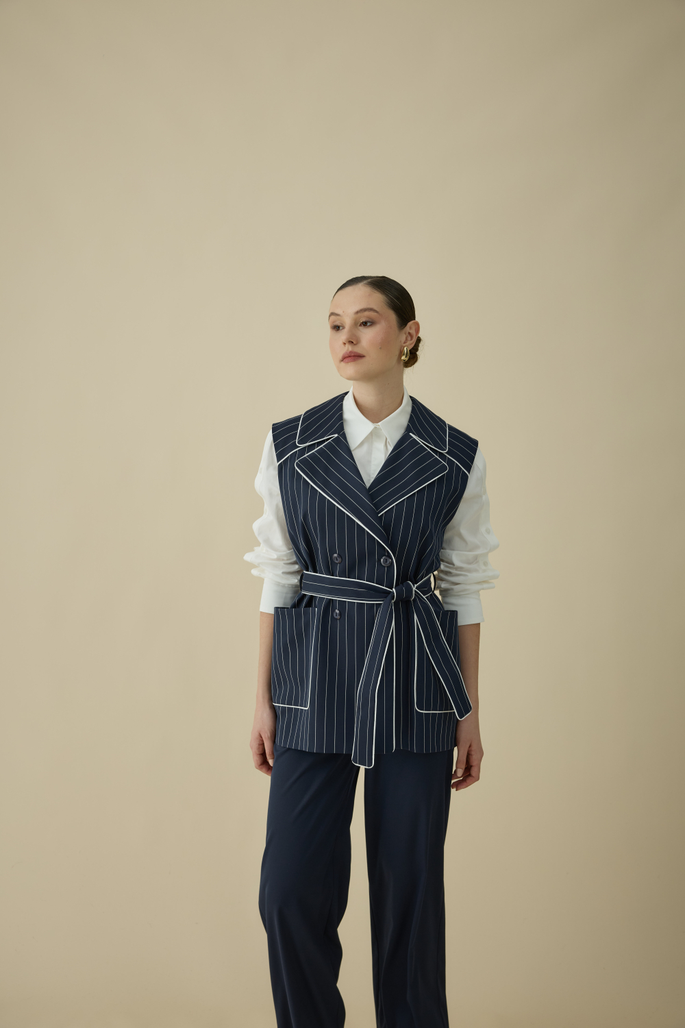 KEMER DETAYLI ÇİZGİLİ YELEK TAKIM