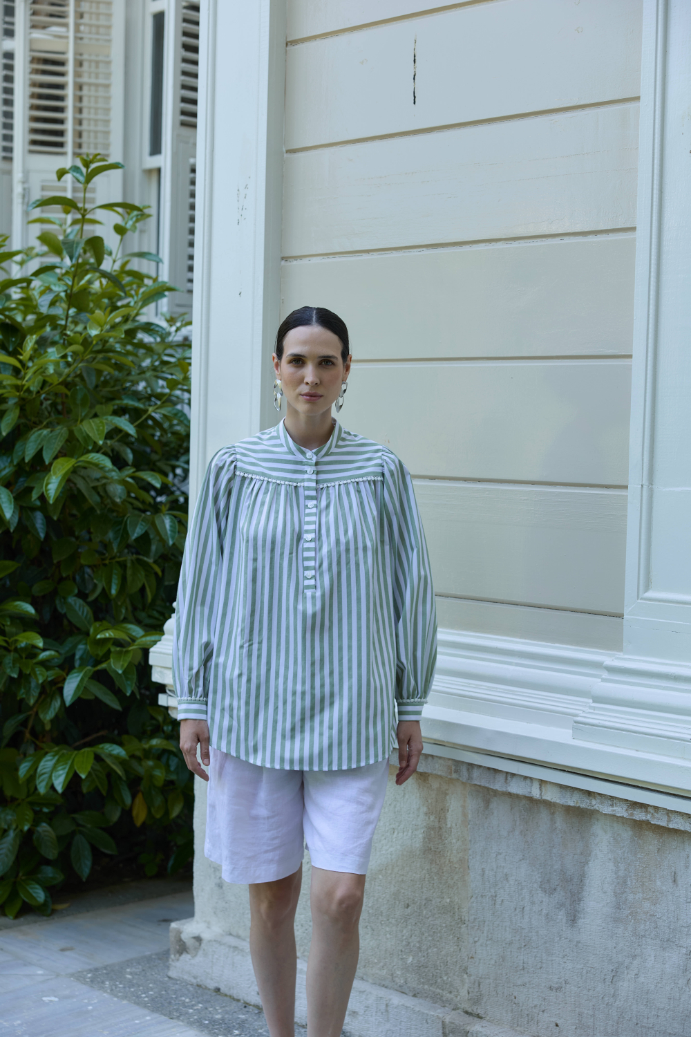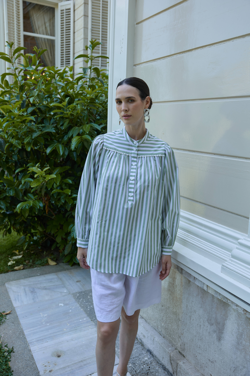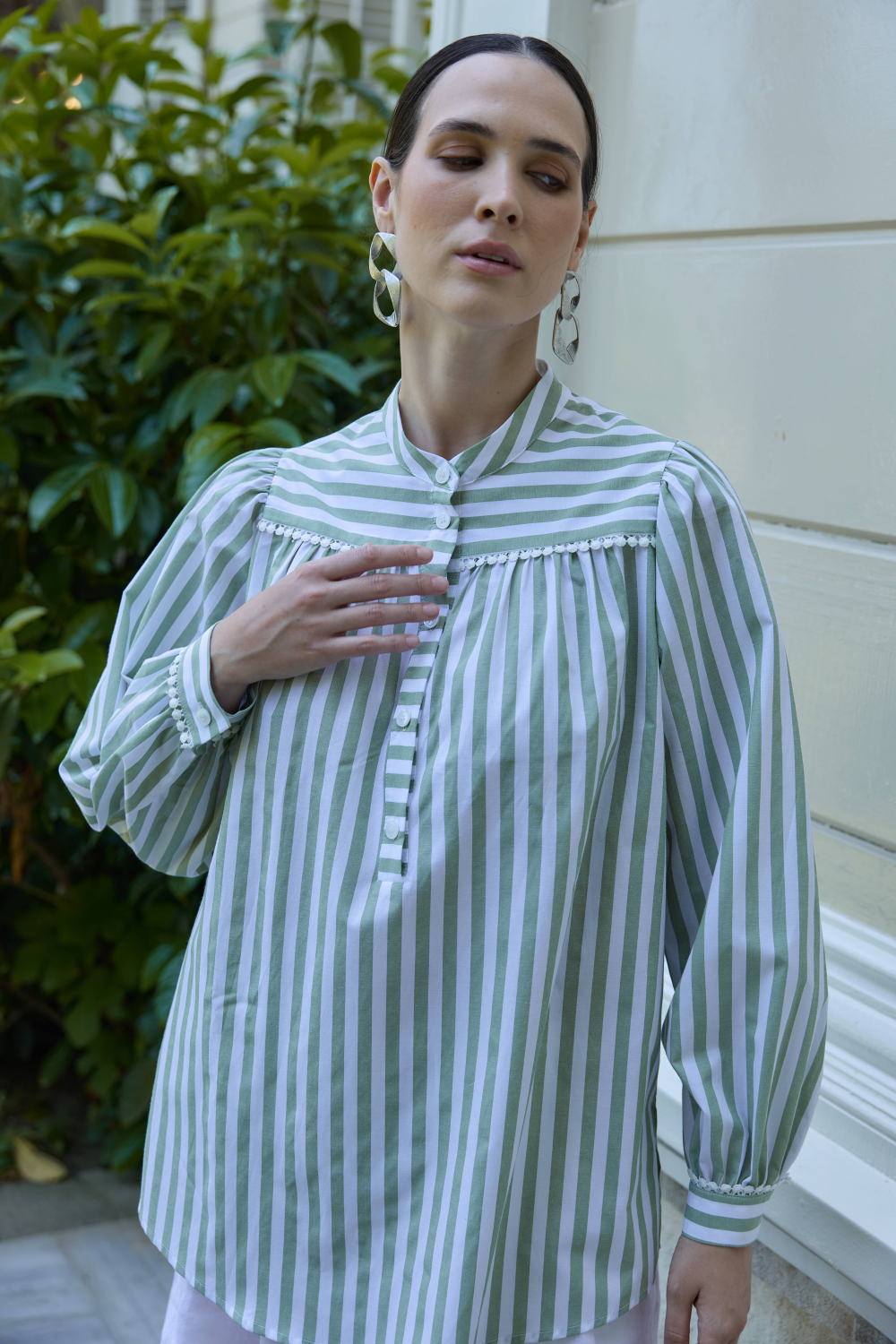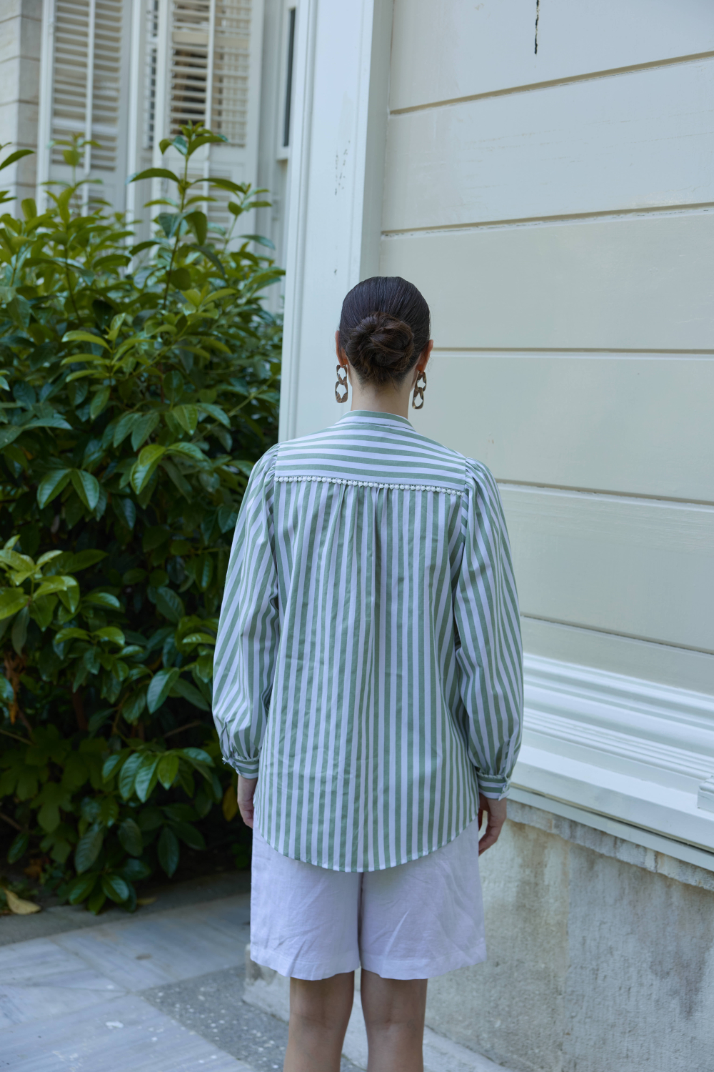 FİSTO DETAYLI ÇİZGİLİ GÖMLEK