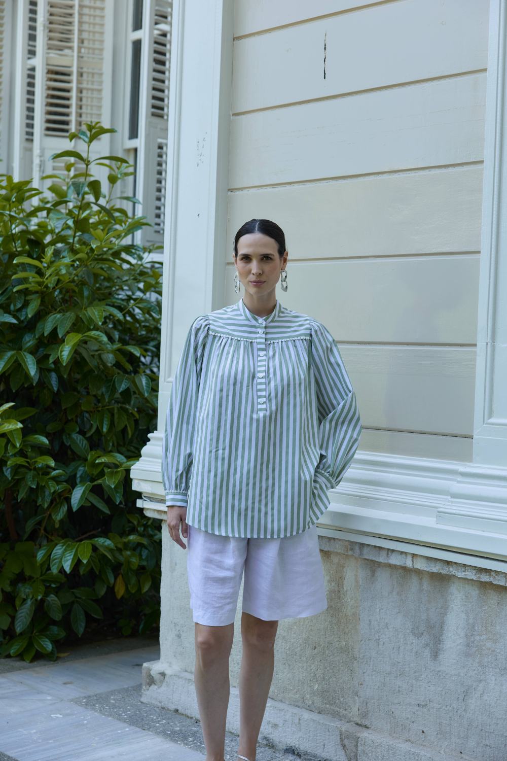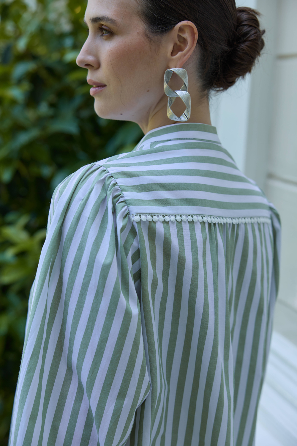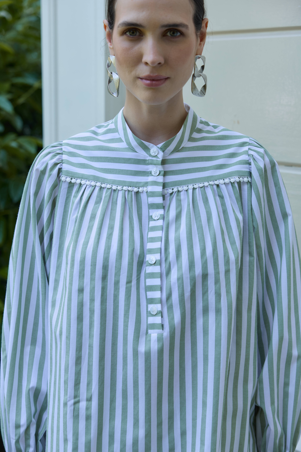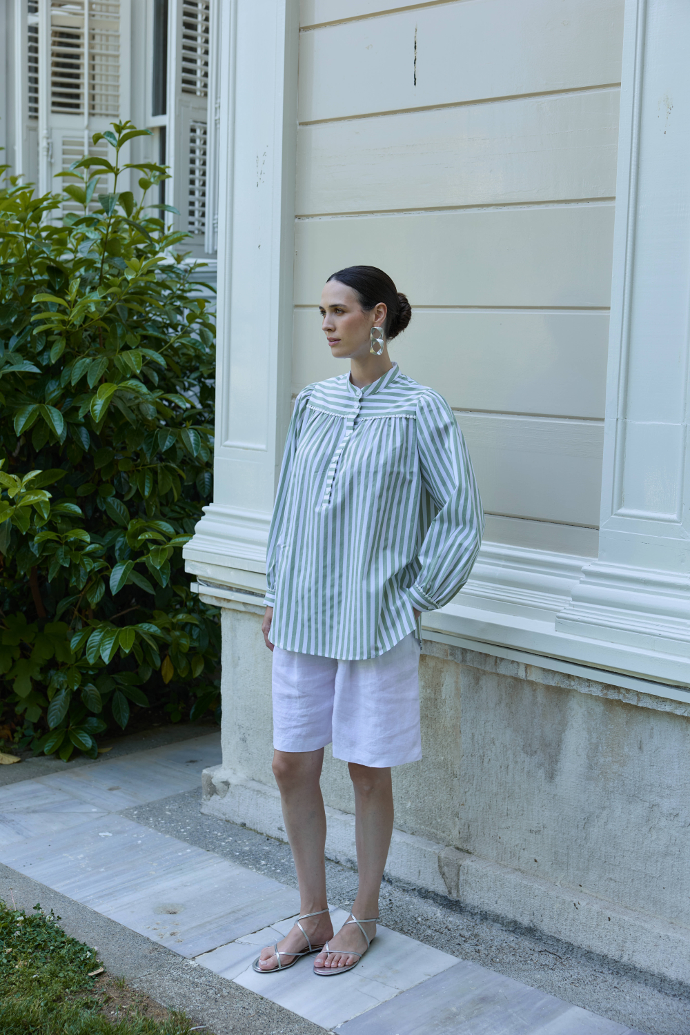 FİSTO DETAYLI ÇİZGİLİ GÖMLEK