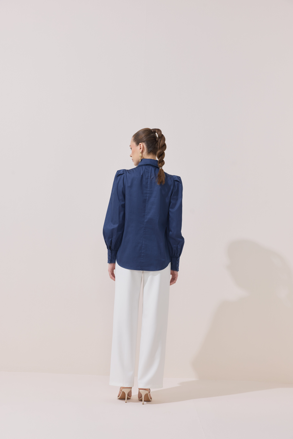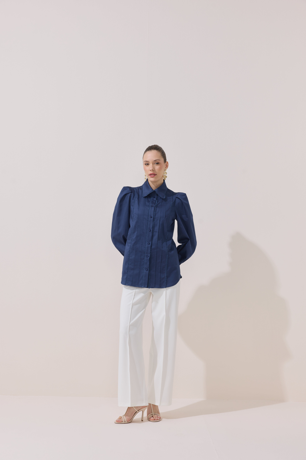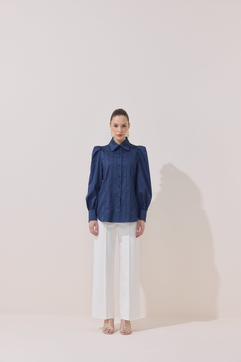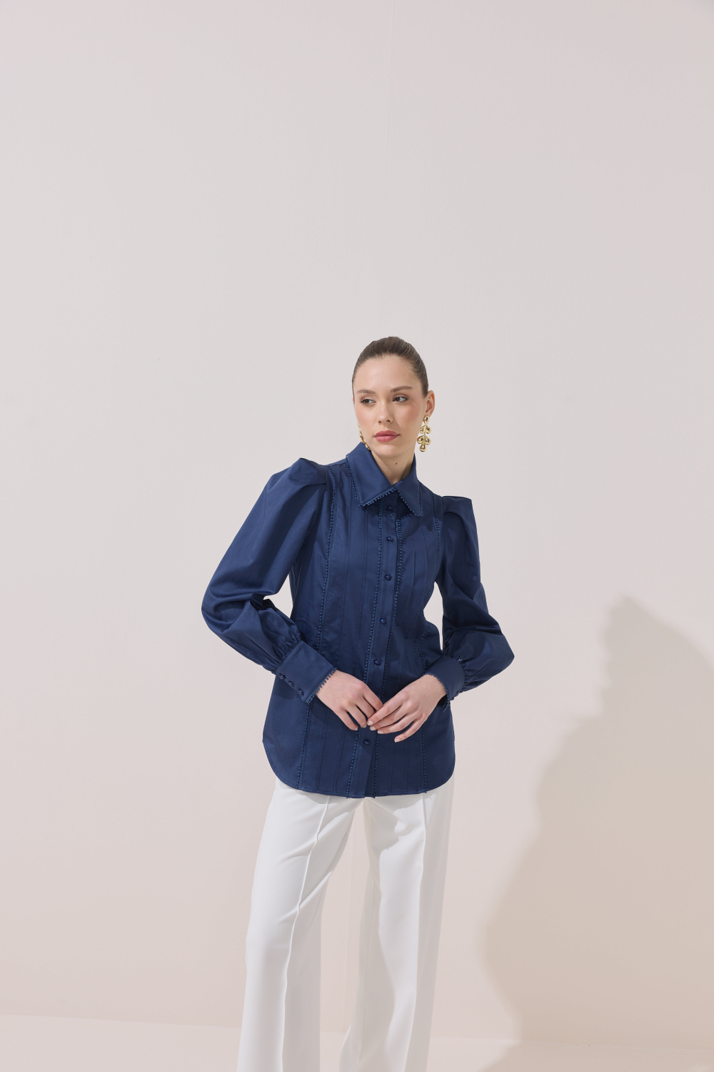 ÖZEL TASARIM OMUZ VATKA DETAYLI FİSTOLU GÖMLEK