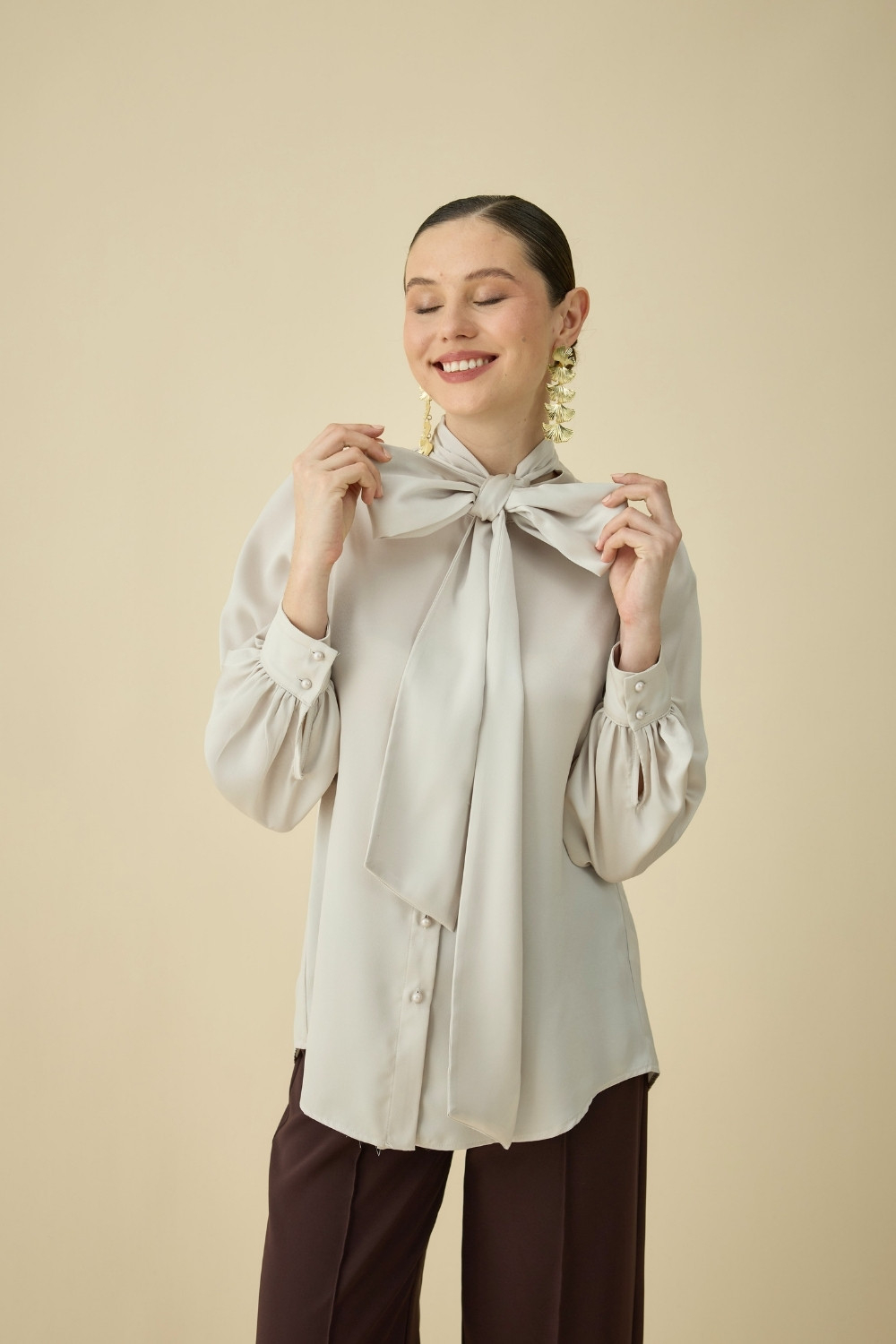Gelince Haber VerSEYYAR FULAR DETAYLI SATEN BLUZ