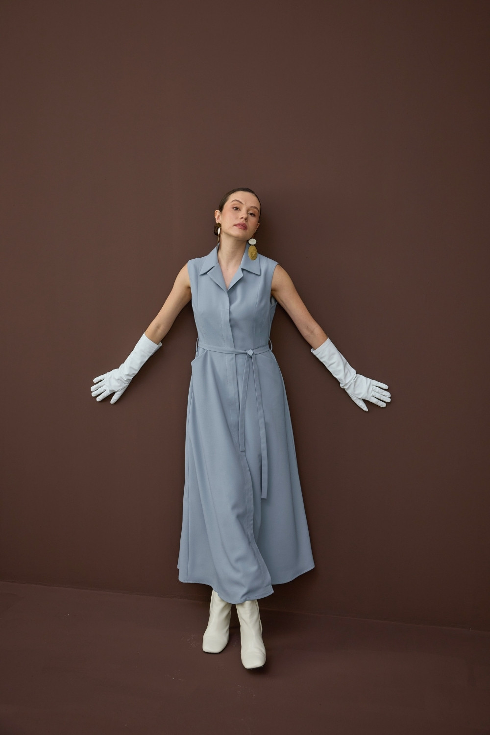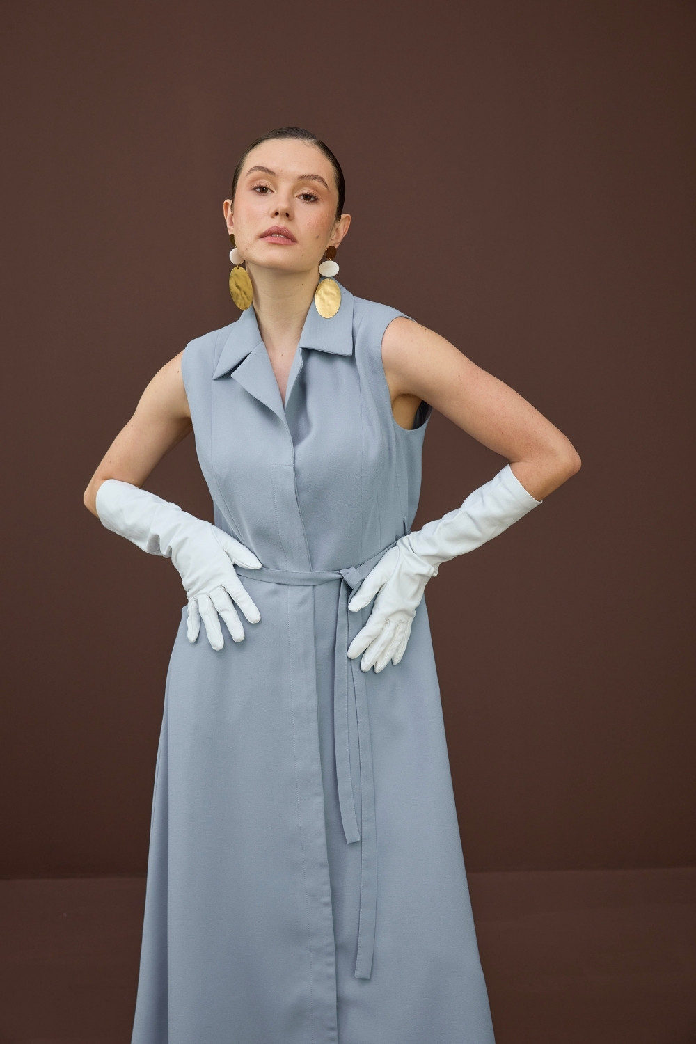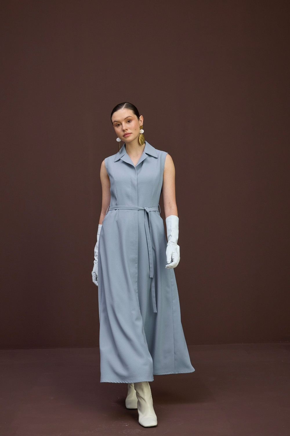 KREP KUMAŞ KENDİNDEN KEMERLİ ELBİSE