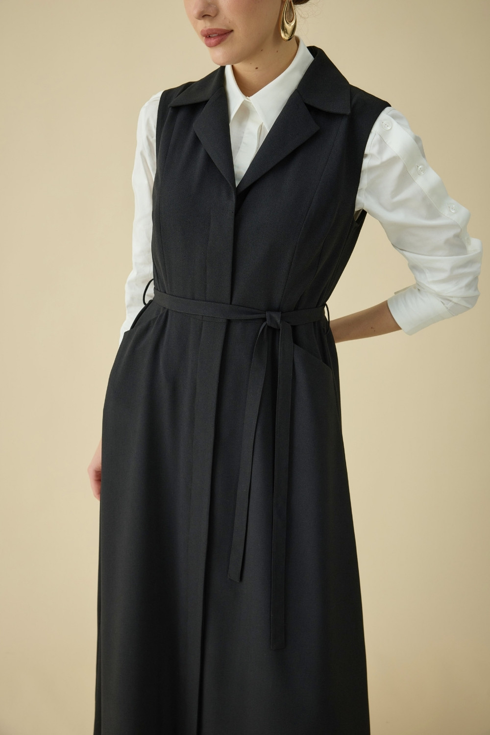 KREP KUMAŞ KENDİNDEN KEMERLİ ELBİSE