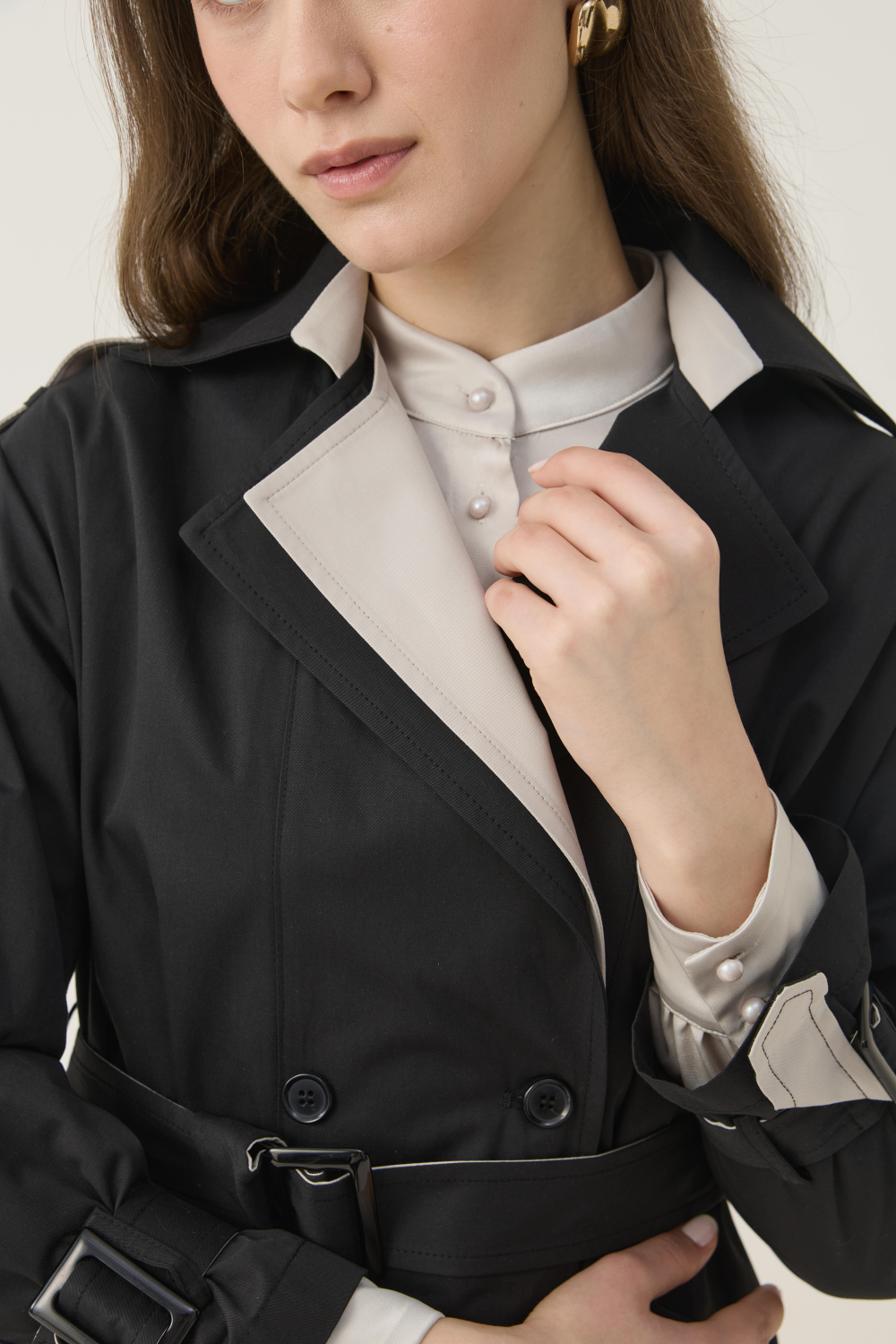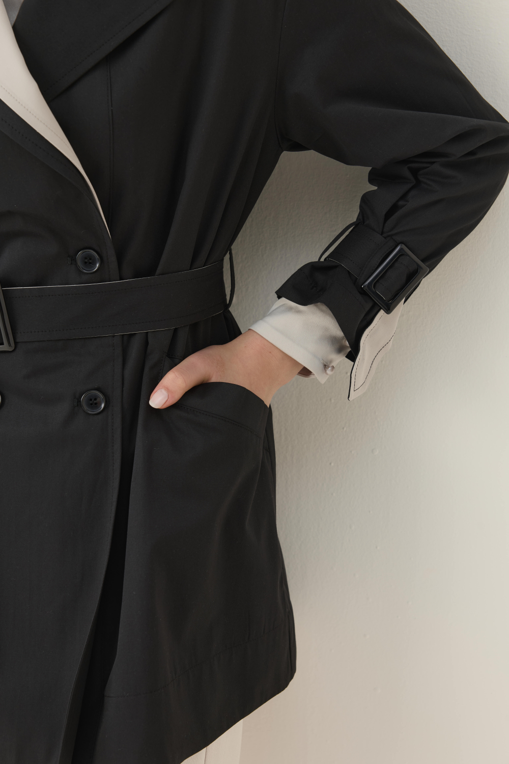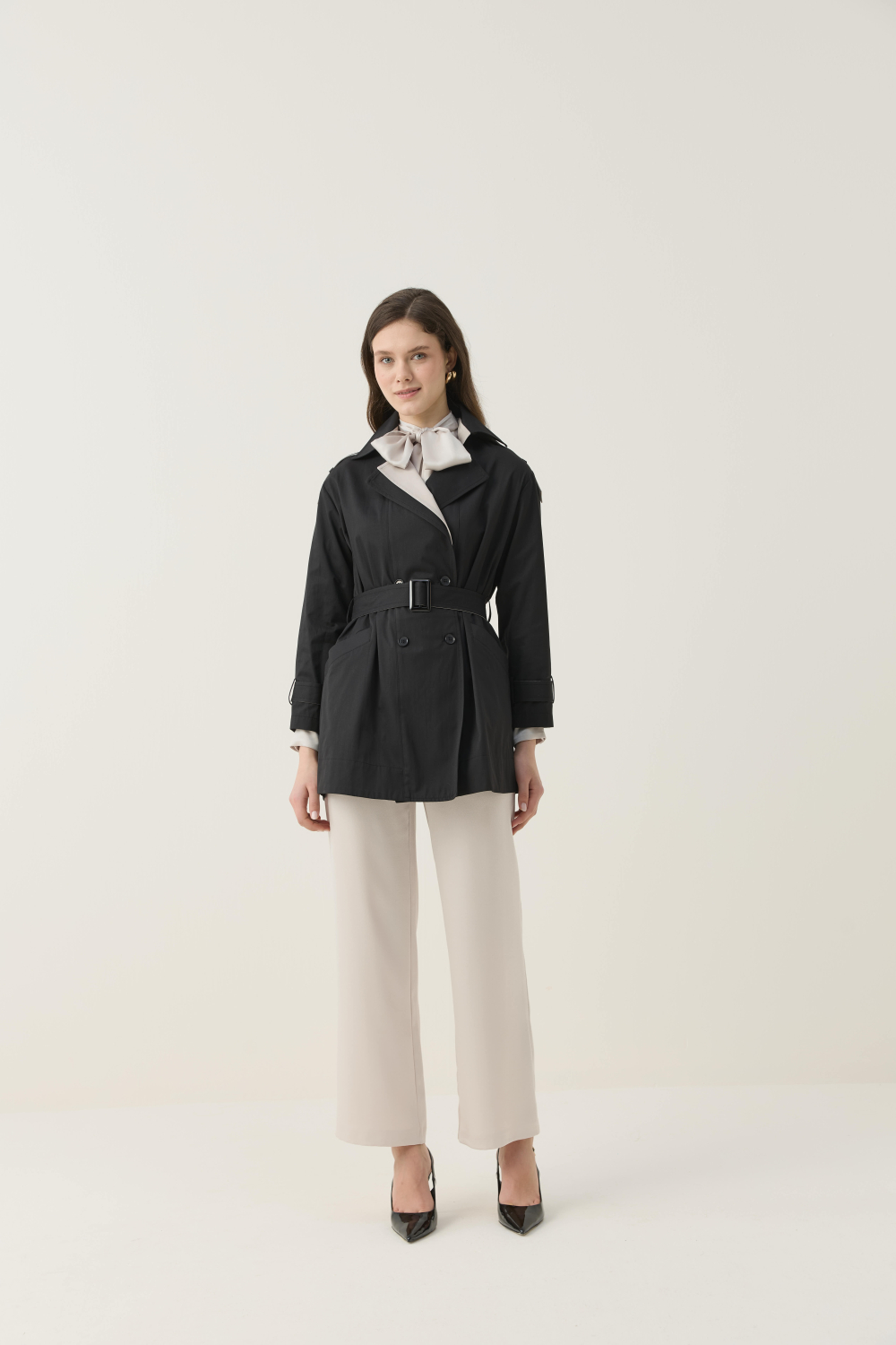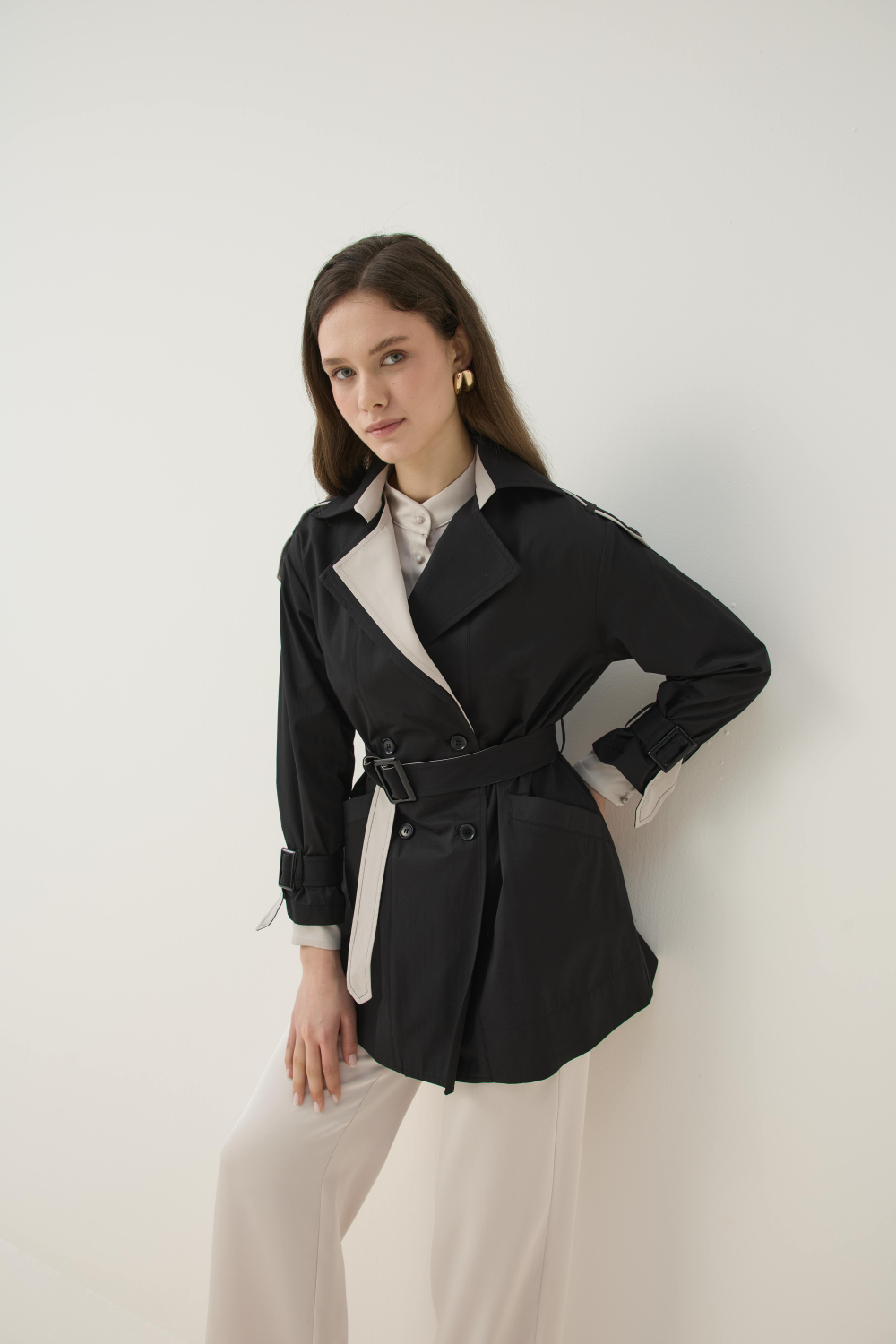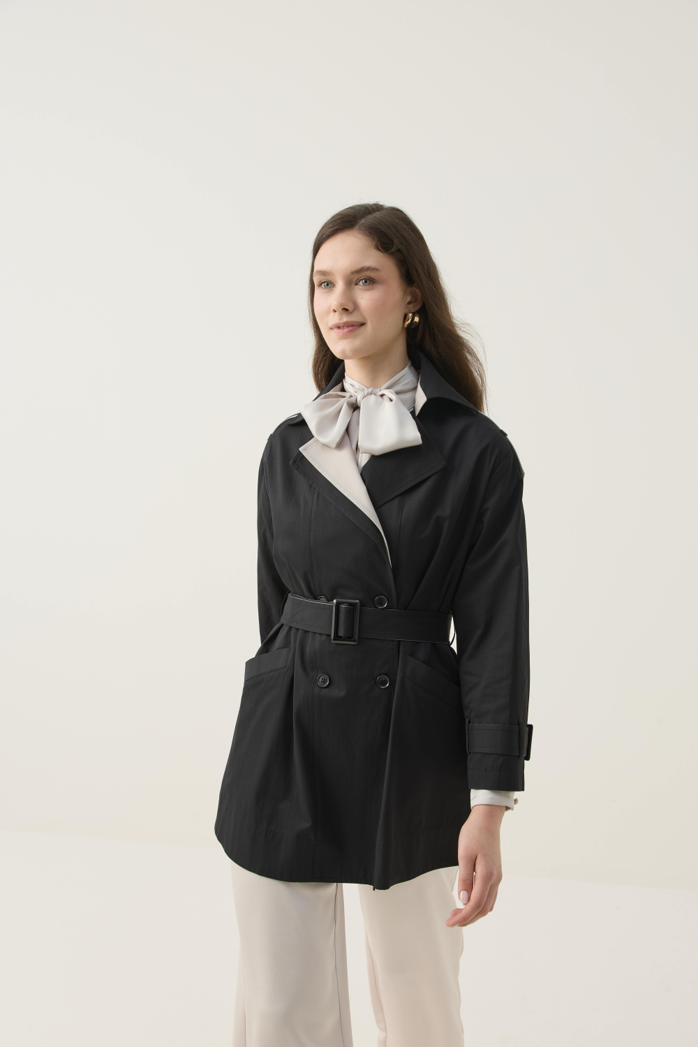 KONTRAST RENK DETAYIYLA HEM ŞIK HEM DE GÜNLÜK KULLANIMA UYGUN KISA TRENÇKOT
