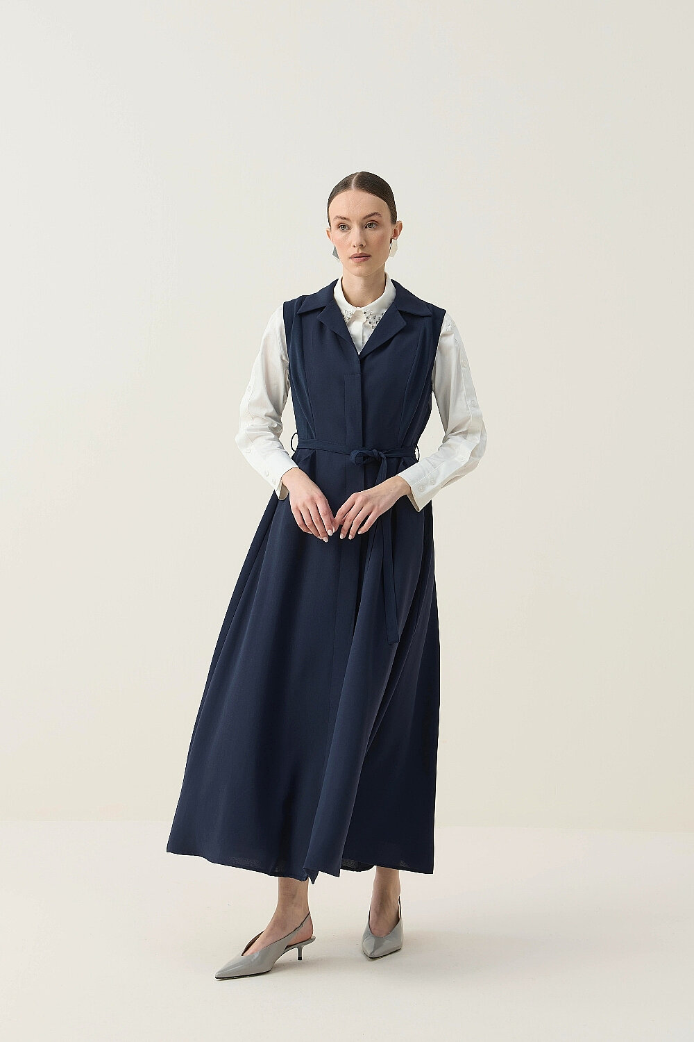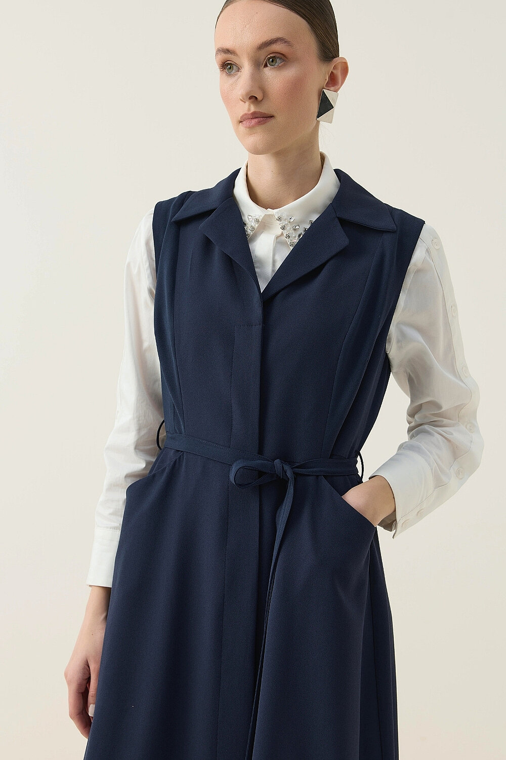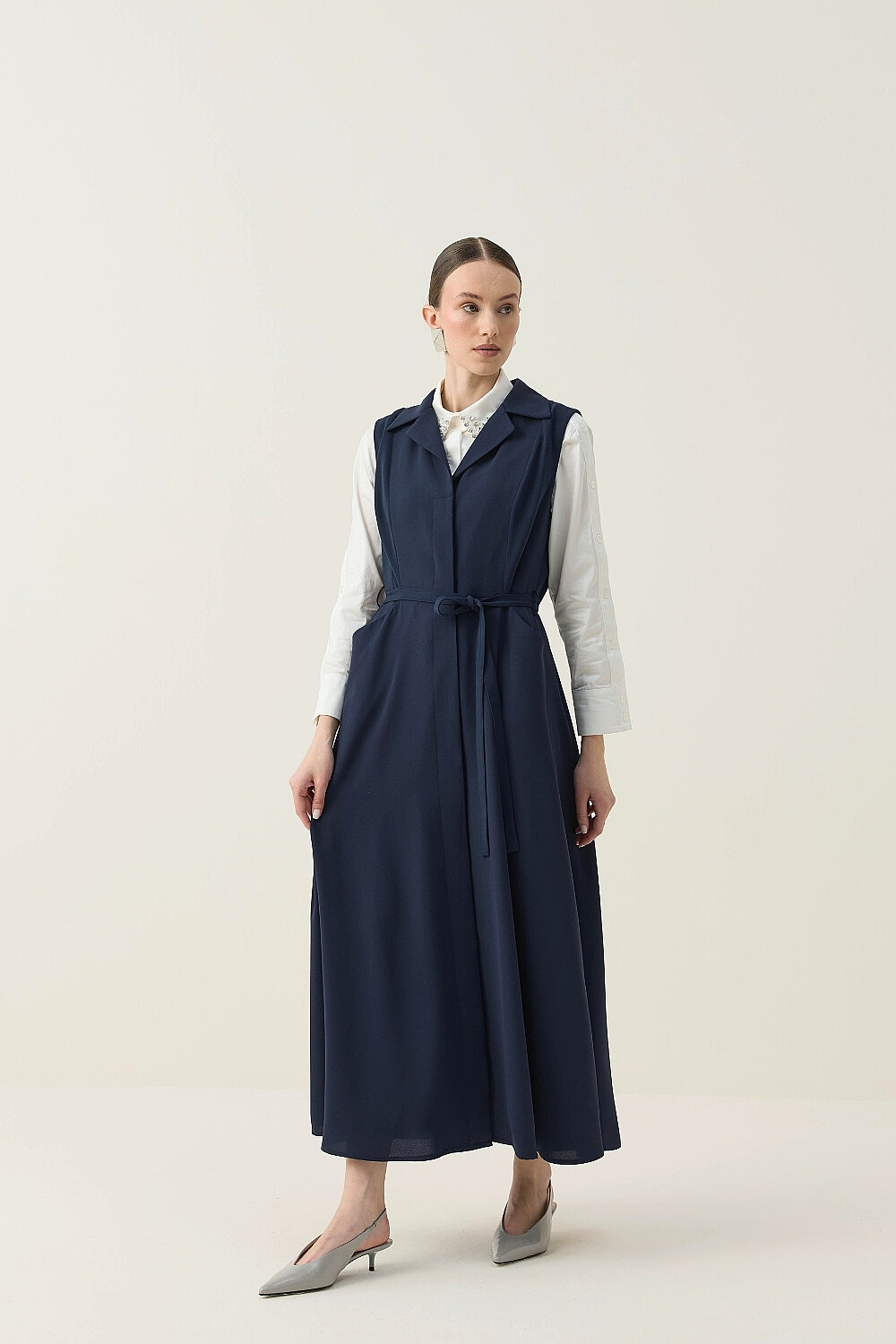 KREP KUMAŞ KENDİNDEN KEMERLİ ELBİSE