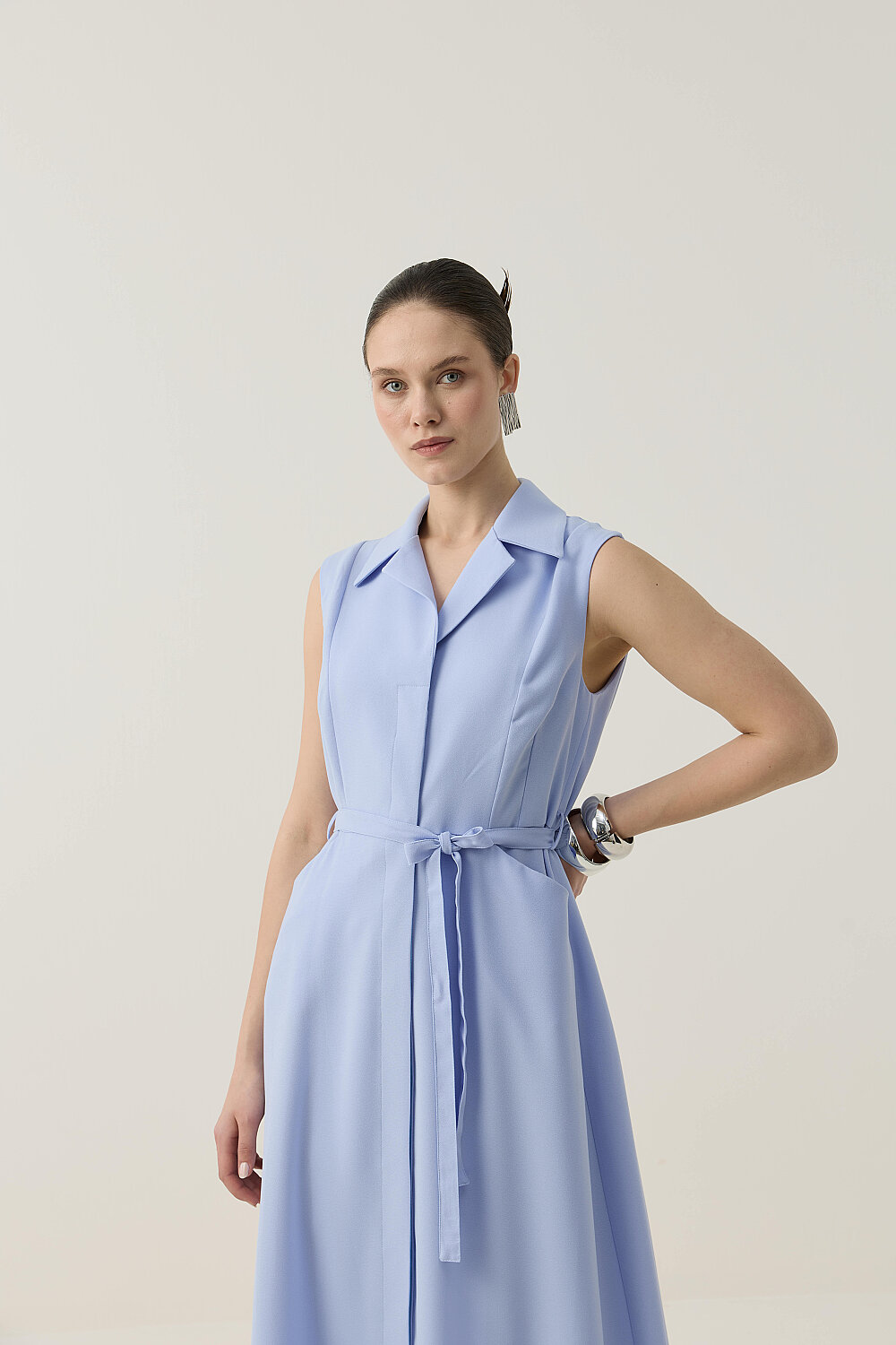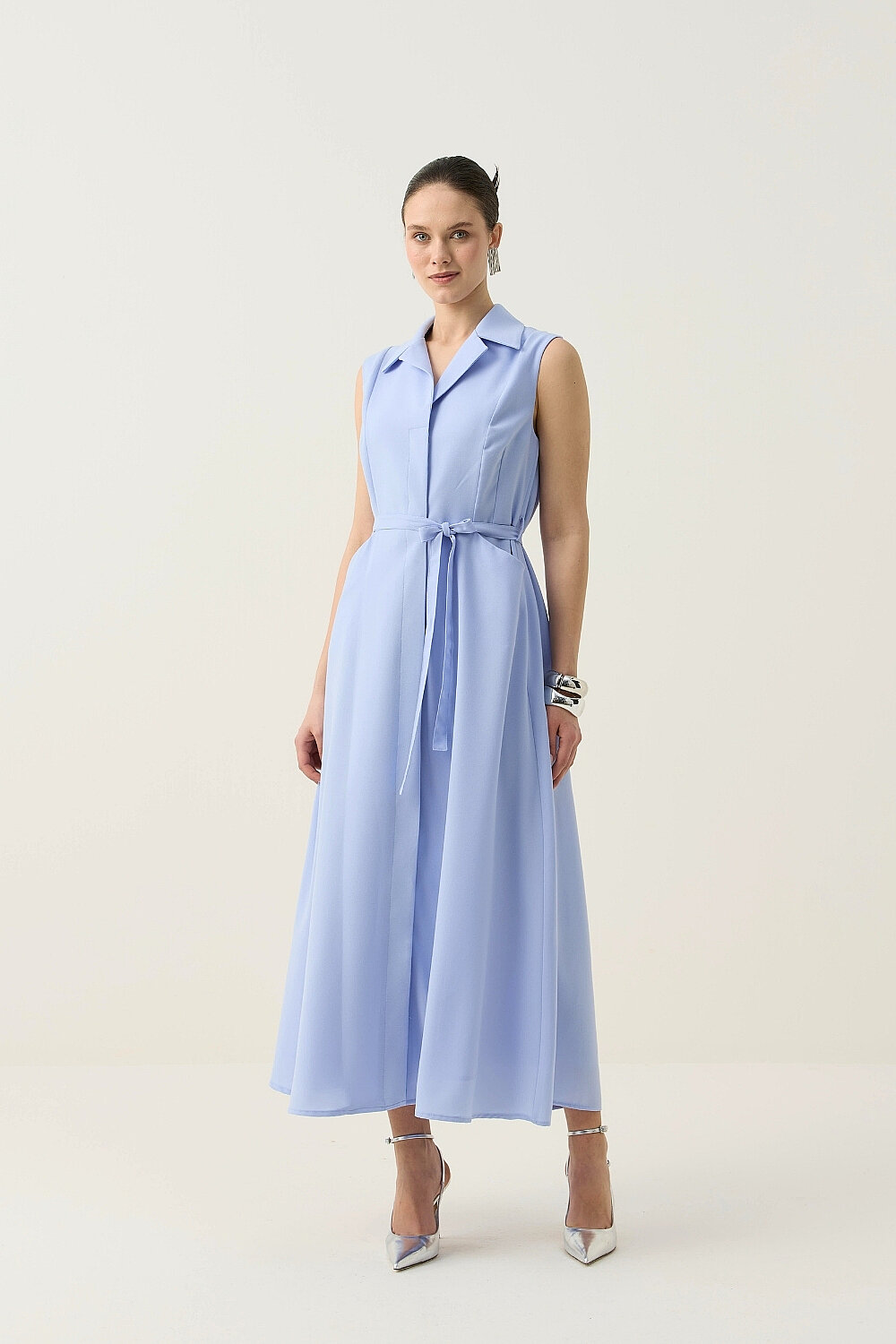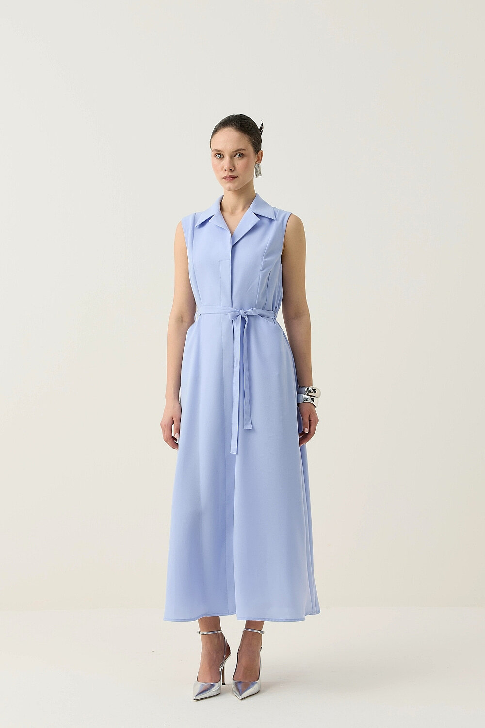 KREP KUMAŞ KENDİNDEN KEMERLİ ELBİSE