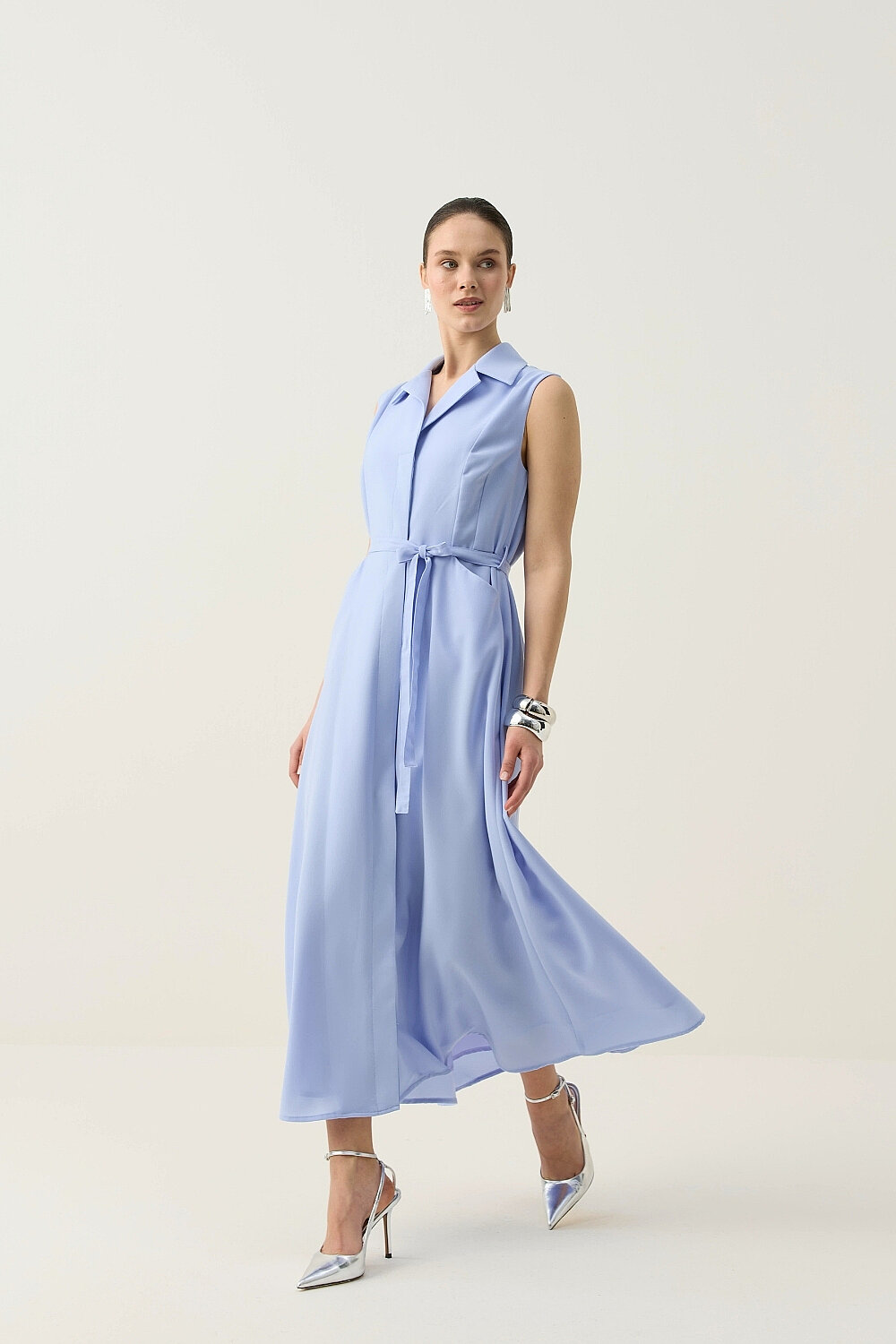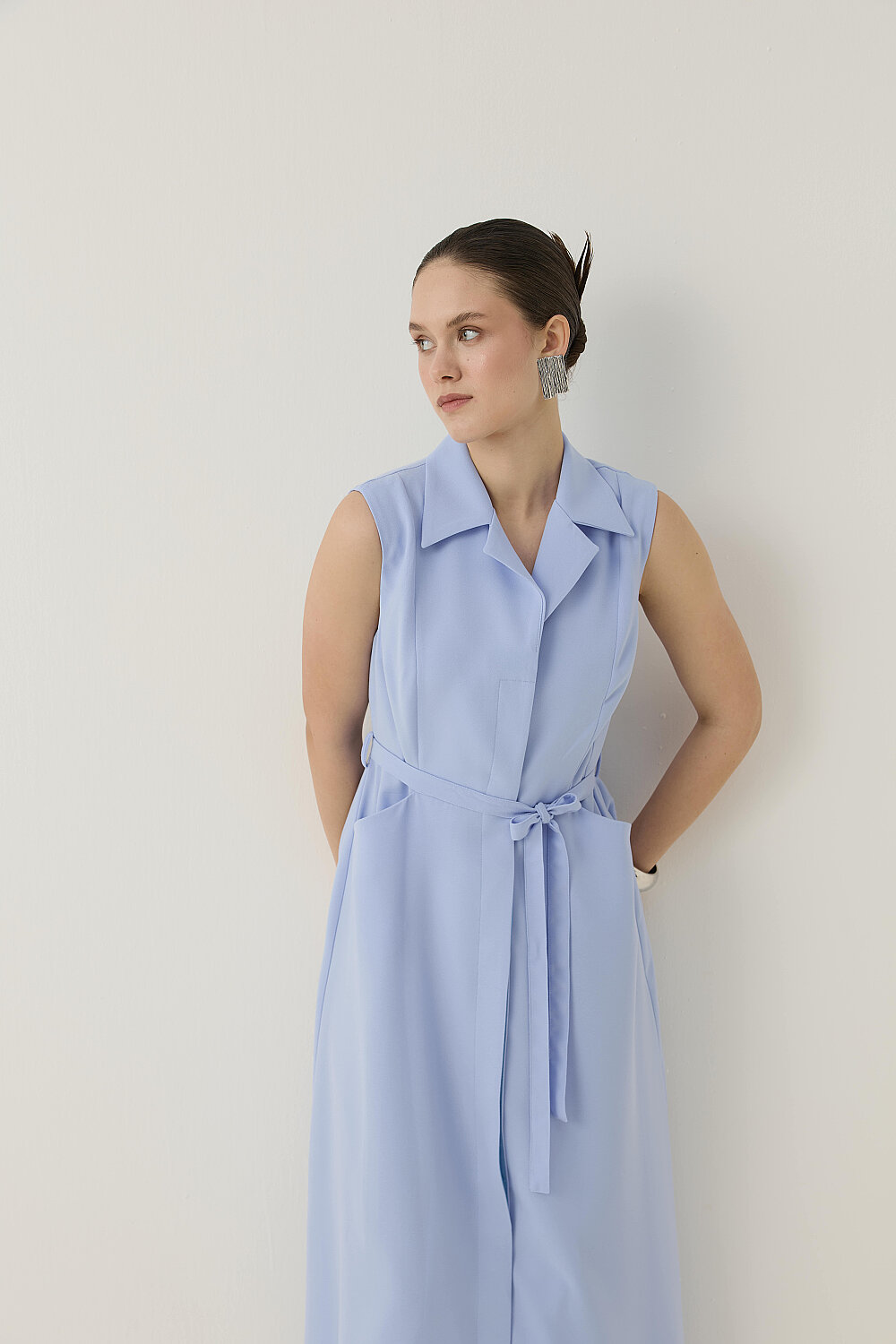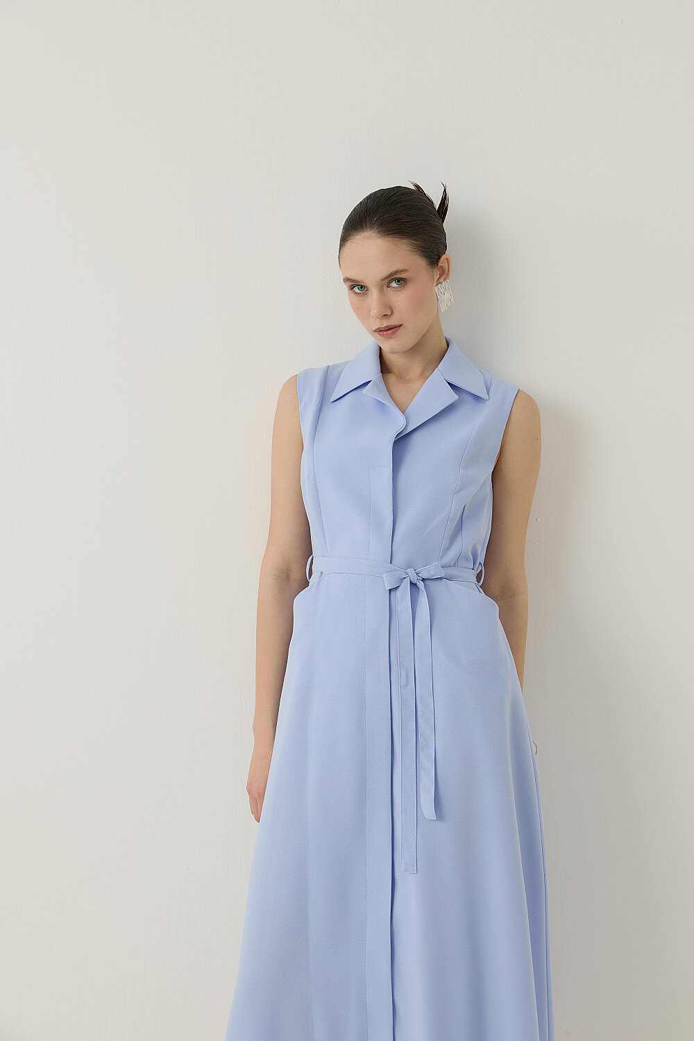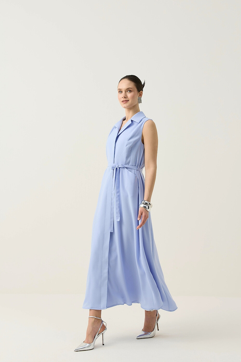 KREP KUMAŞ KENDİNDEN KEMERLİ ELBİSE