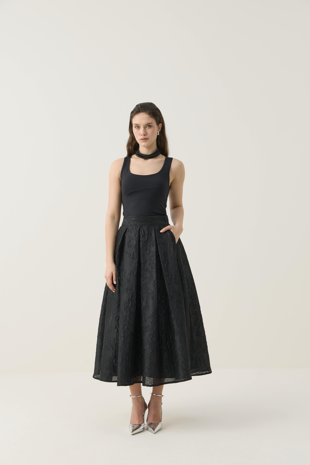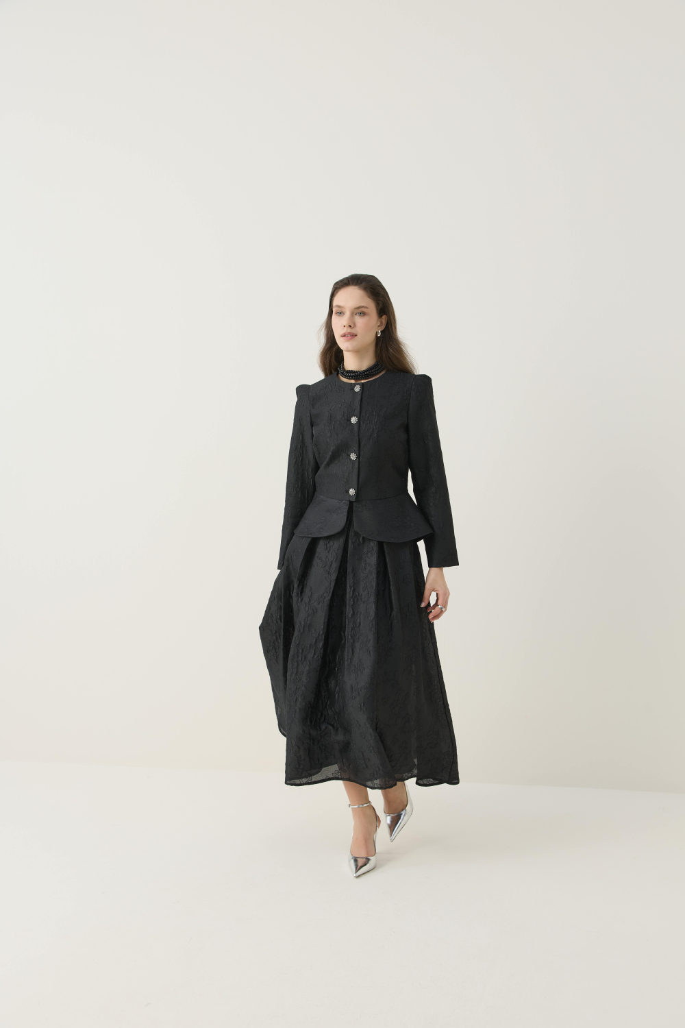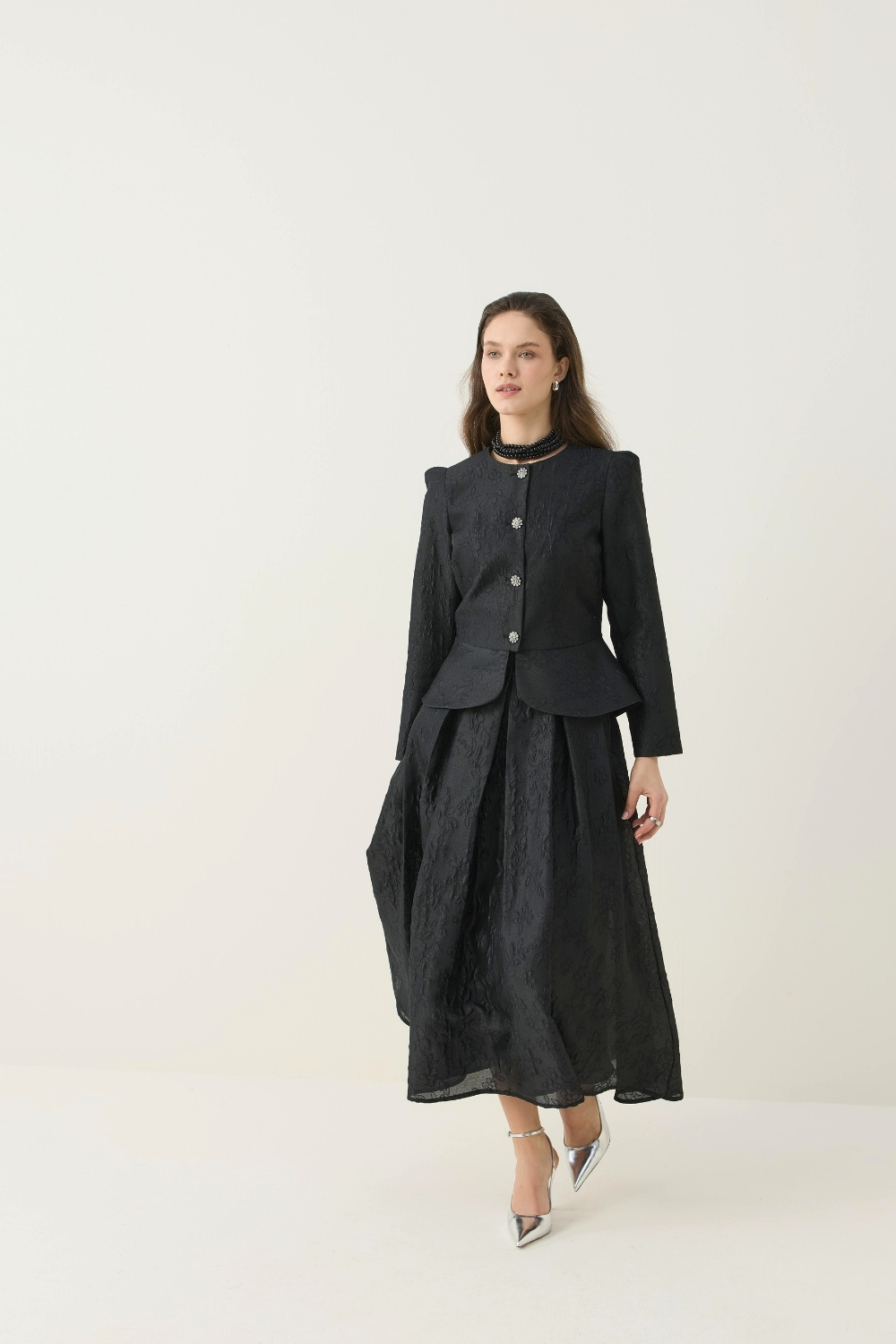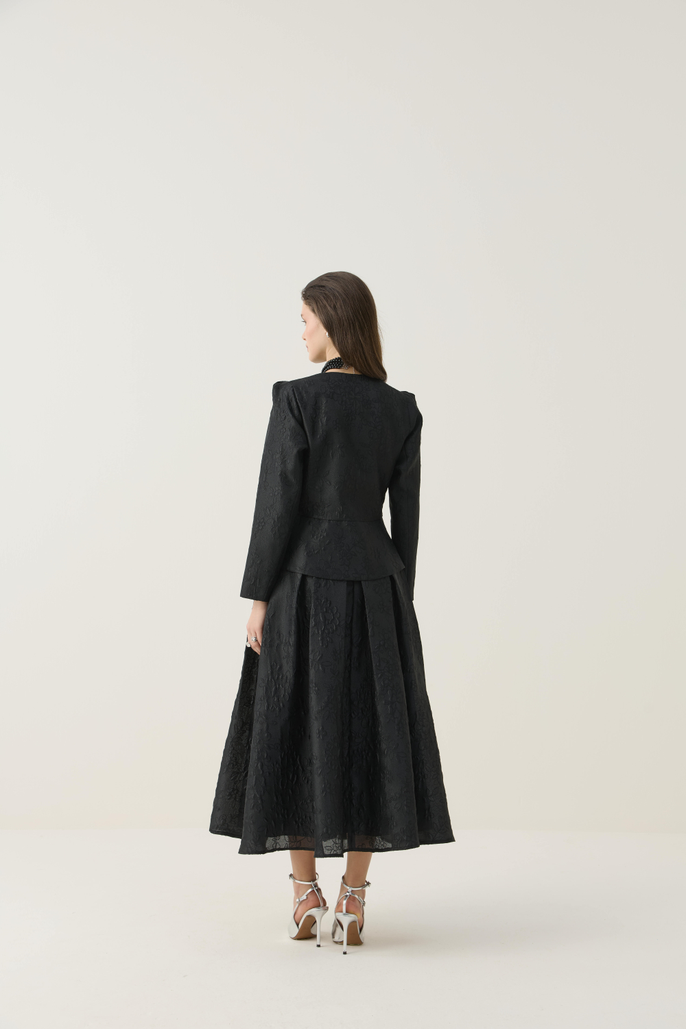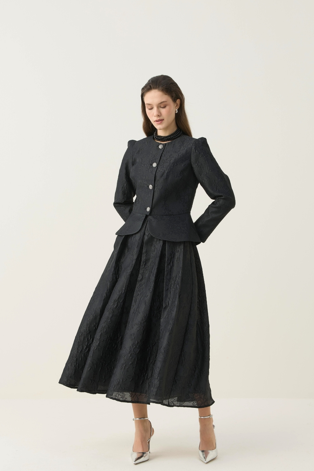 KRİSTAL DÜĞME DETAYLI JAKAR CEKET ETEK TAKIM SİYAH