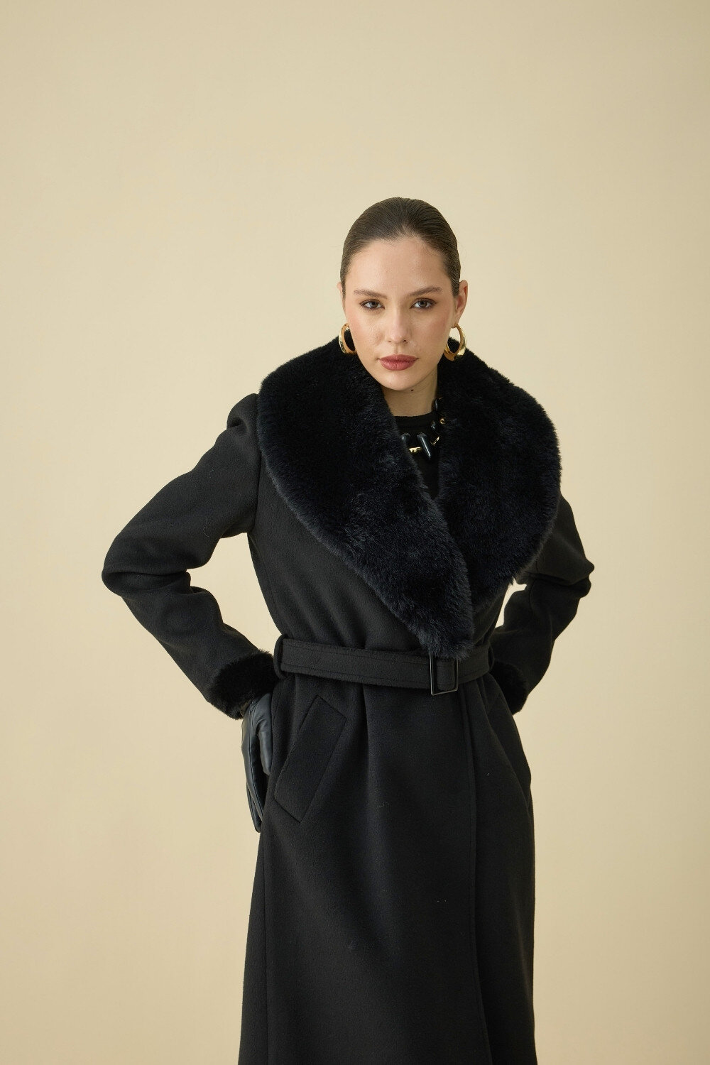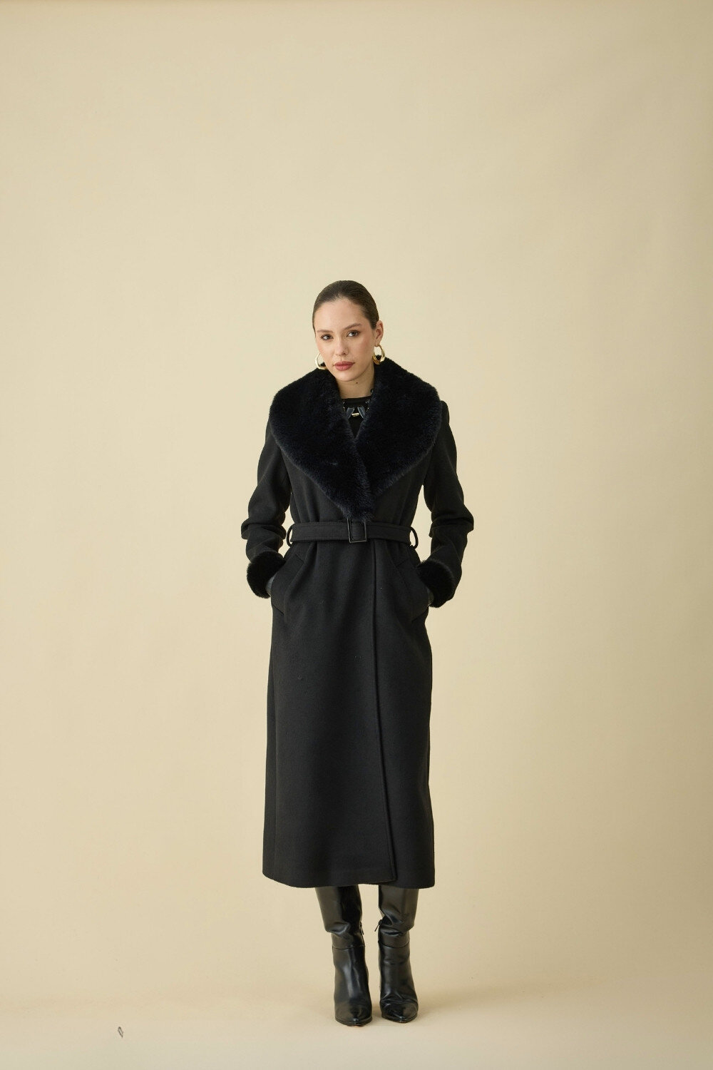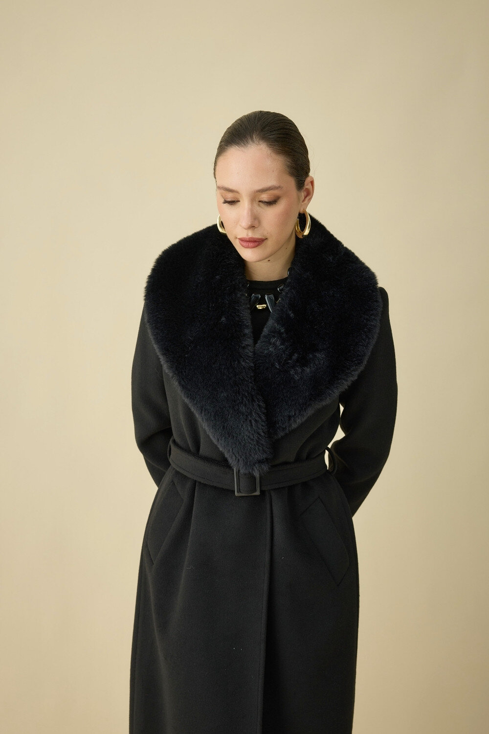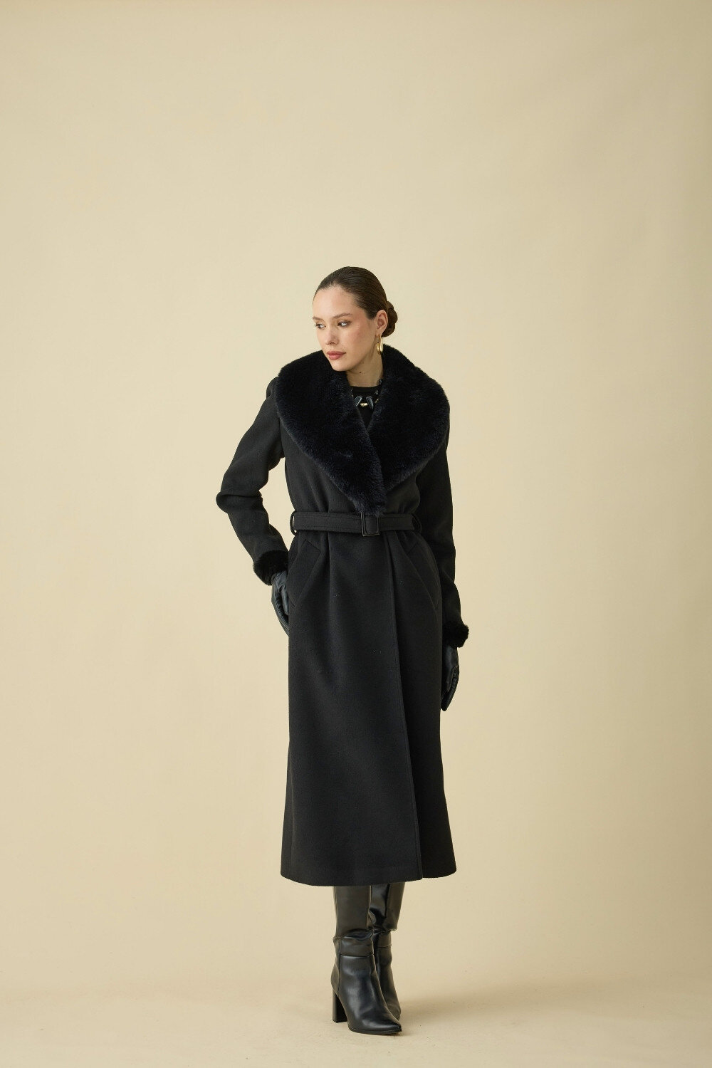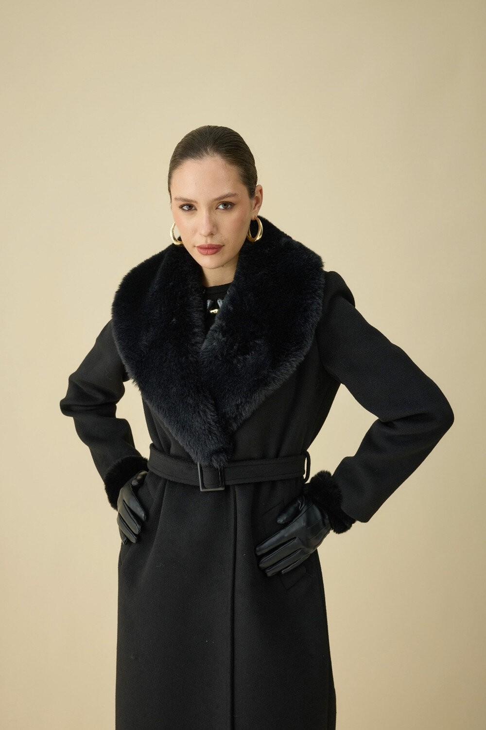 ÖZEL TASARIM SEYYAR KÜRK YAKALI KABAN