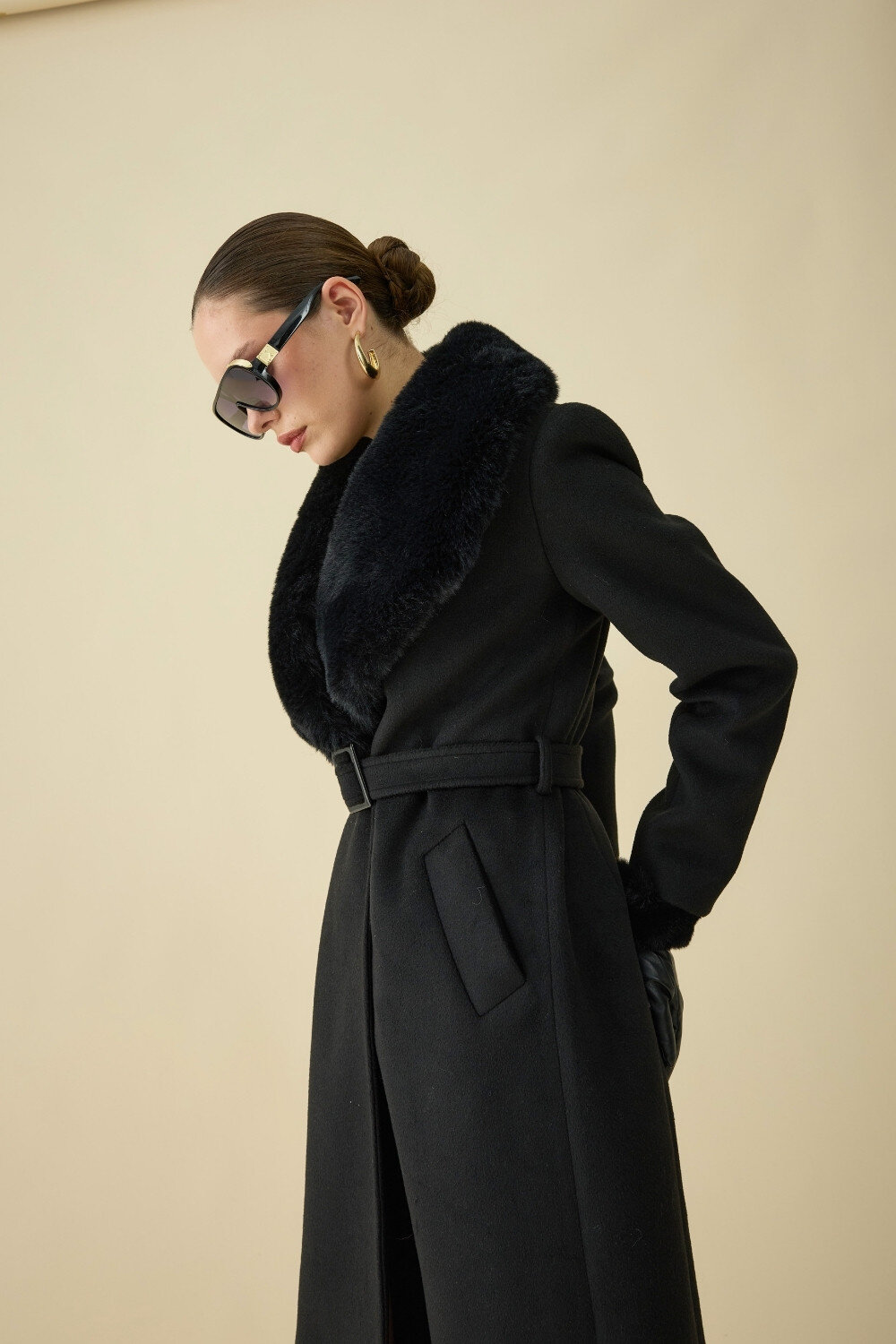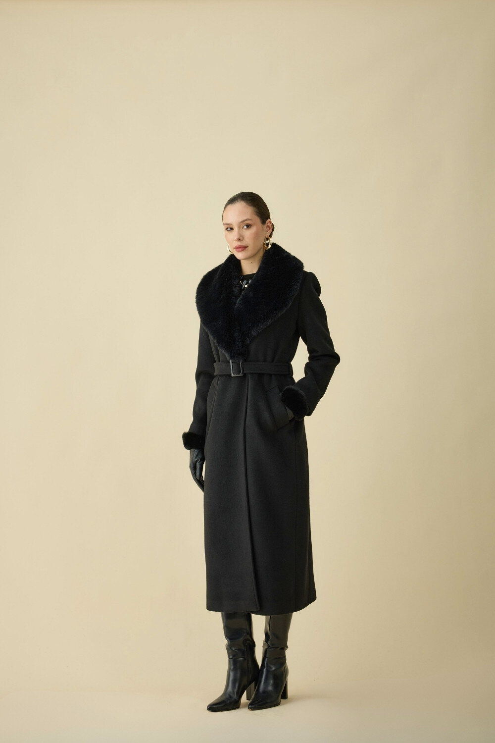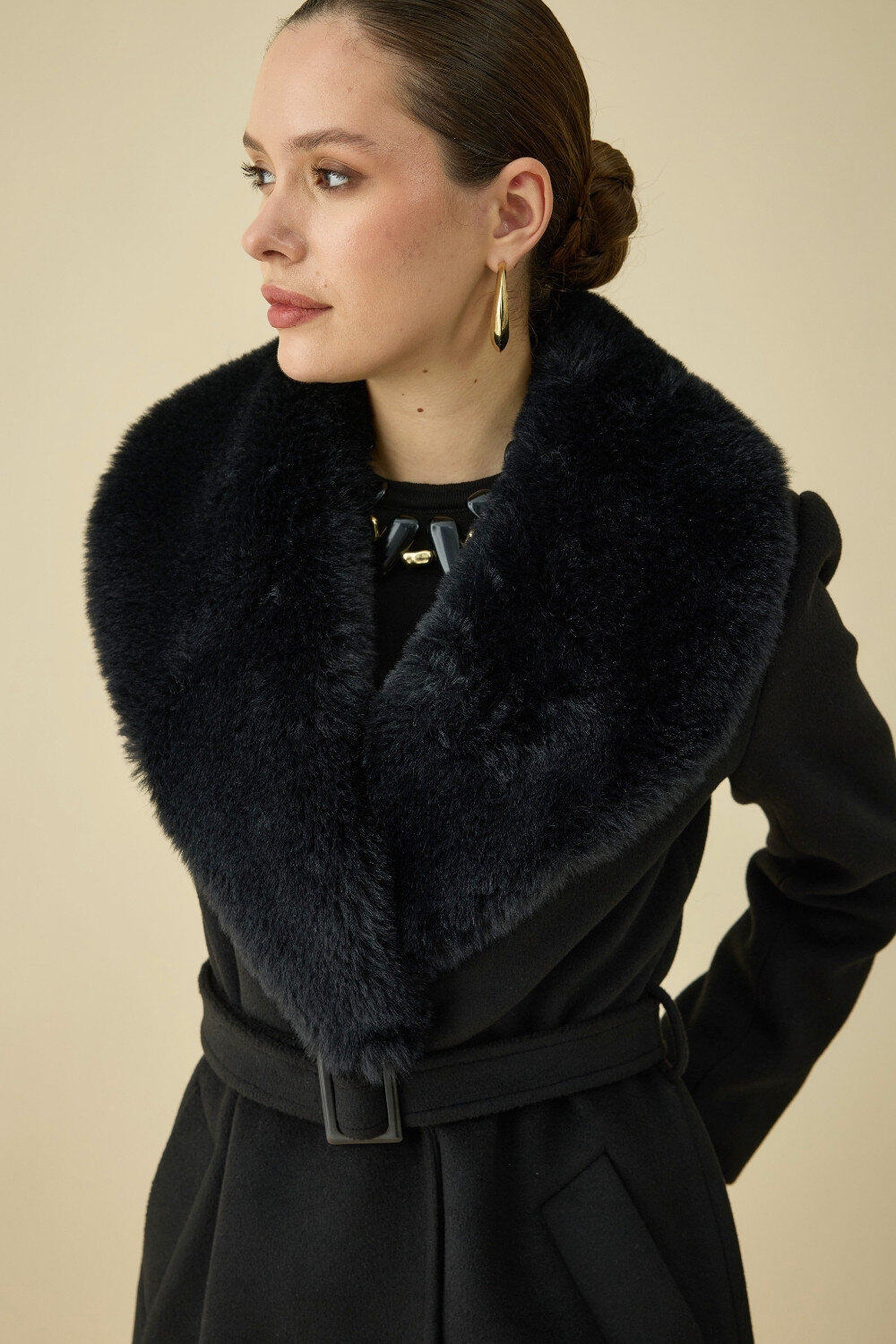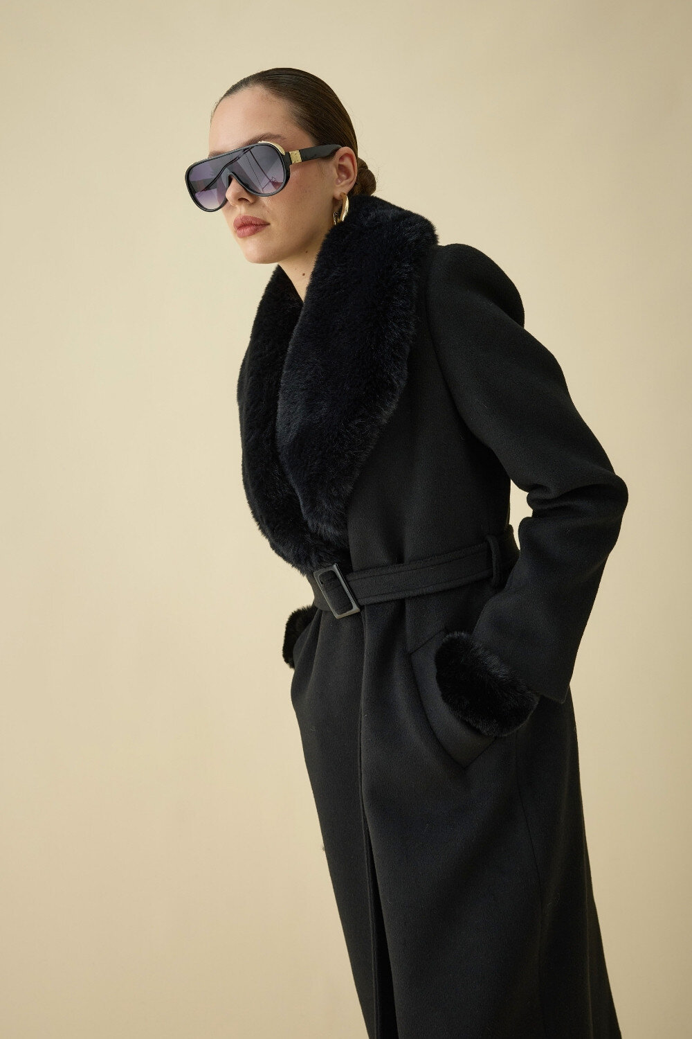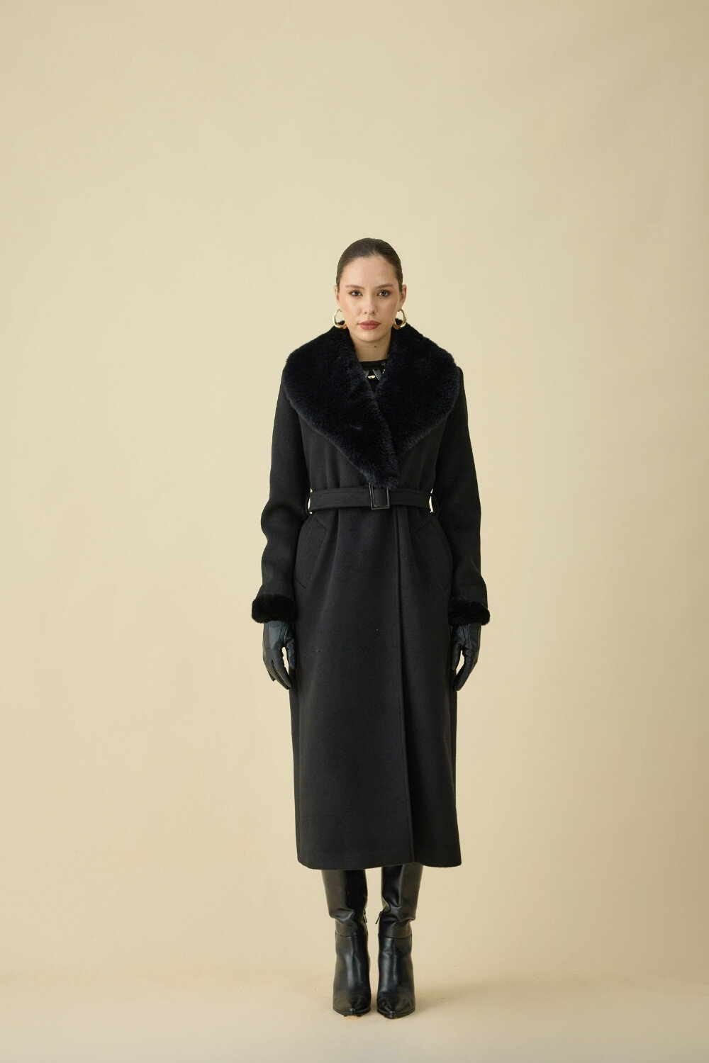 ÖZEL TASARIM SEYYAR KÜRK YAKALI KABAN