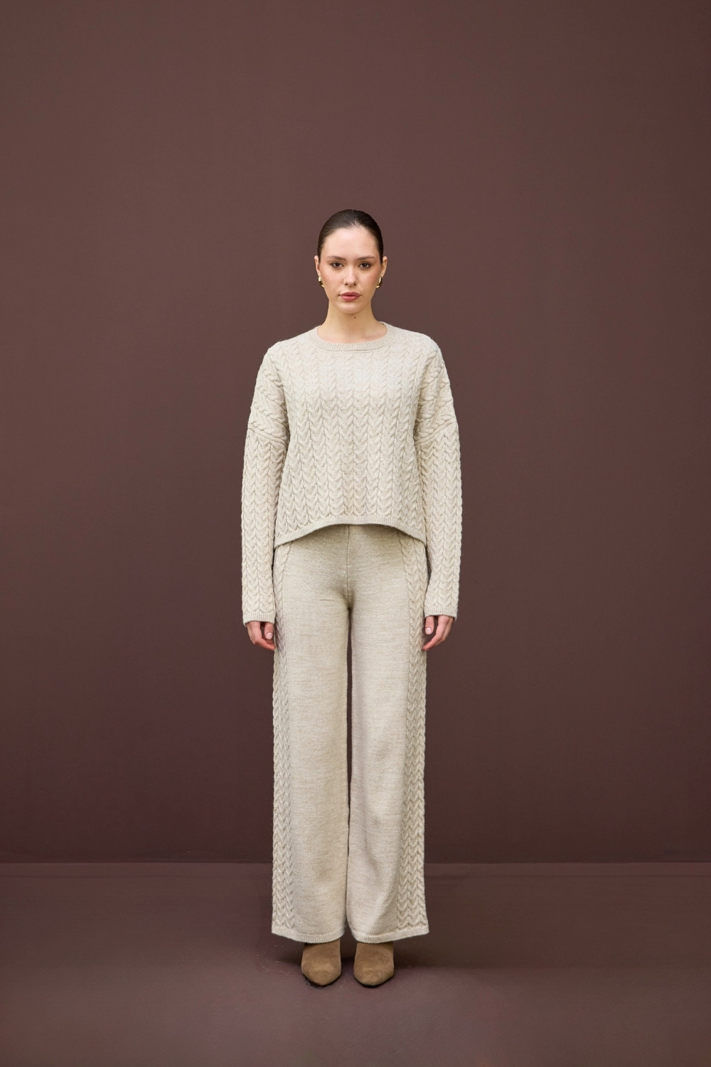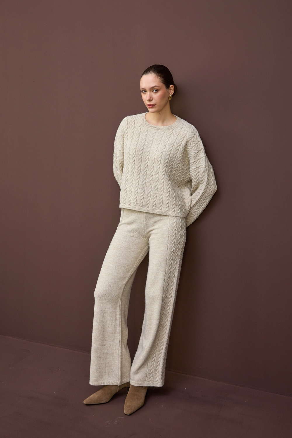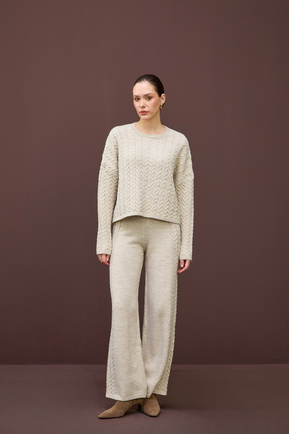 SAÇ ÖRGÜ DETAYLI TRİKO İKİLİ TAKIM