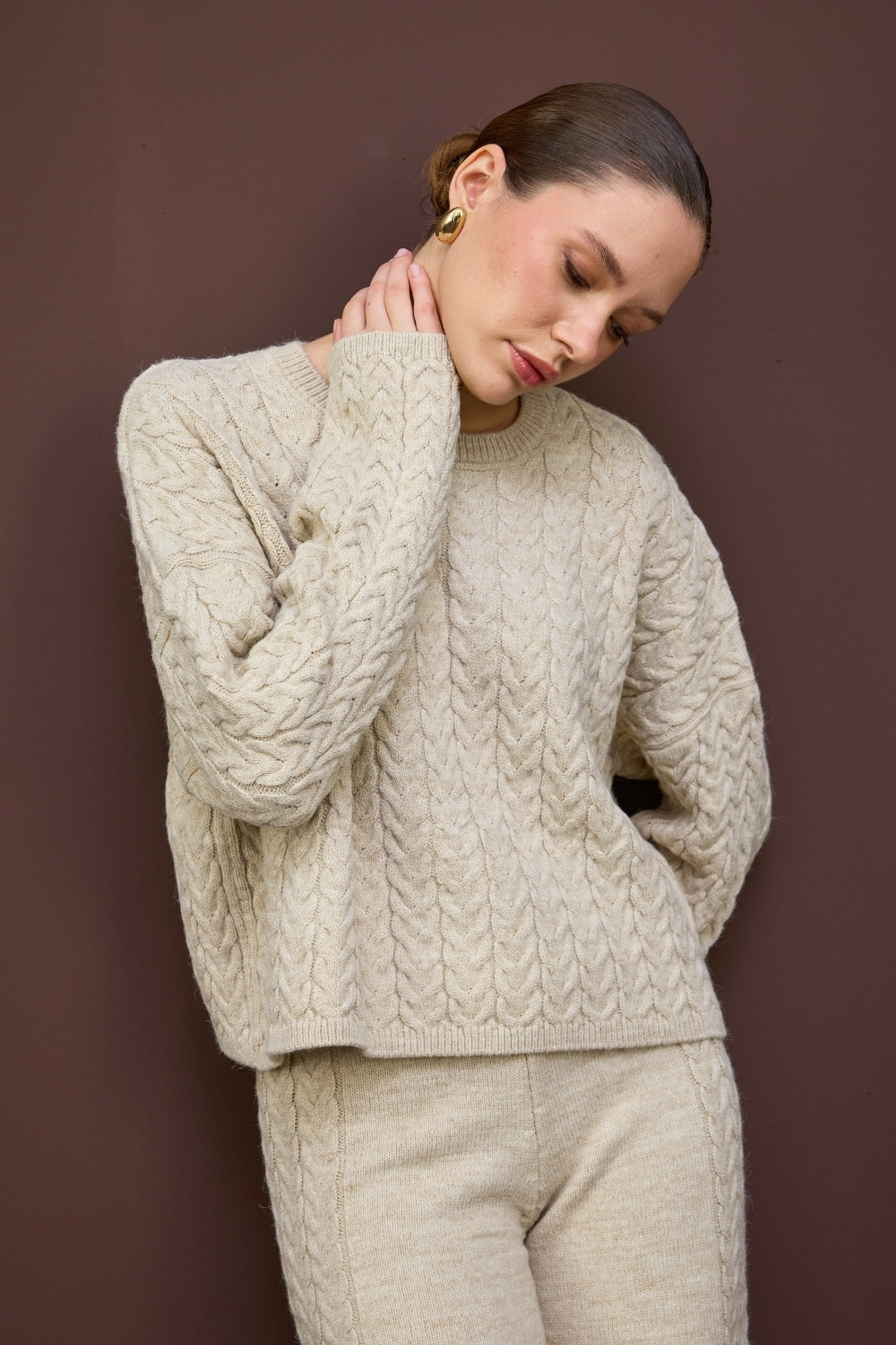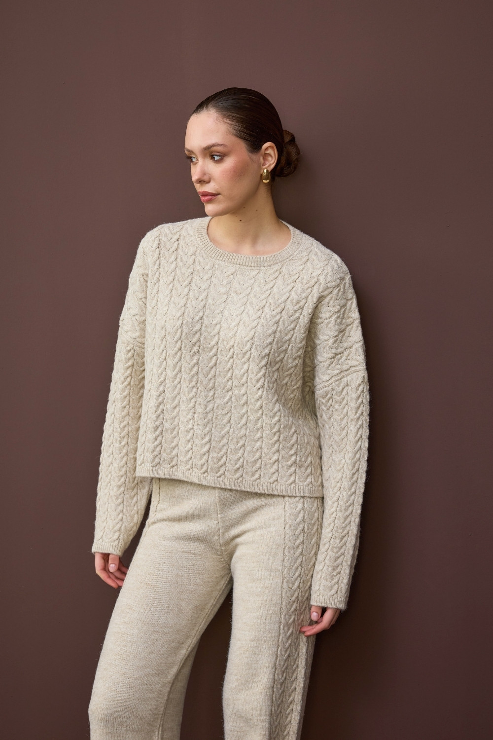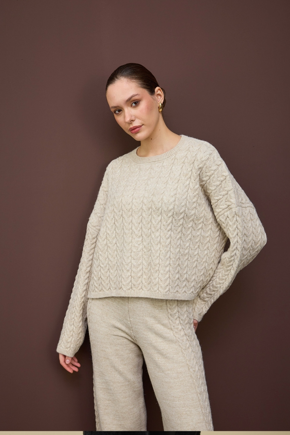 SAÇ ÖRGÜ DETAYLI TRİKO İKİLİ TAKIM