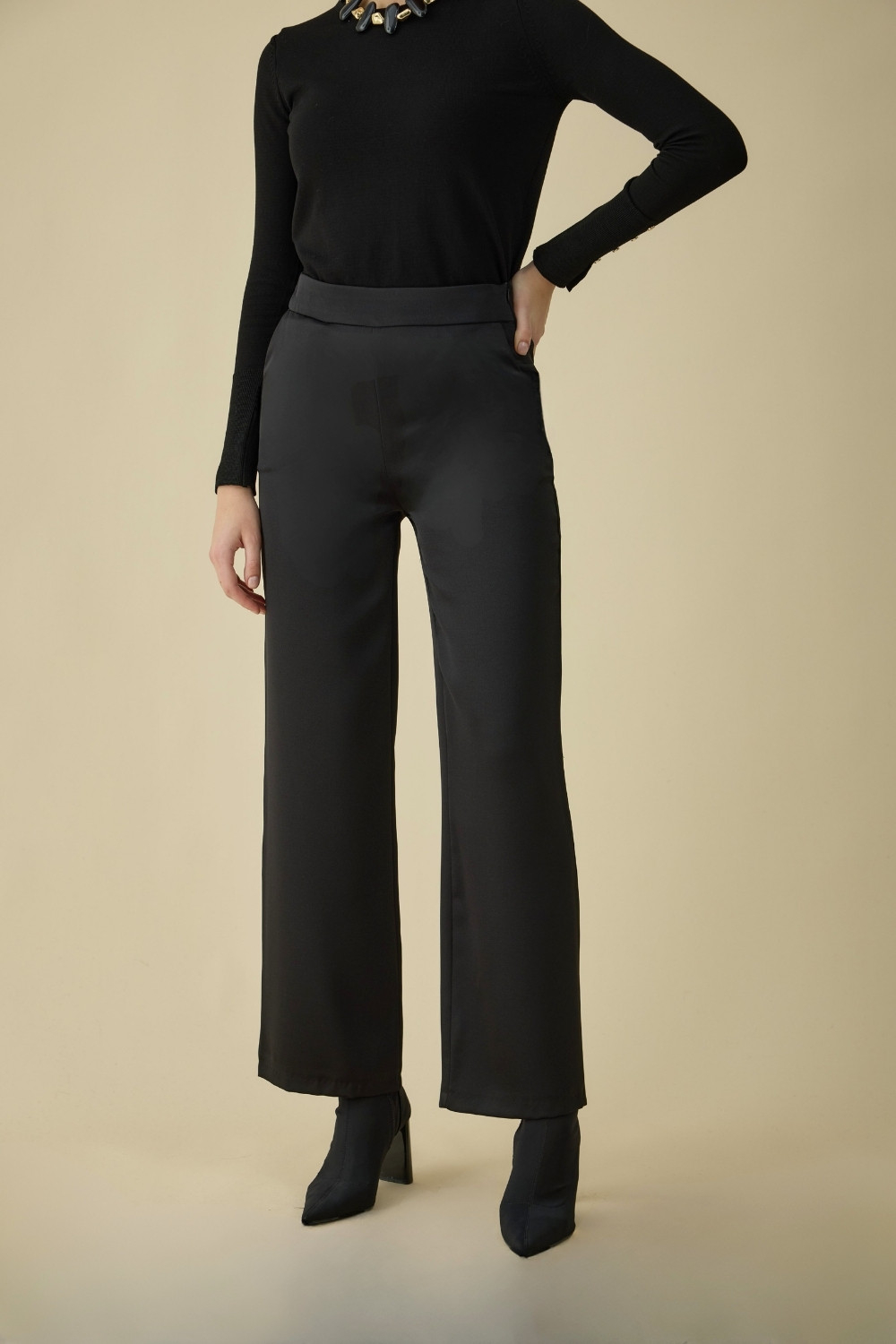 BELİ FERMUARLI SATEN BOL PAÇA PANTOLON