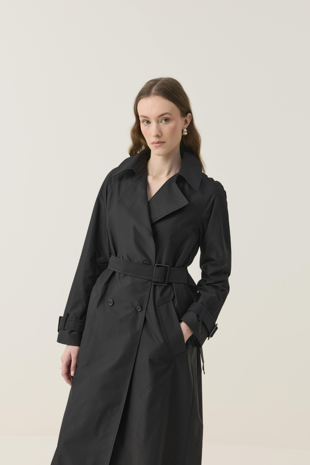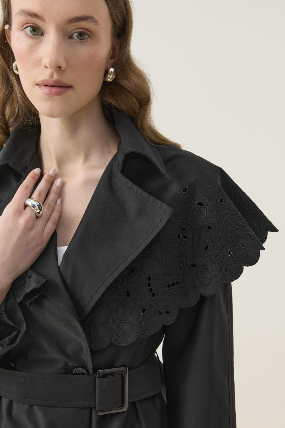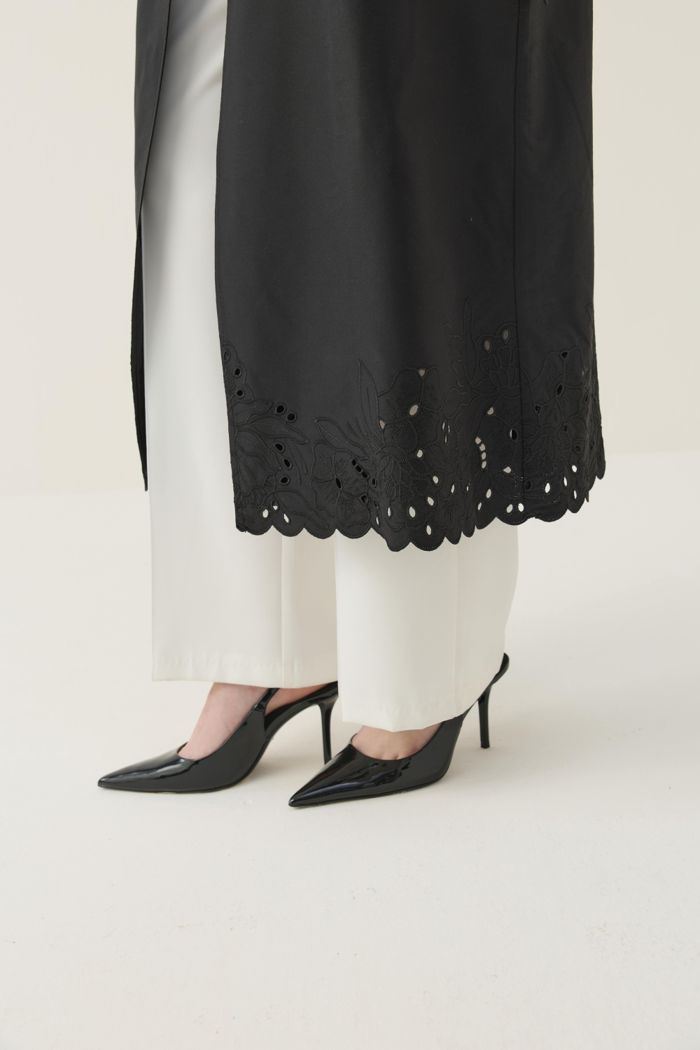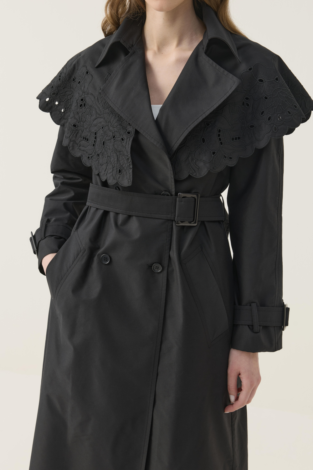 SEYYAR RÜZGARLIK DETAYLI NAKIŞLI TRENÇKOT SİYAH