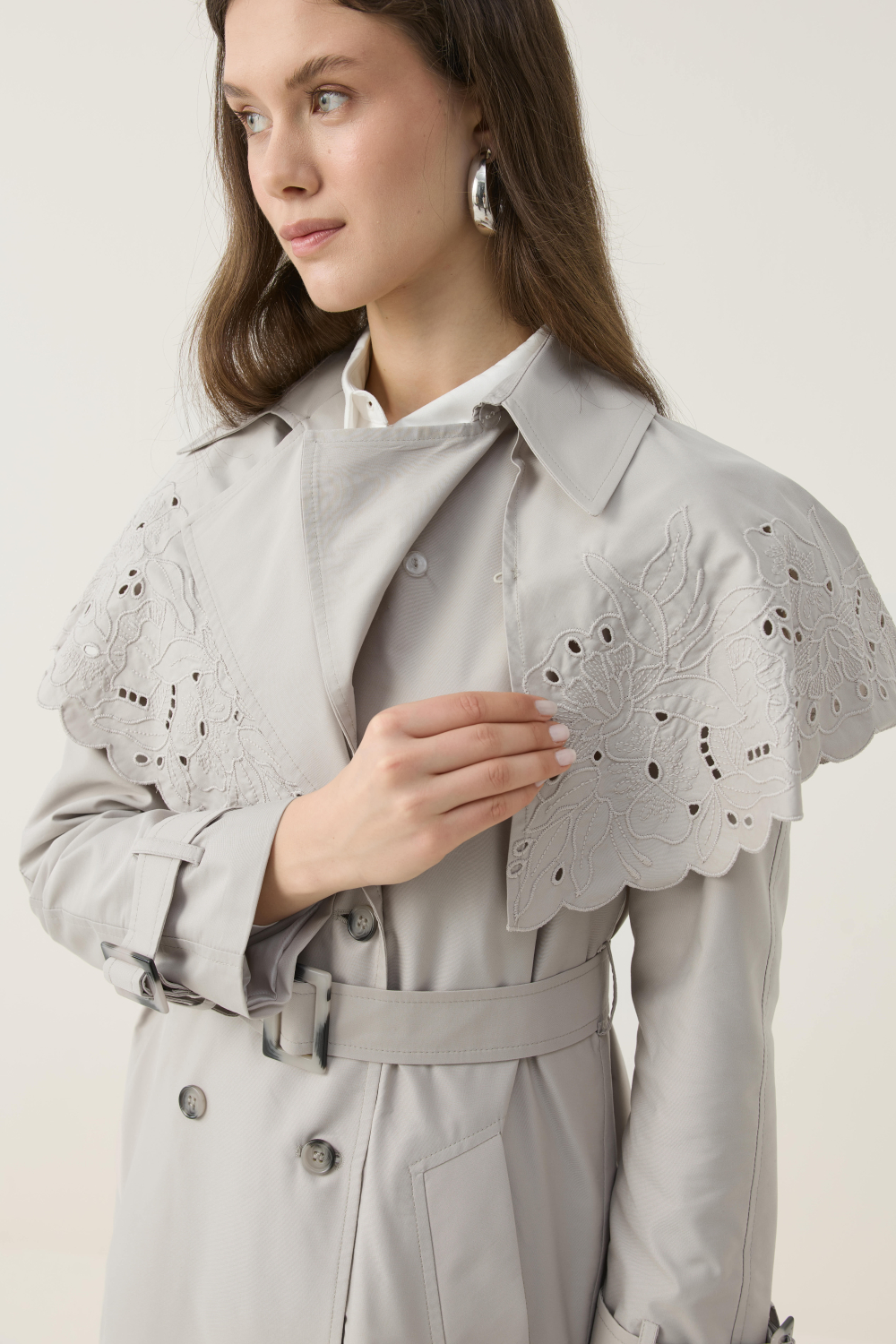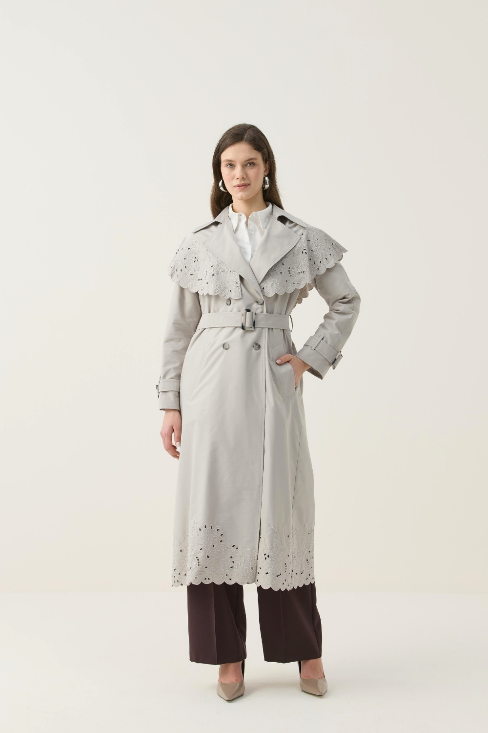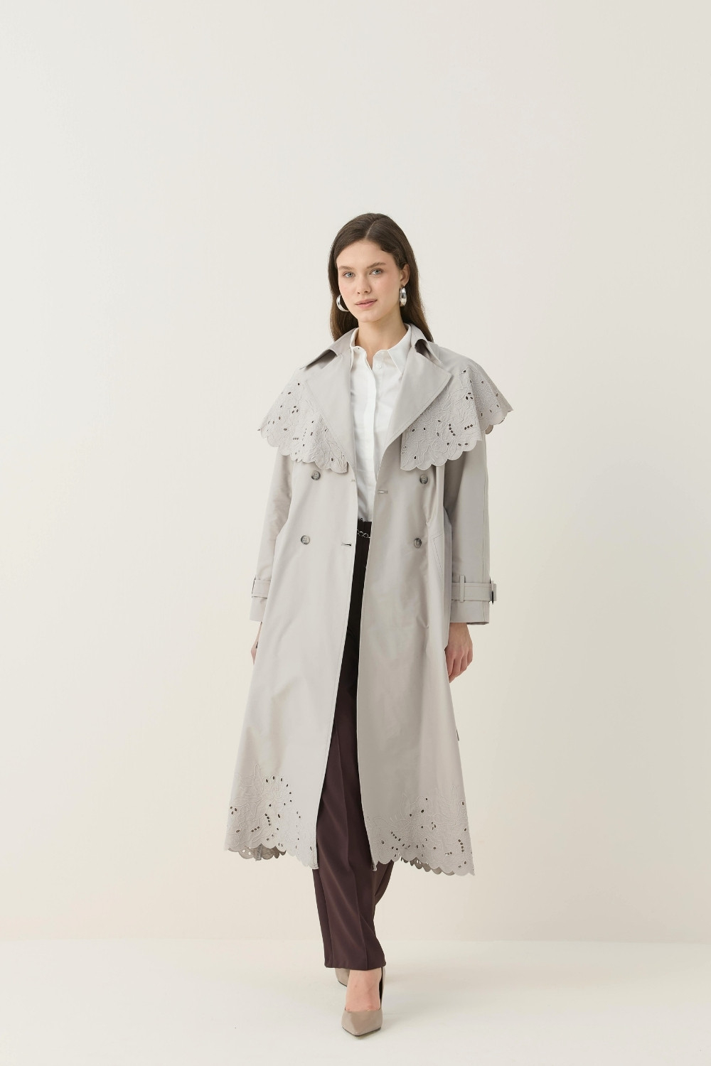 Gelince Haber VerÖZEL EL ÇİZİMİ NAKIŞLI TRENÇKOT