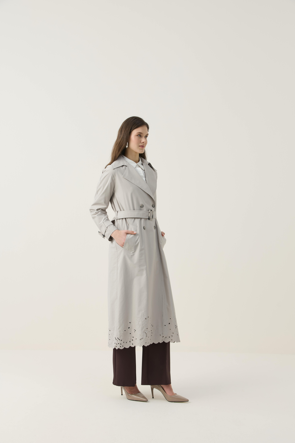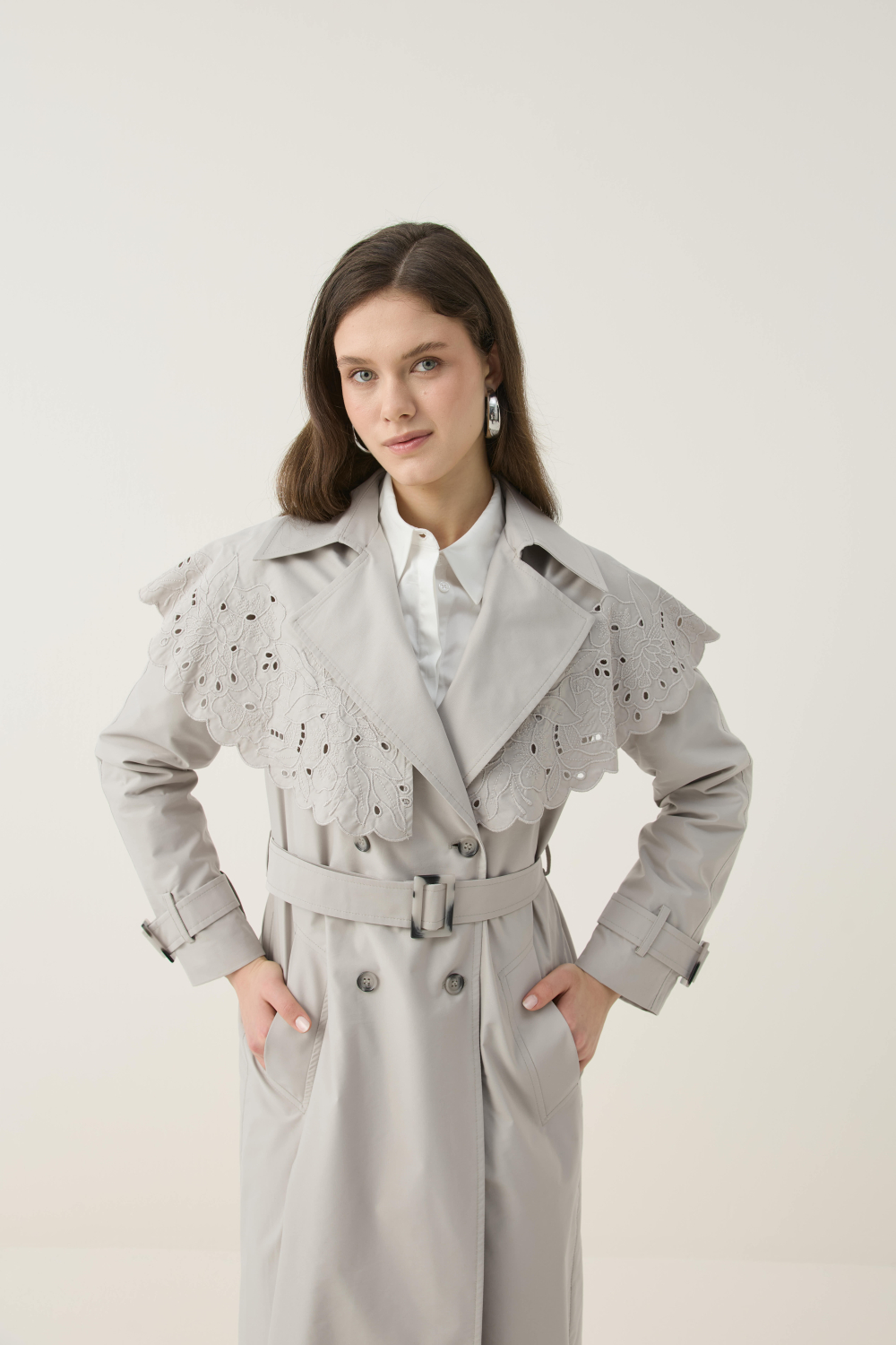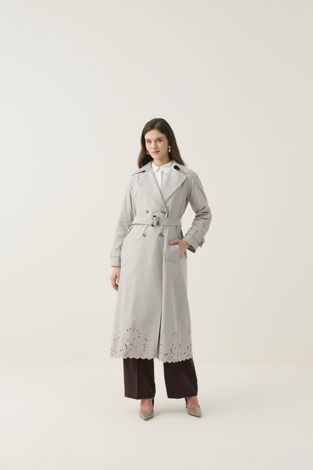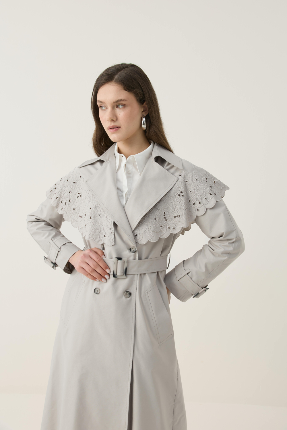 Gelince Haber VerÖZEL EL ÇİZİMİ NAKIŞLI TRENÇKOT