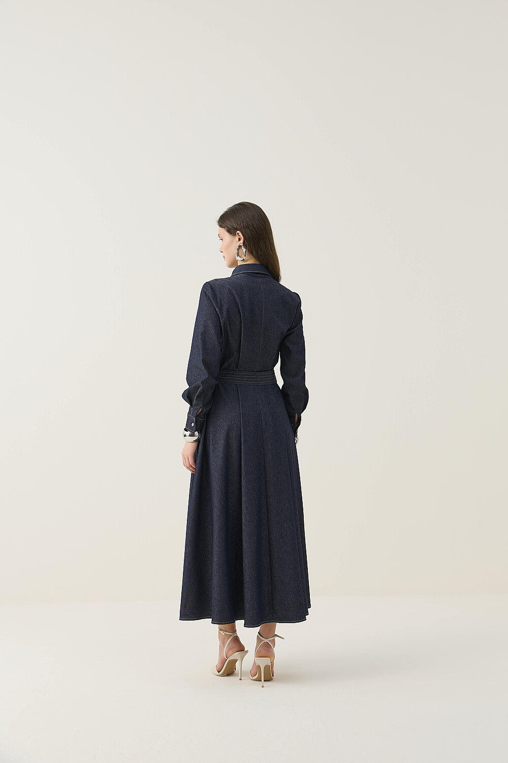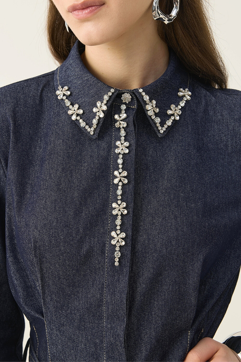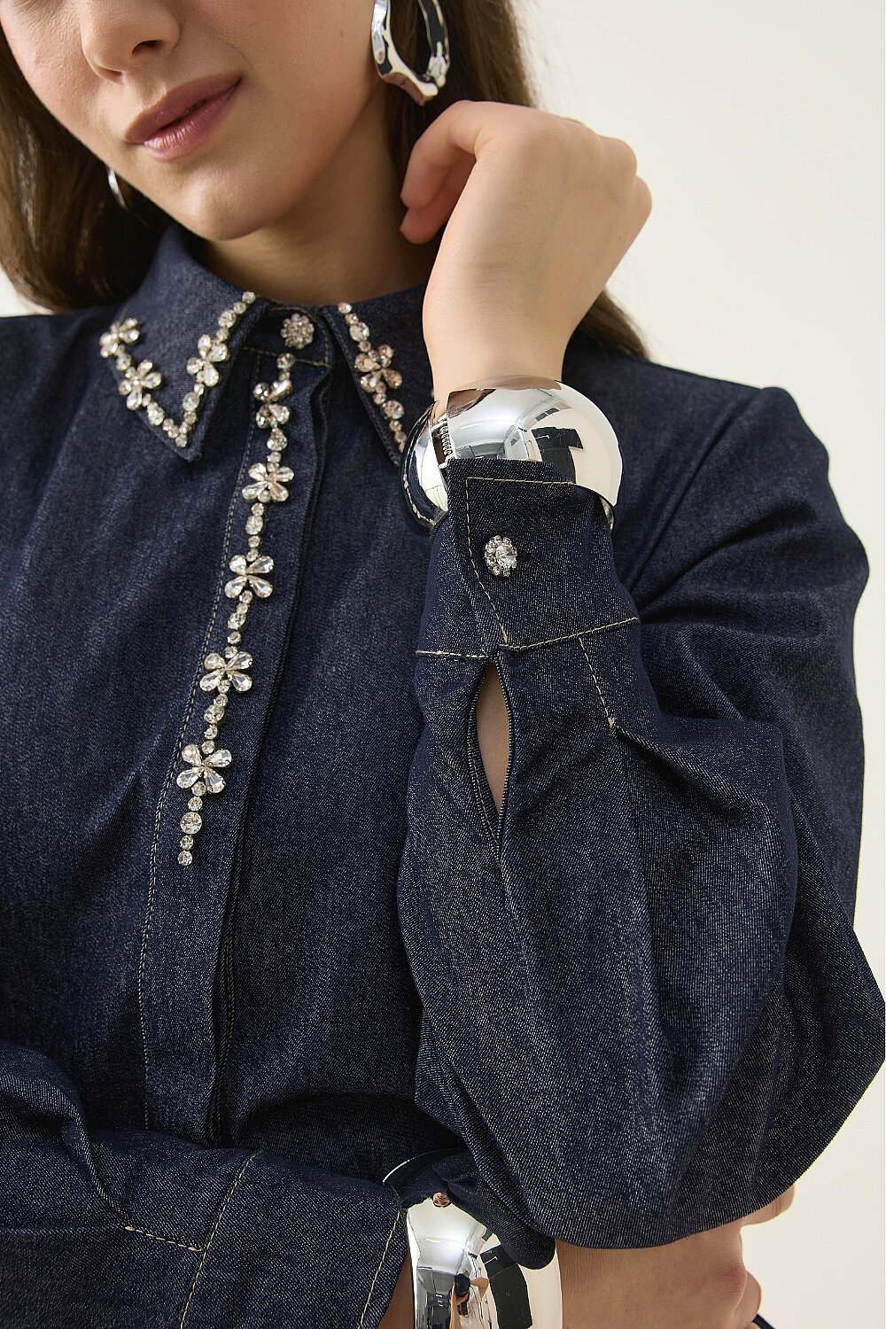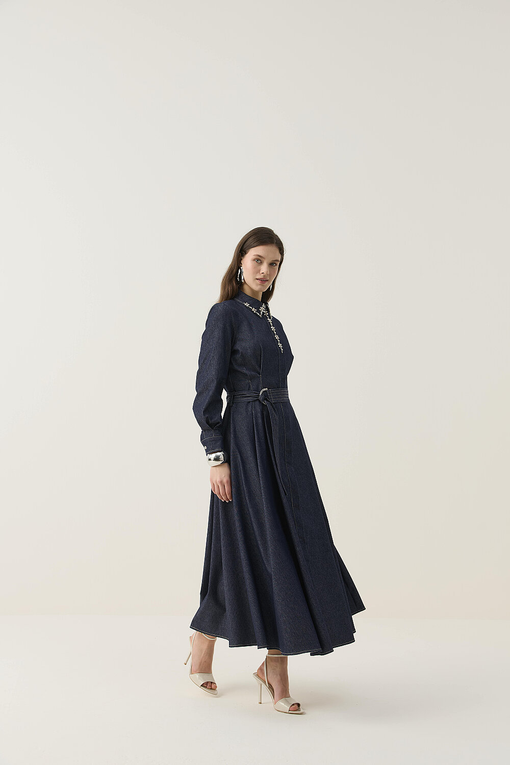EL İŞLEMESİ DETAYLI TAŞLI DENİM ELBİSE